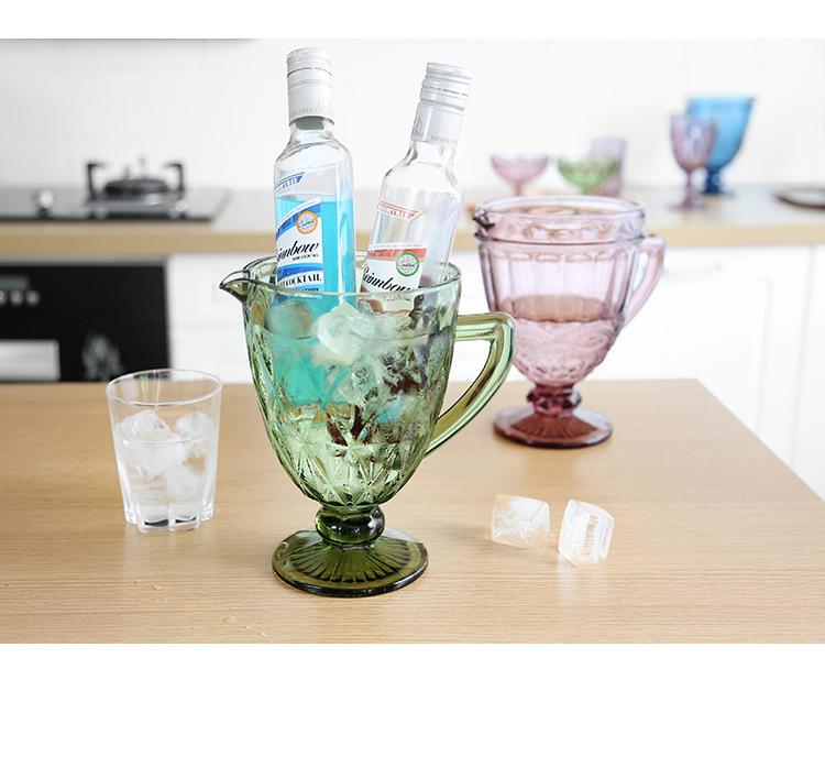 Cubeta de Hielo en Relieve Estilo Europeo al por Mayor del Fabricante, Cubeta de Cerveza de Vidrio Coloreado de Gran Capacidad, Cubeta Gruesa para Hielo para Bar, Cubos de Hielo Grandes