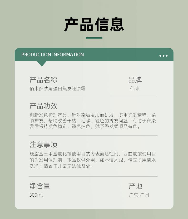 Bai Bundle Polypeptide Keratin Scorched Hair Reducing Cream Green Bottle 300ml