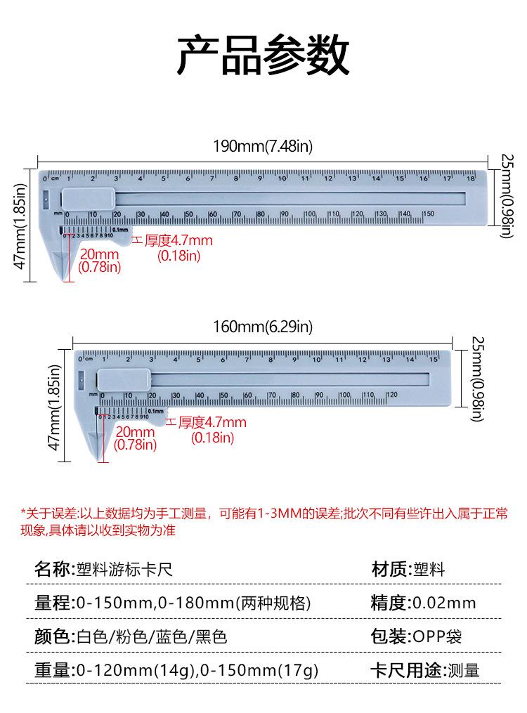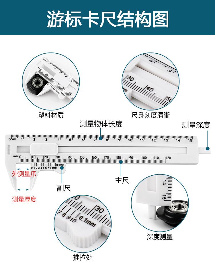 Calibrador Vernier de plástico de doble escala de 15/18 cm, calibrador de medición para uso doméstico, mini herramienta de medición para estudiantes