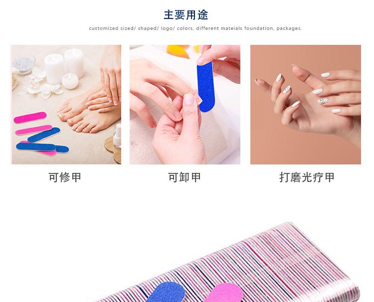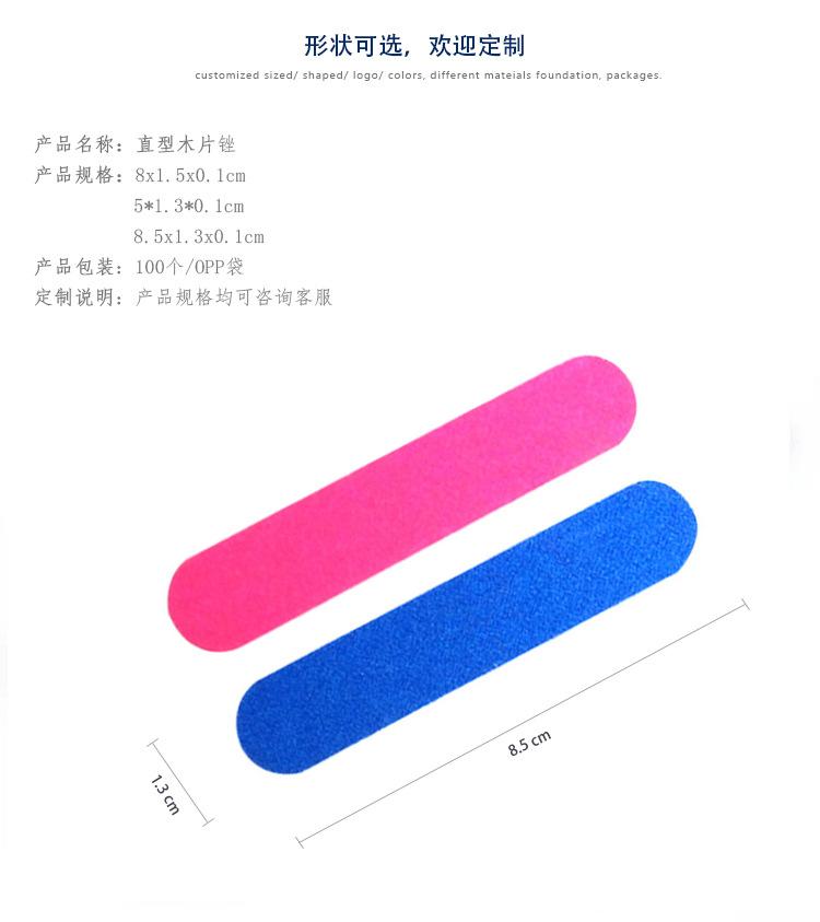 Suministros de fábrica de herramientas de manicura, cuidado de uñas, lima de uñas de madera desechable multicolor, lima de uñas con forma de astilla.
