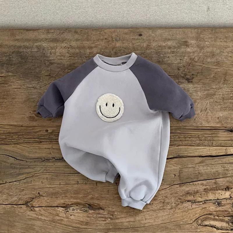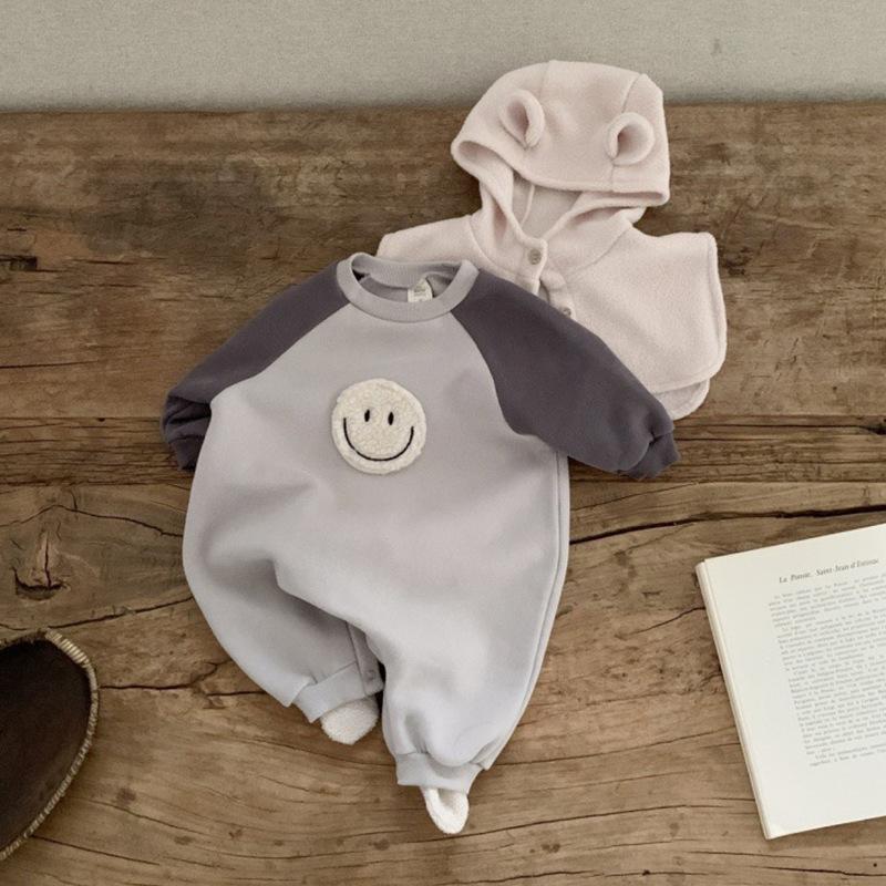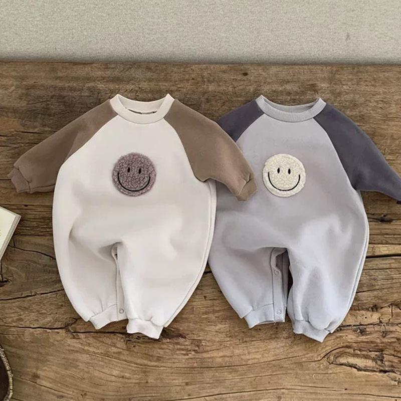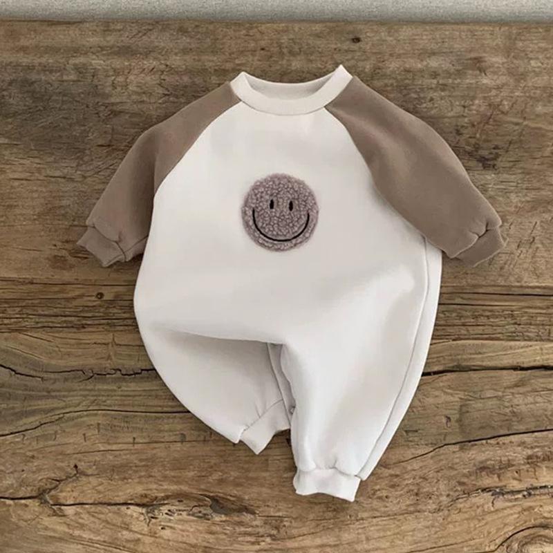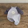 Mameluco para bebé a juego de colores Ropa gruesa para salir de bebé Ropa de otoño e invierno 2024 Ropa de estilo coreano para niños Sudadera con cara sonriente de bebé
