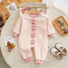 Ropa de bebé, mono de invierno con forro polar para niña, mono con abertura frontal y flores tridimensionales, mono para recién nacido