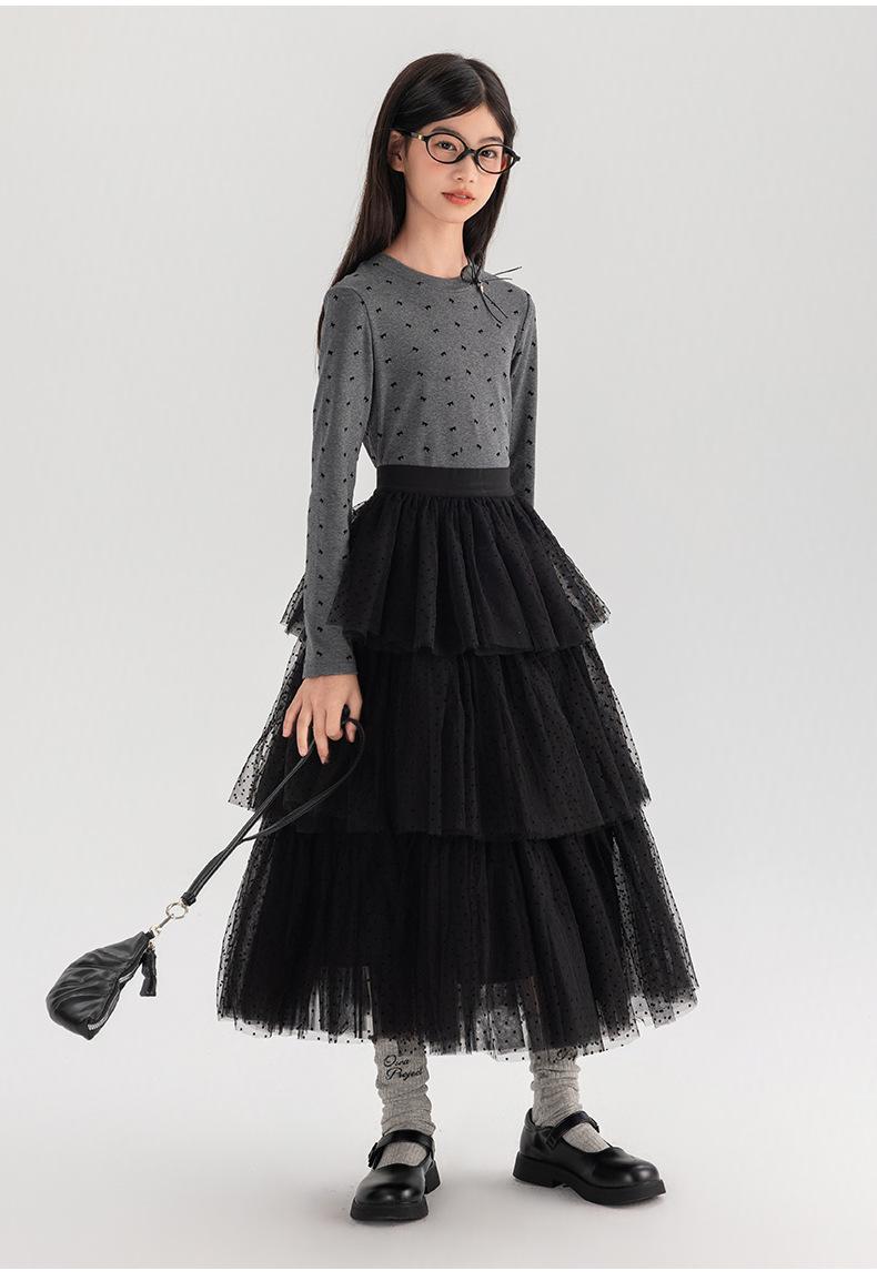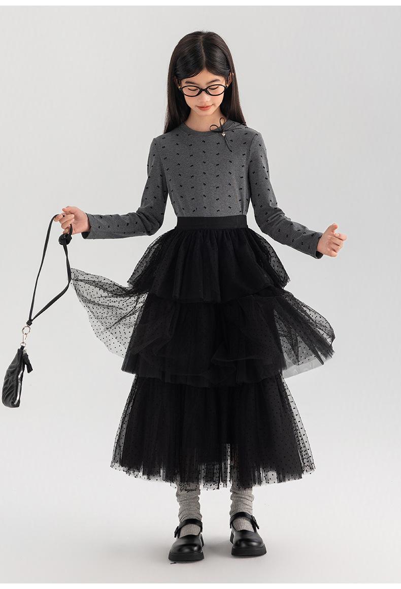 Falda de Niña Amoy Otoño Nuevo Sentido del Diseño Temperamento Pequeño Onda Niños Medianos y Grandes Uso Falda de Gasa de Pastel