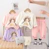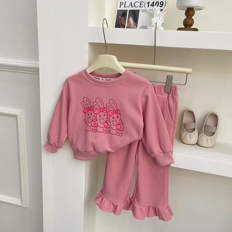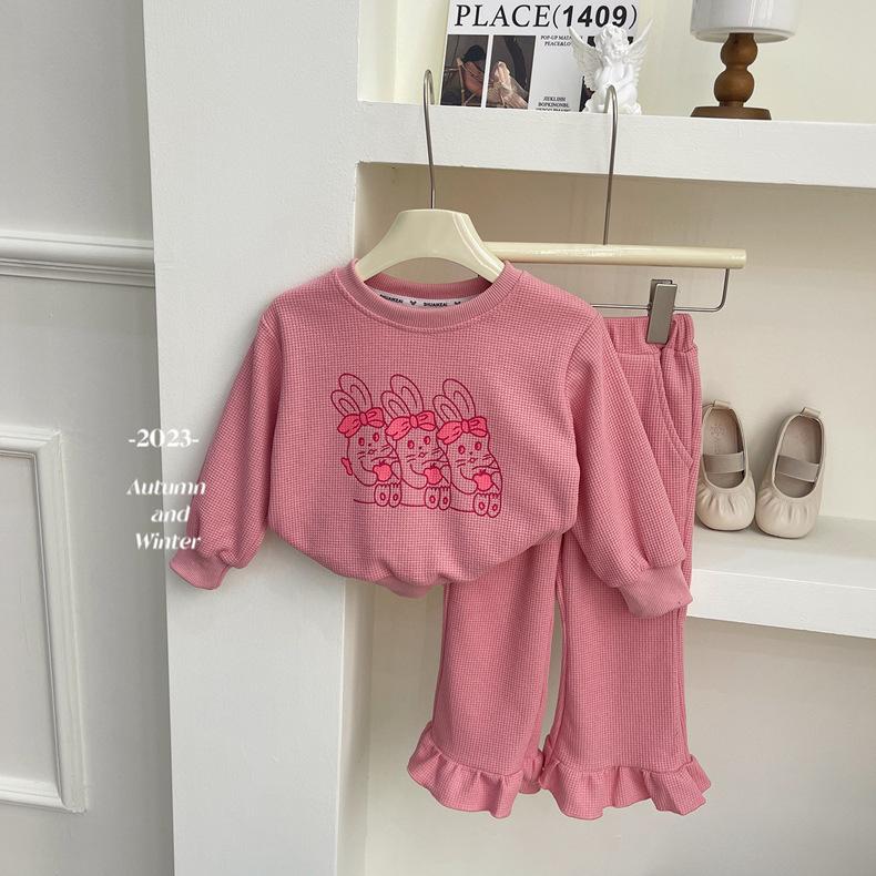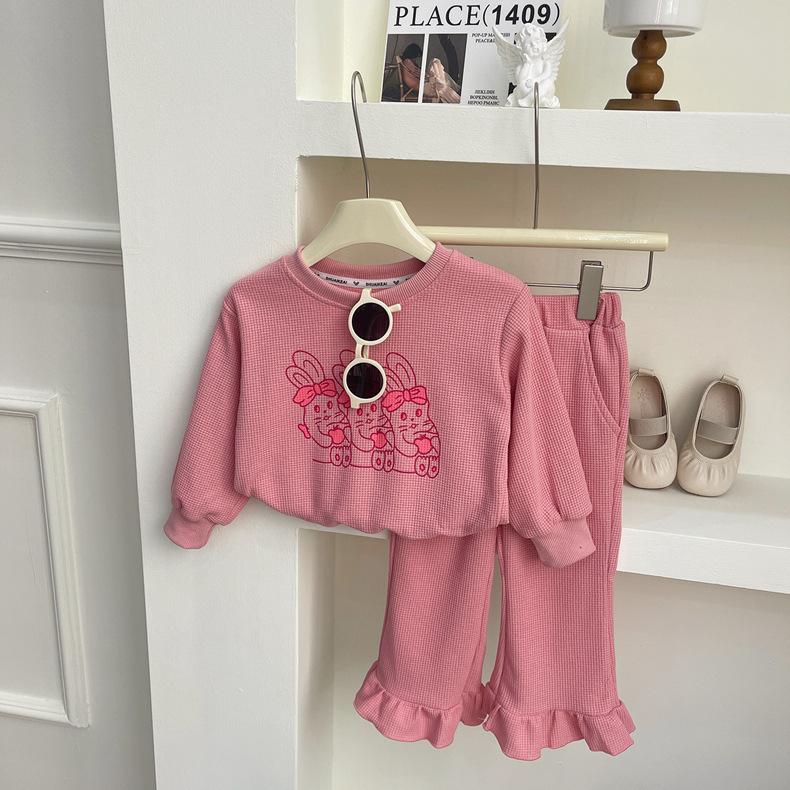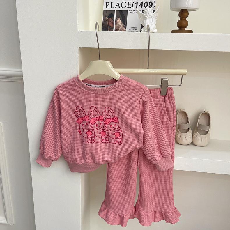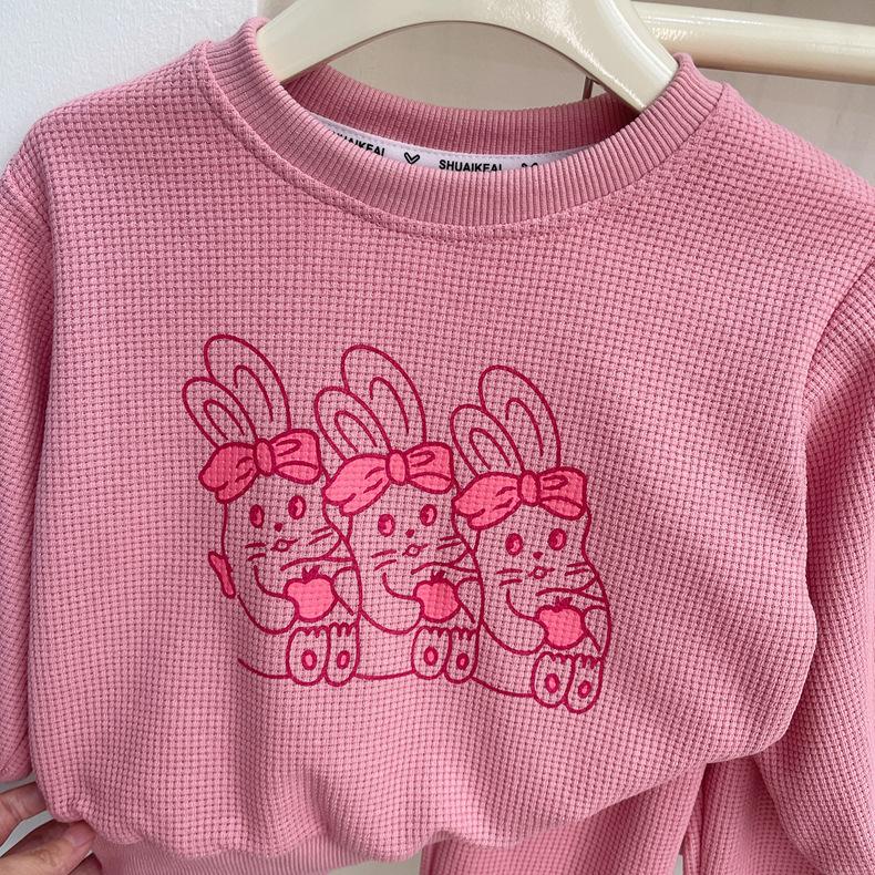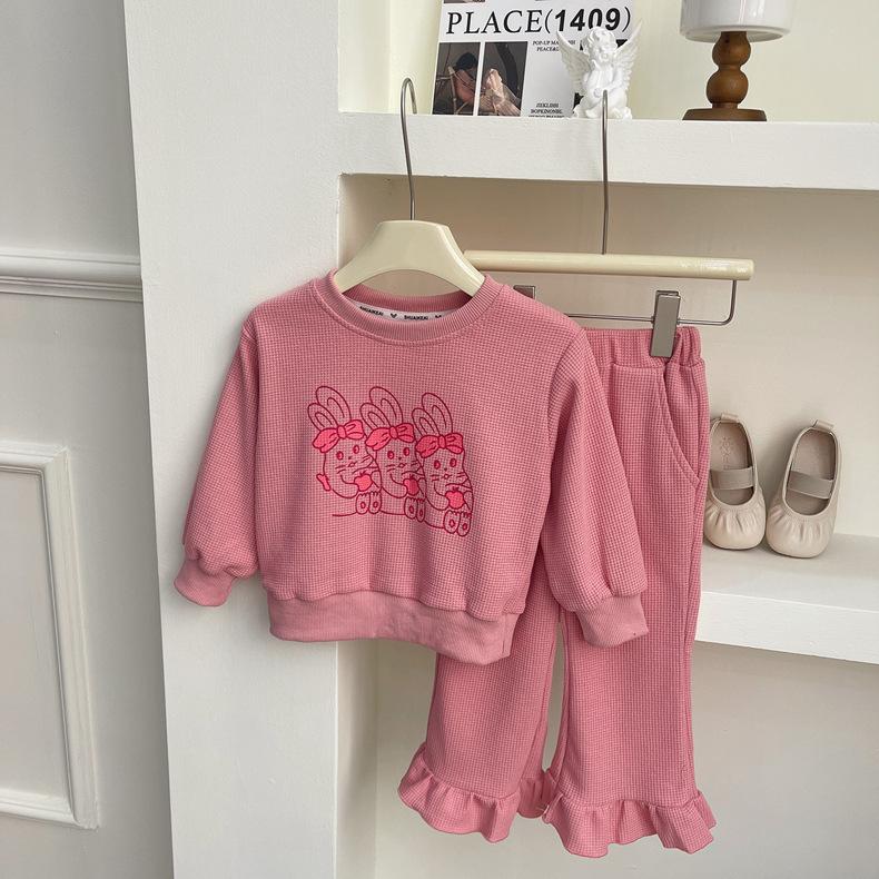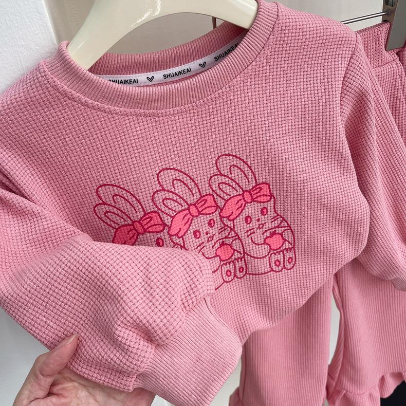 2025 Nuevo Traje de Primavera para Niñas Estilo Coreano Moderno y Occidental Sudadera Deportiva con Estampado de Dibujos Animados de Otoño Conjunto Trendy de Dos Piezas