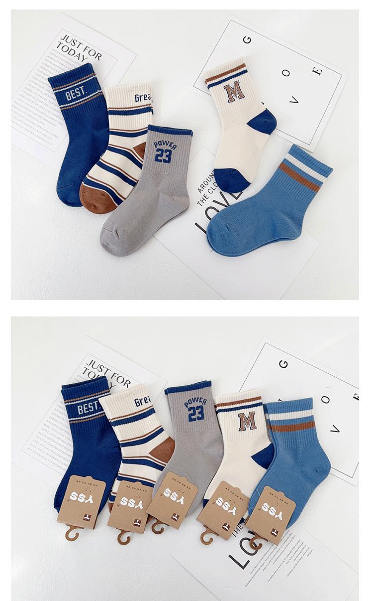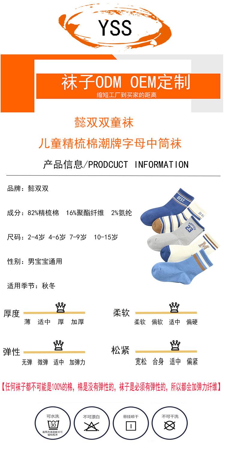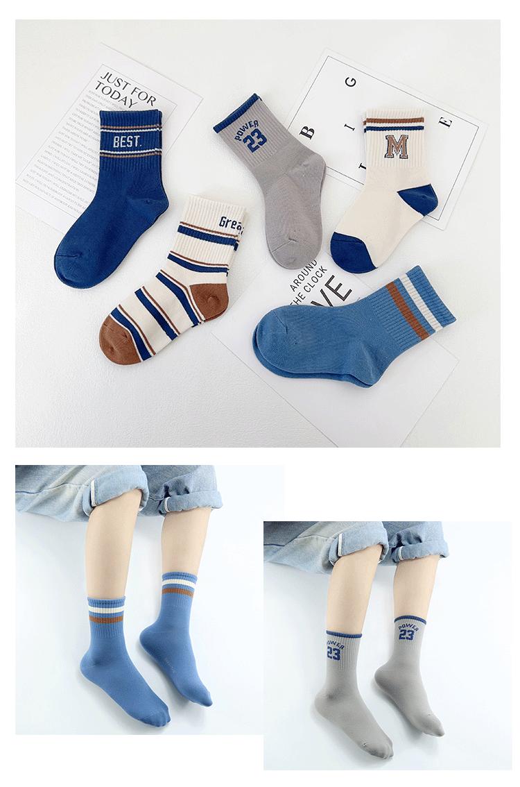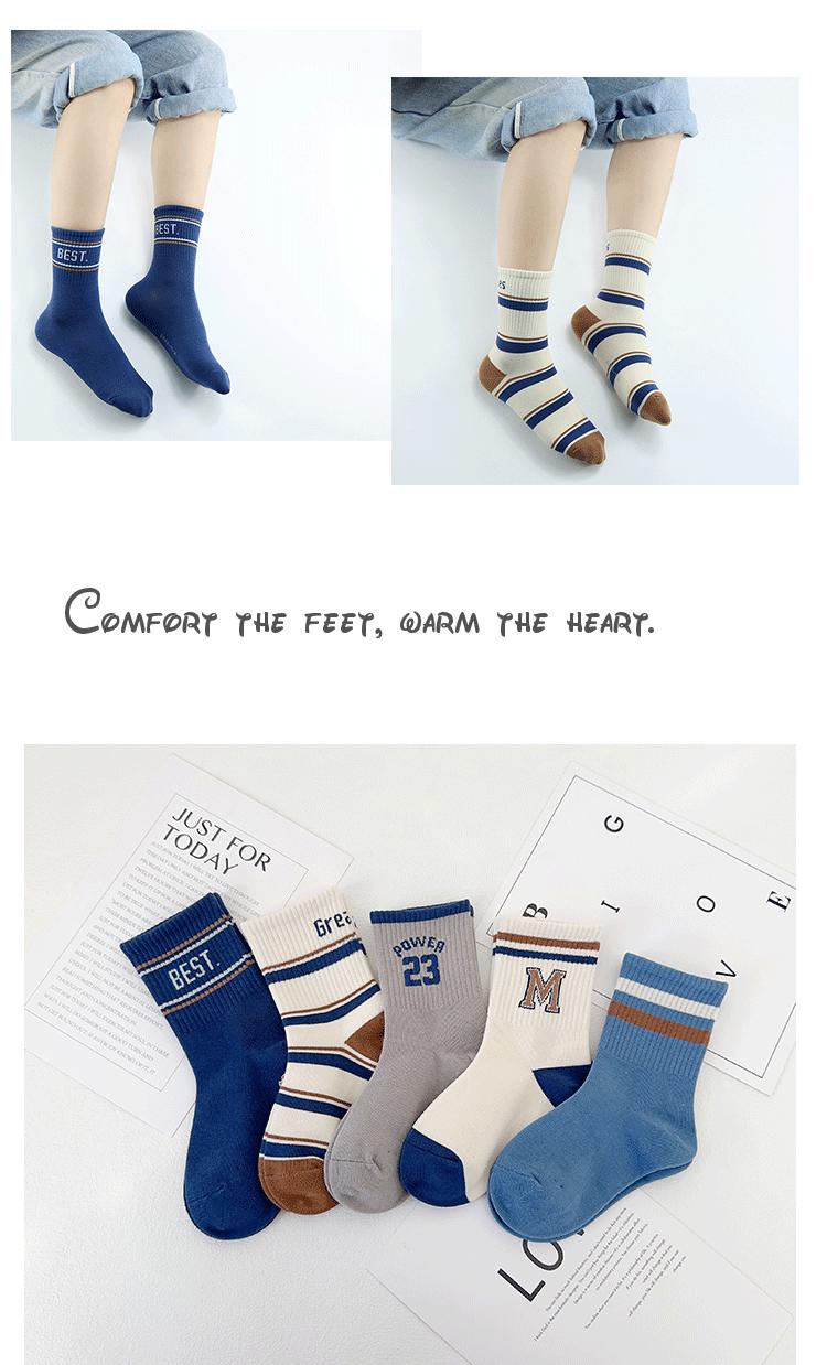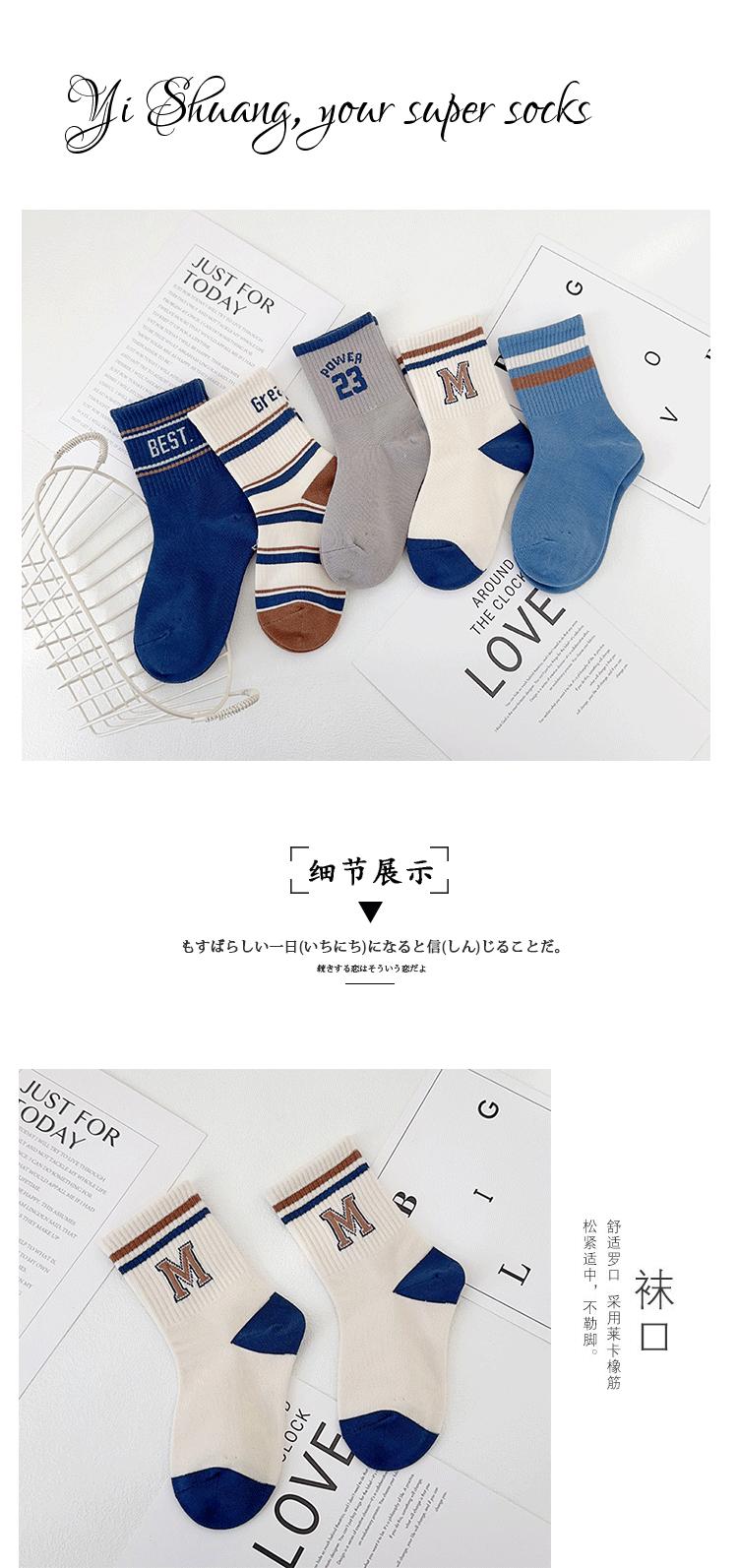 Calcetines para niños Yi Pair Otoño e Invierno Nuevo Marca de Moda Carta Calcetines de Media Caña Algodón Peinado Calcetines Deportivos para Niños Calcetines de Algodón para Estudiantes