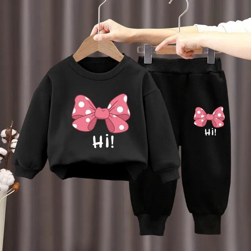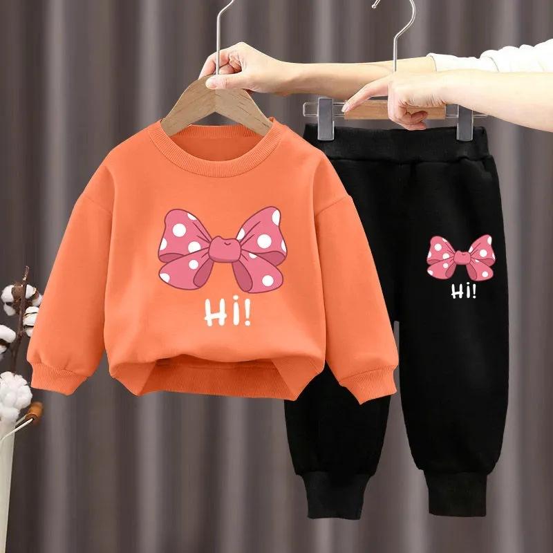 (pink sweatshirt + black pants) hi bow, Purple sweatshirt + black pants) hi bow, (orange sweatshirt + black pa...