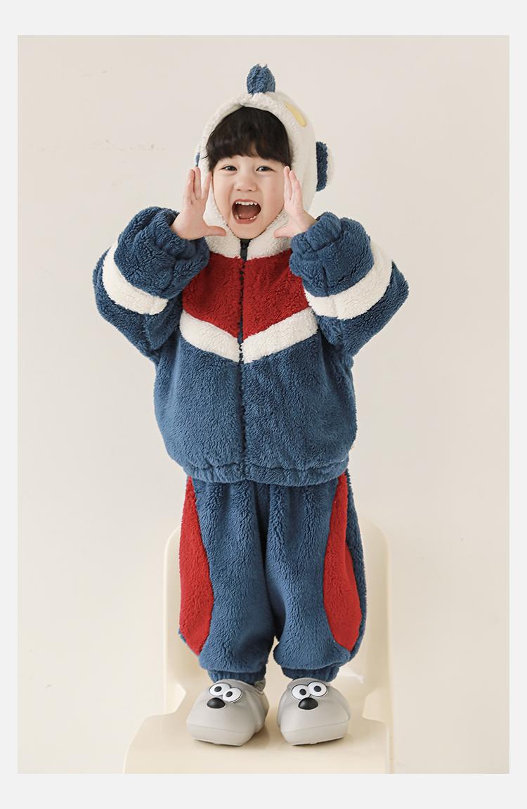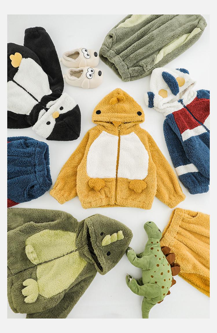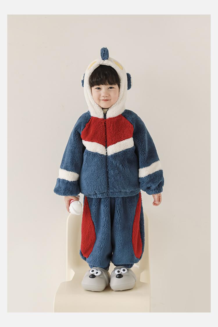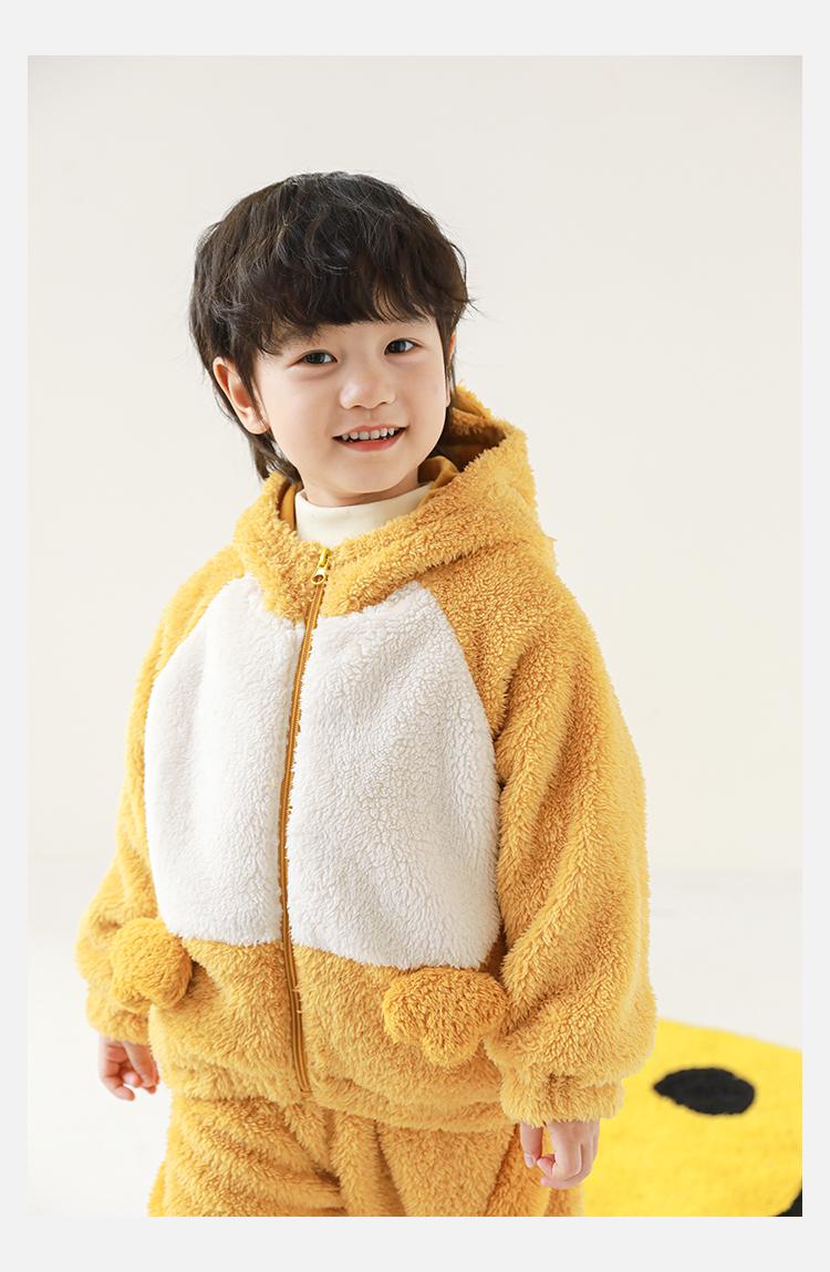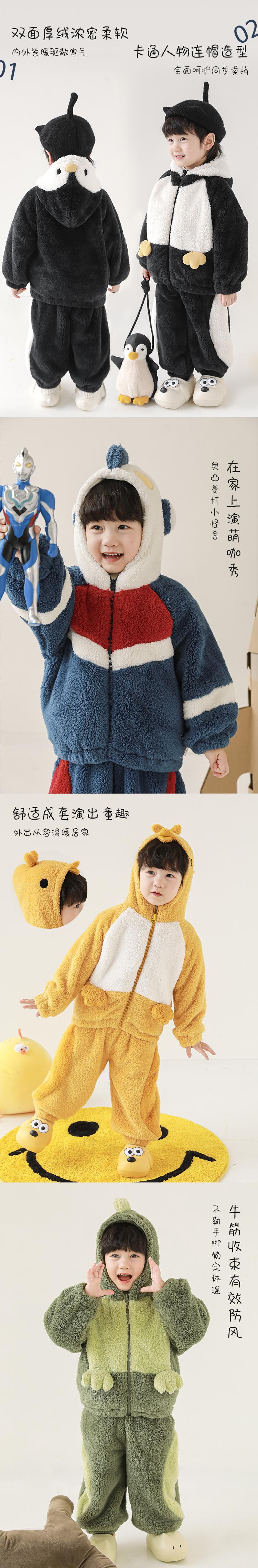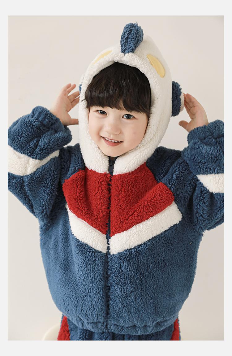 Wuri Conjunto de ropa para el hogar de forro polar de doble cara para niños con capucha de dibujos animados Invierno Nuevo Cálido Pijama de dos piezas a la moda