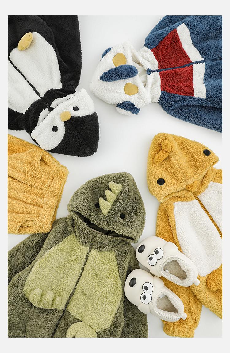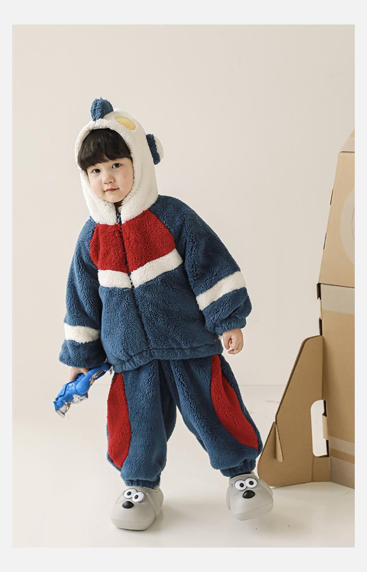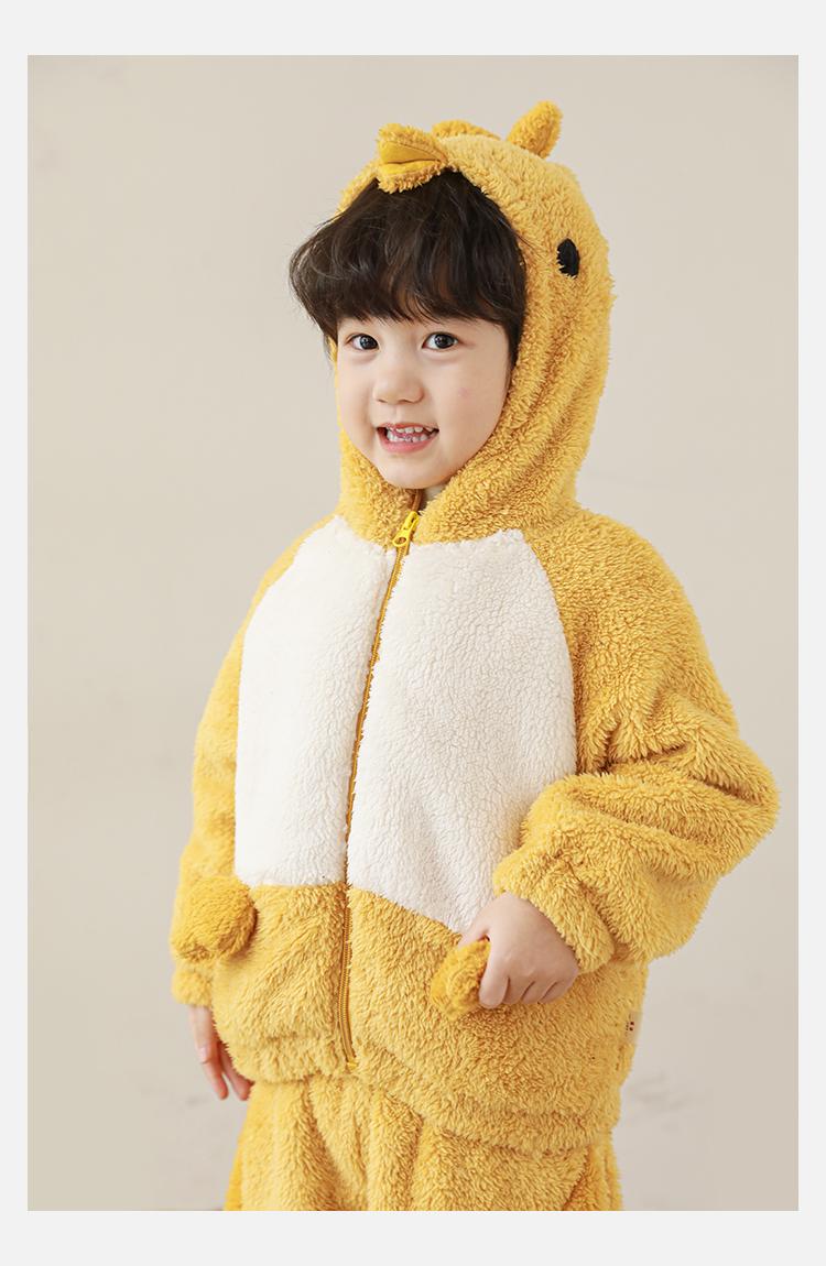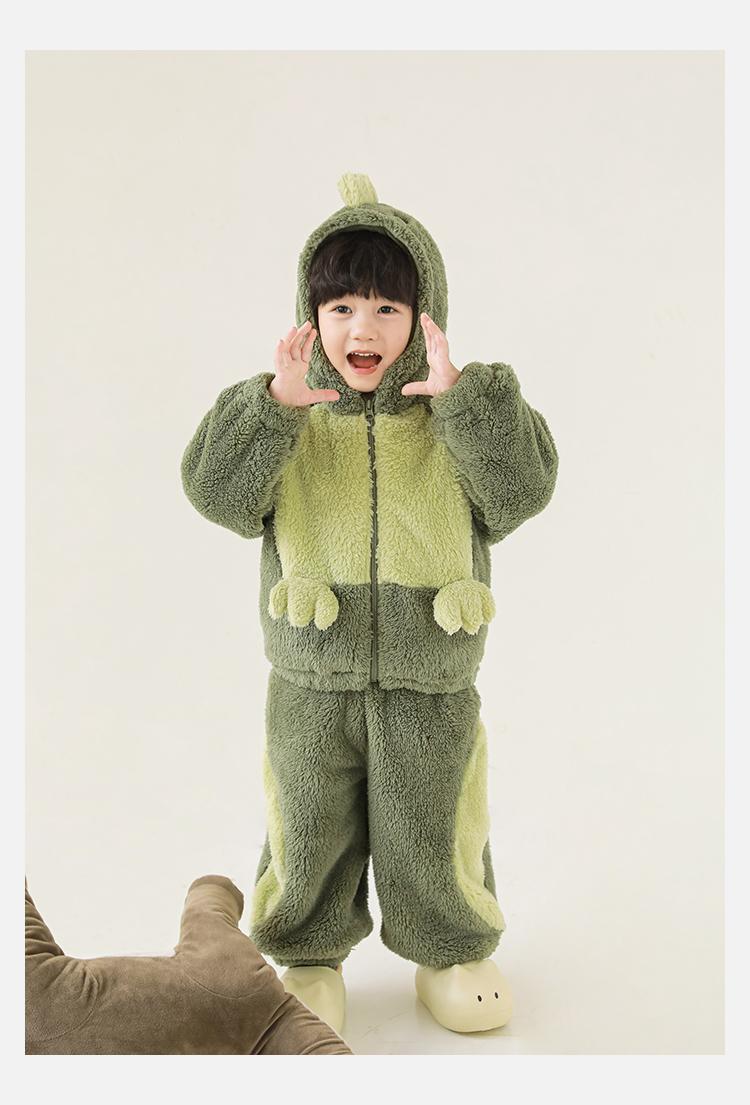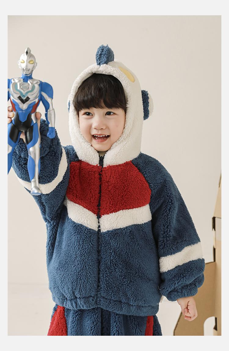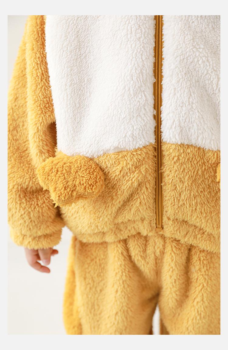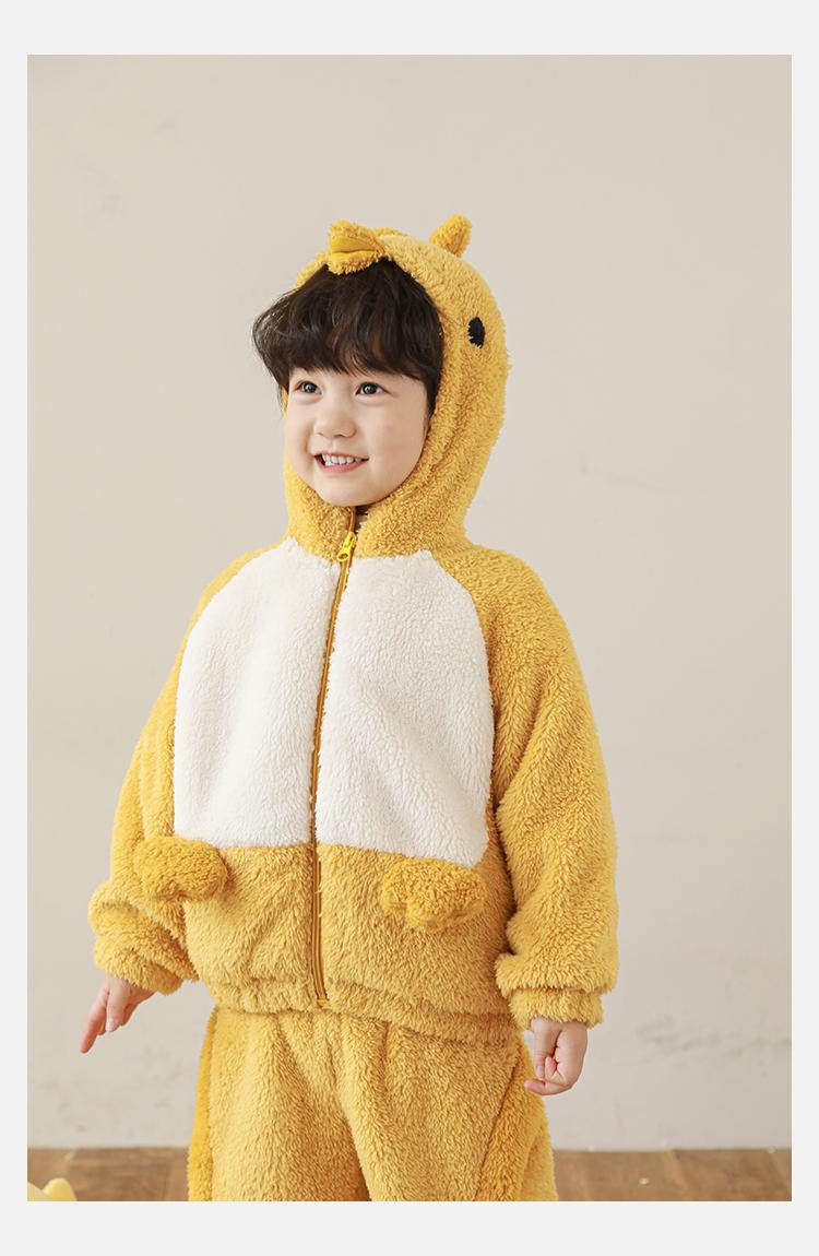 Wuri Conjunto de ropa para el hogar de forro polar de doble cara para niños con capucha de dibujos animados Invierno Nuevo Cálido Pijama de dos piezas a la moda