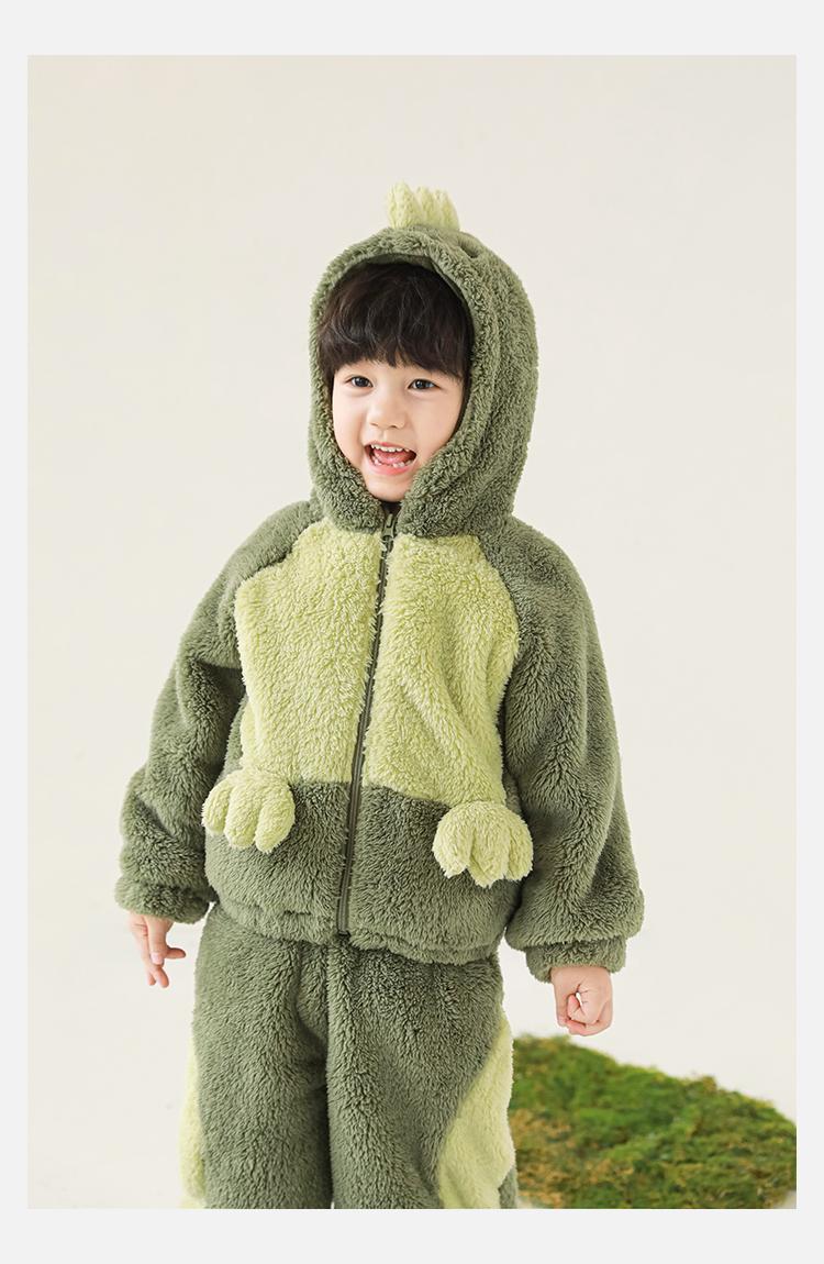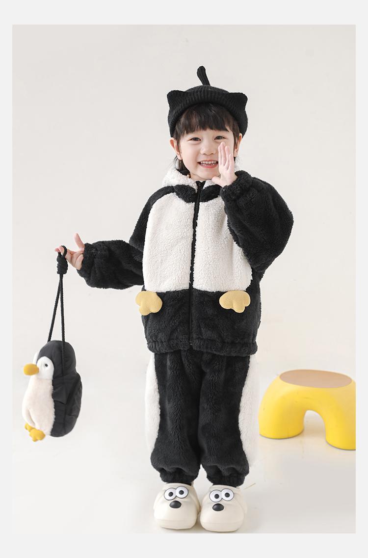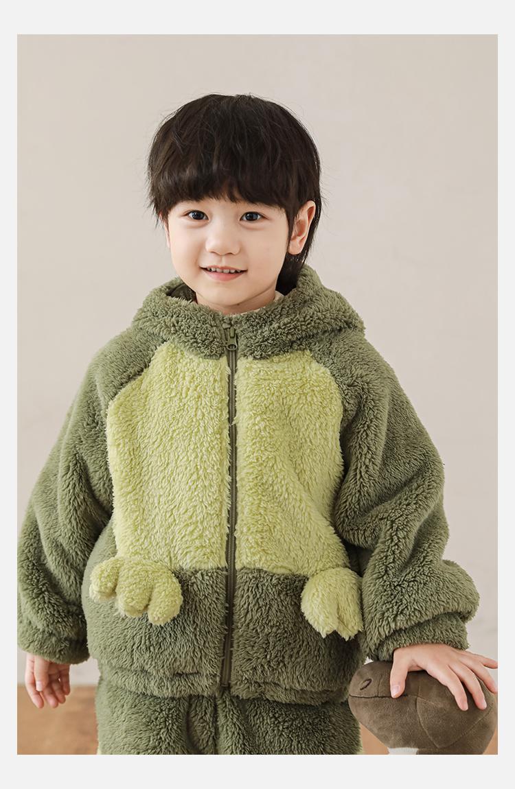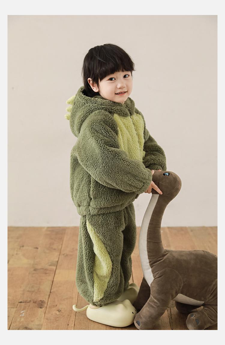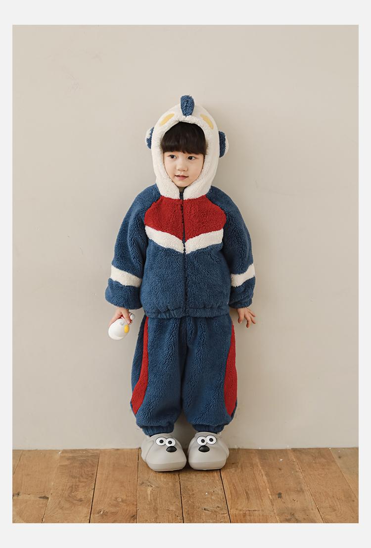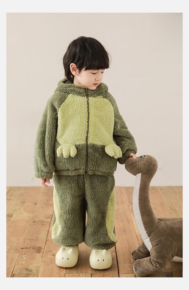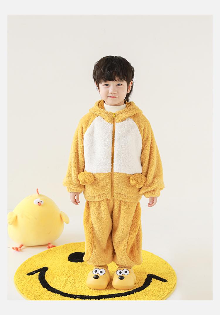 Wuri Conjunto de ropa para el hogar de forro polar de doble cara para niños con capucha de dibujos animados Invierno Nuevo Cálido Pijama de dos piezas a la moda