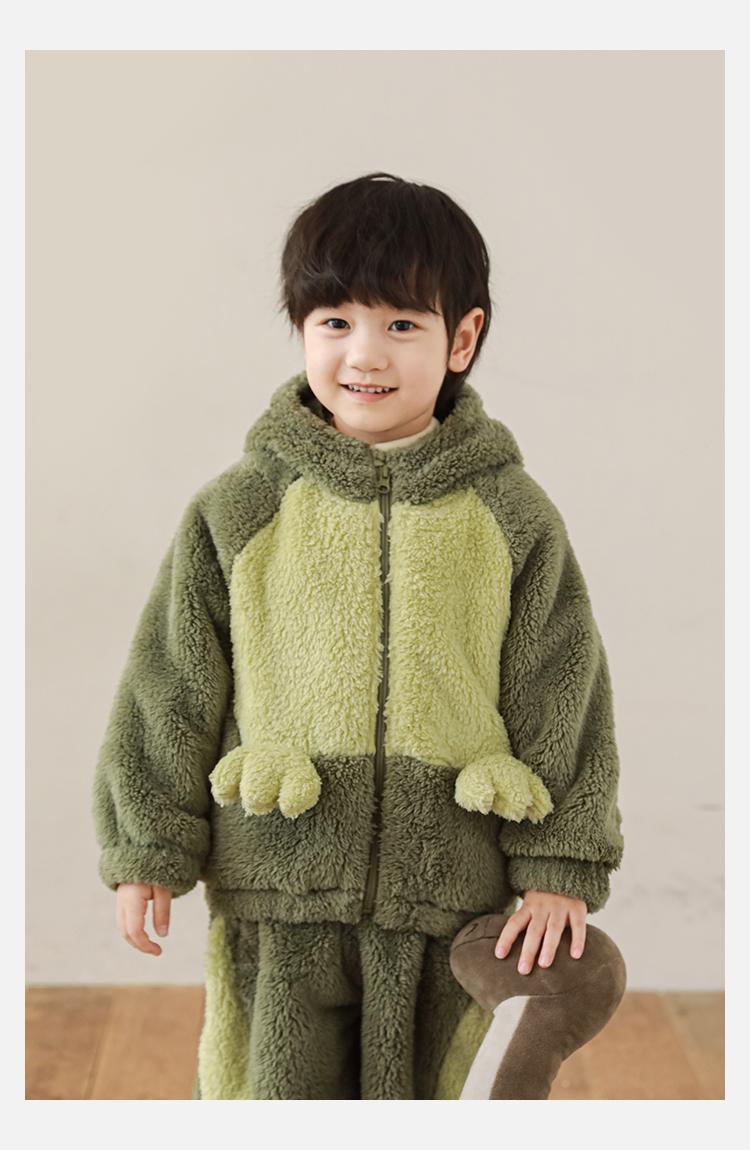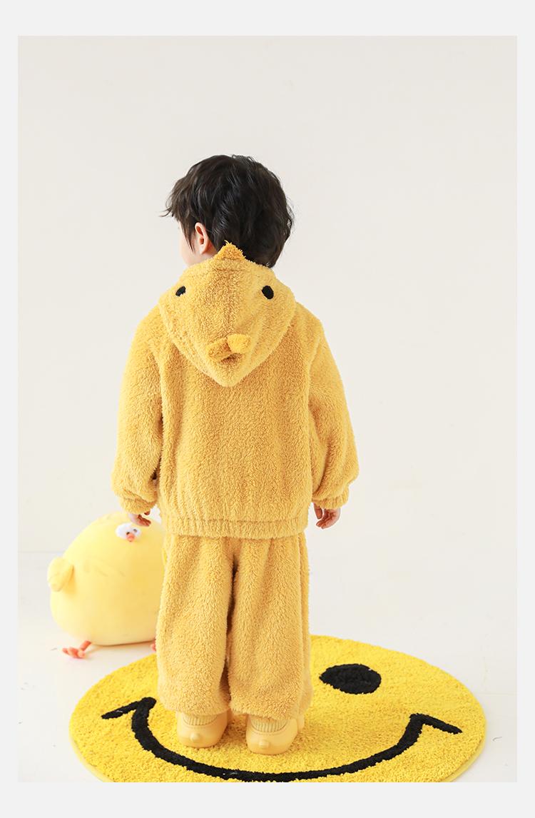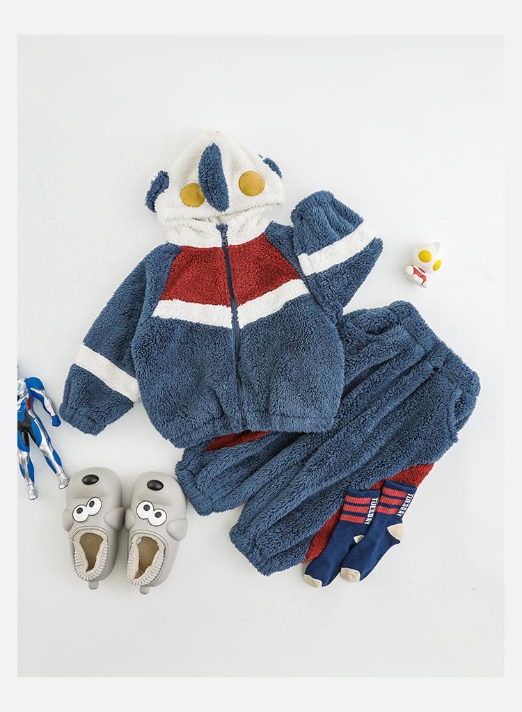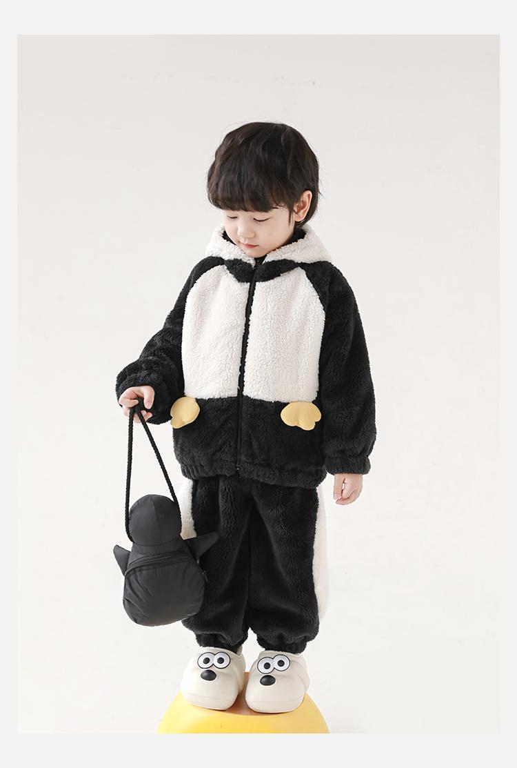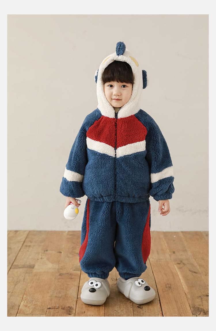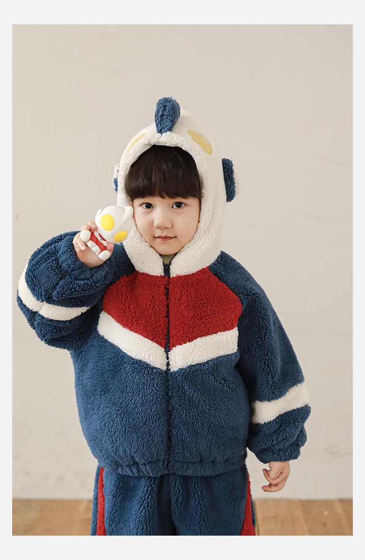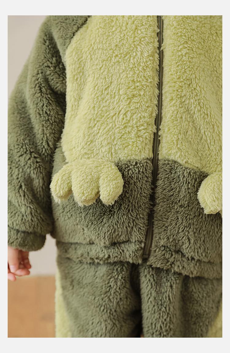 Wuri Conjunto de ropa para el hogar de forro polar de doble cara para niños con capucha de dibujos animados Invierno Nuevo Cálido Pijama de dos piezas a la moda