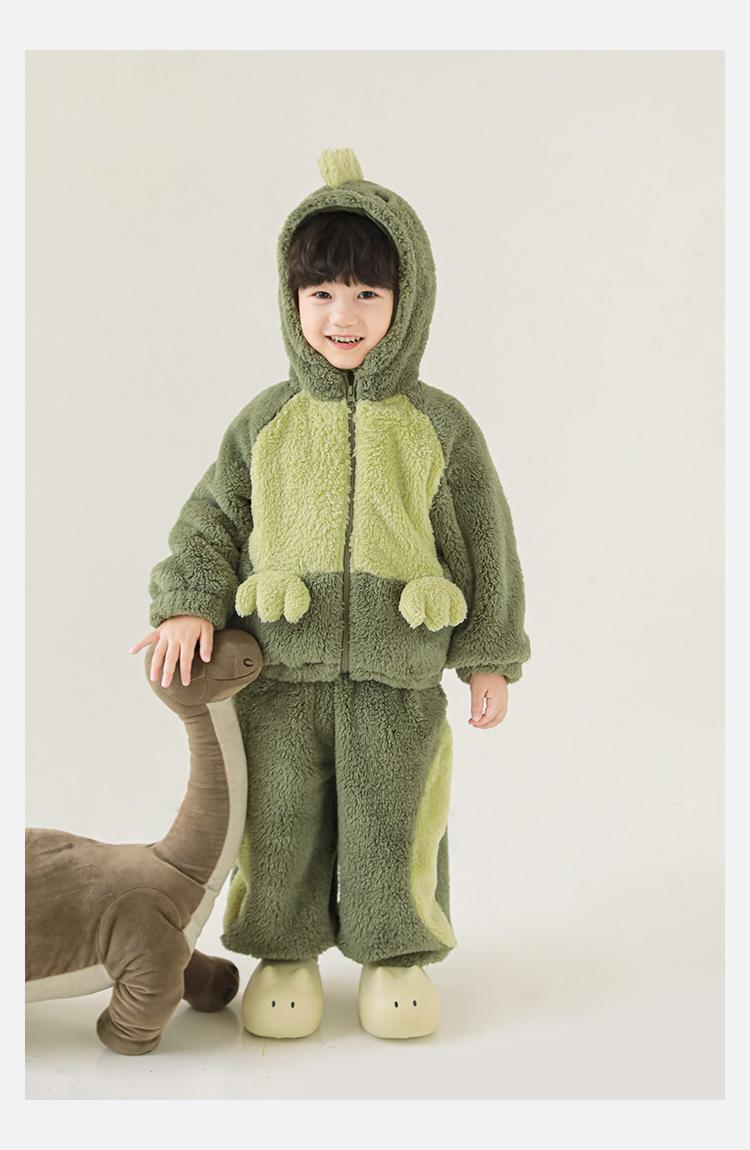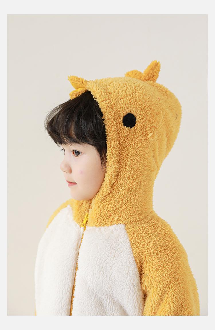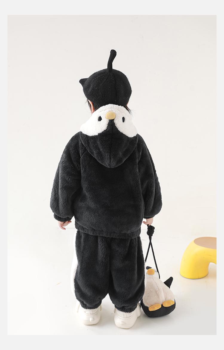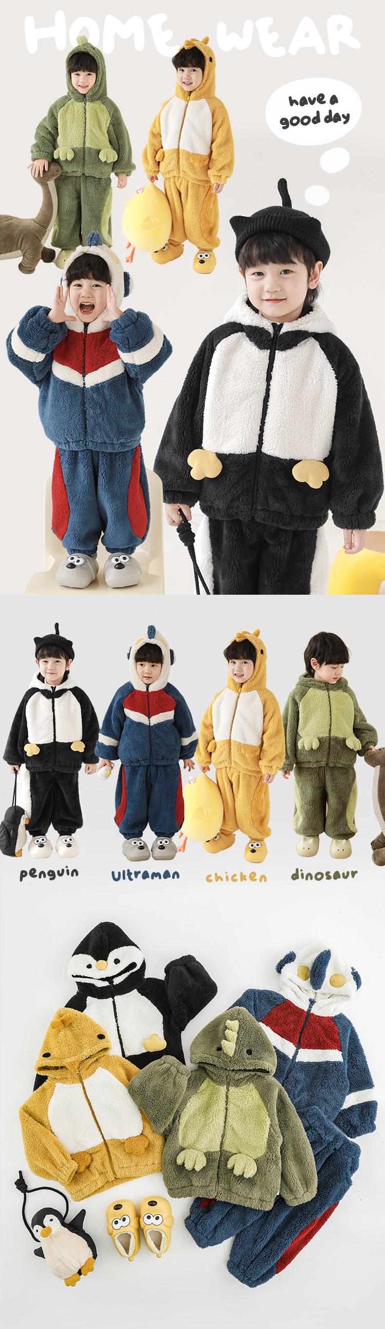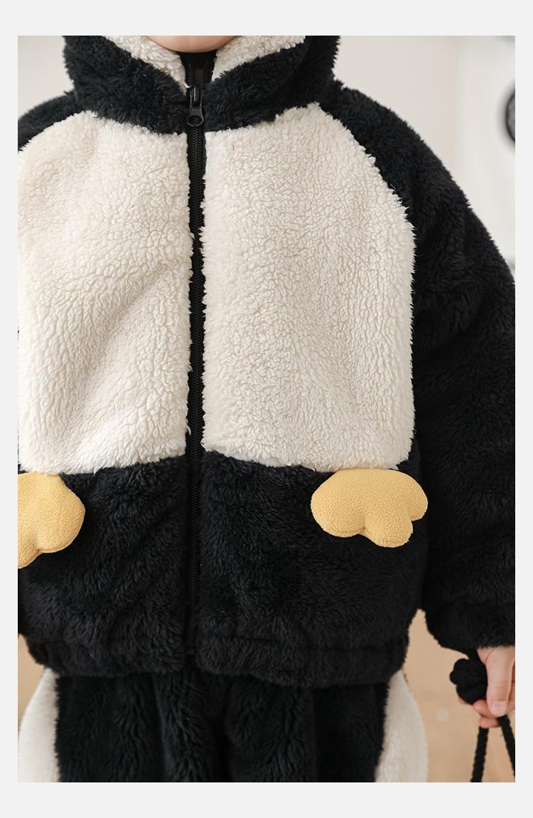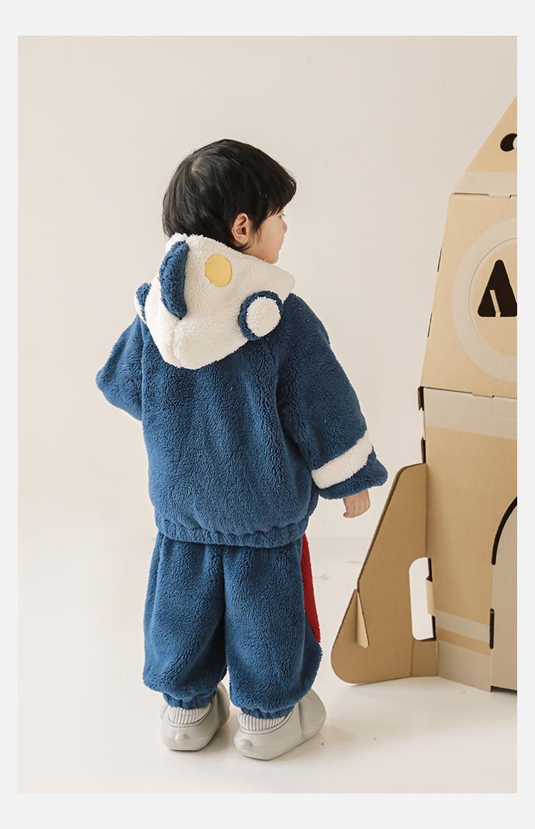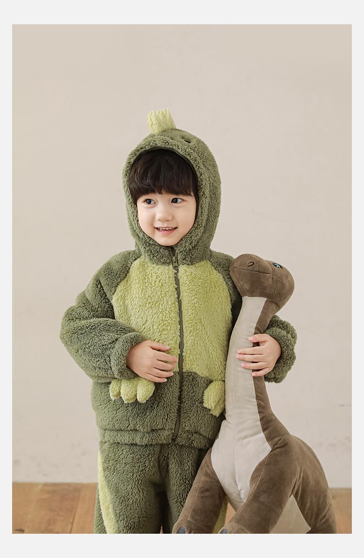 Wuri Conjunto de ropa para el hogar de forro polar de doble cara para niños con capucha de dibujos animados Invierno Nuevo Cálido Pijama de dos piezas a la moda