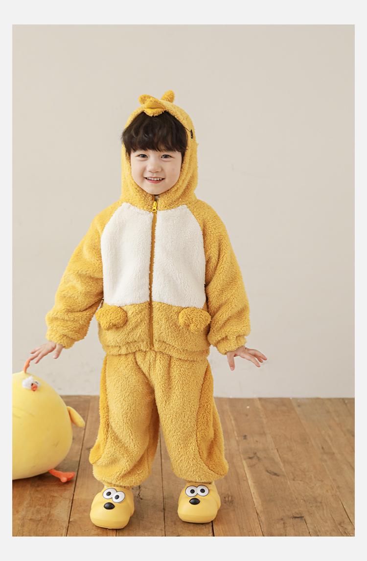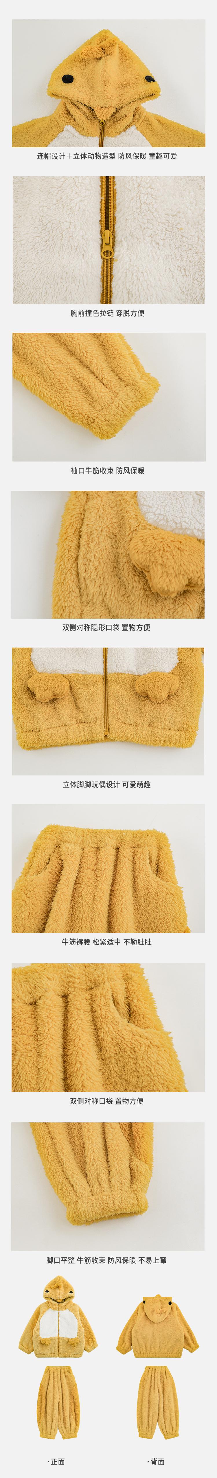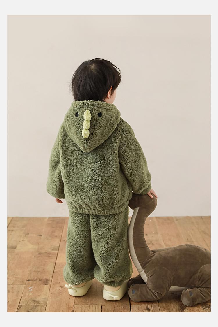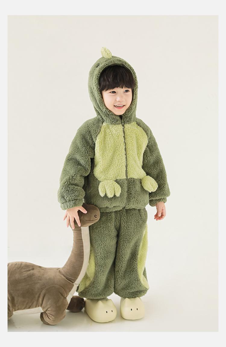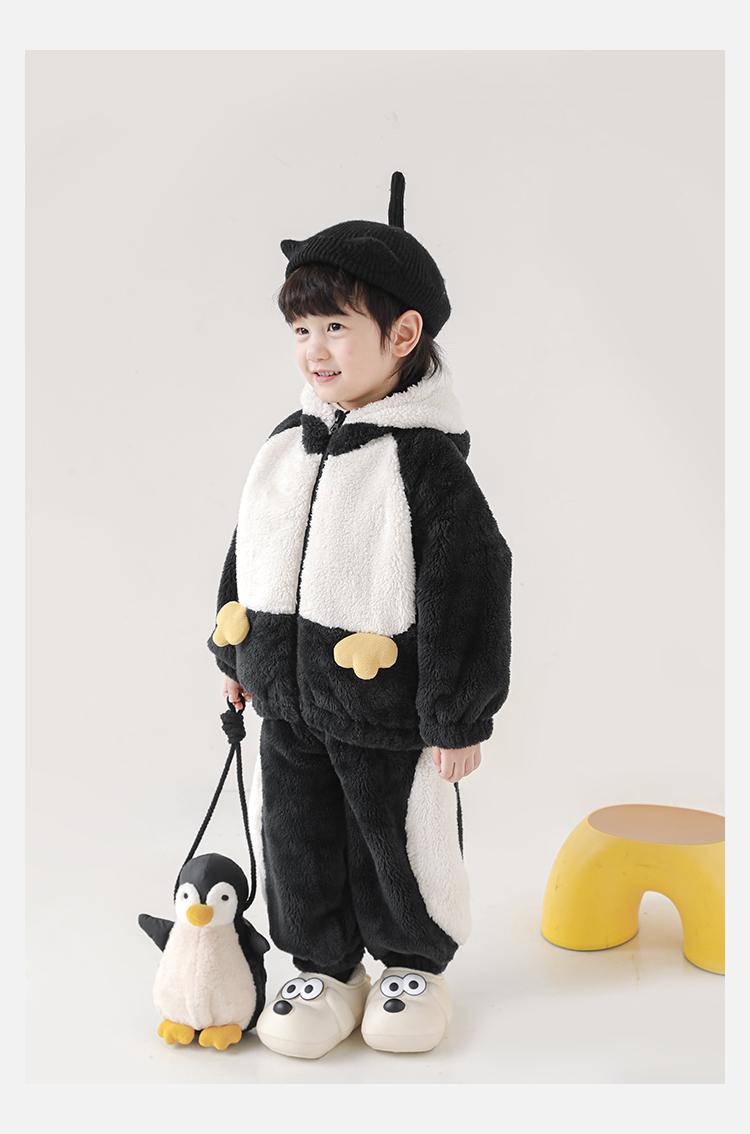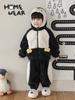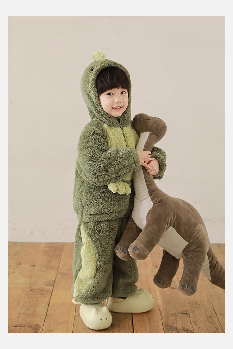 Wuri Conjunto de ropa para el hogar de forro polar de doble cara para niños con capucha de dibujos animados Invierno Nuevo Cálido Pijama de dos piezas a la moda