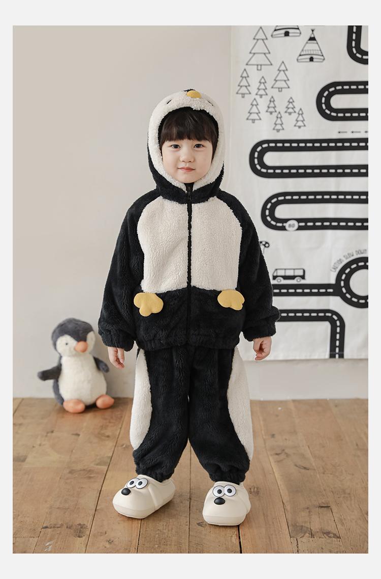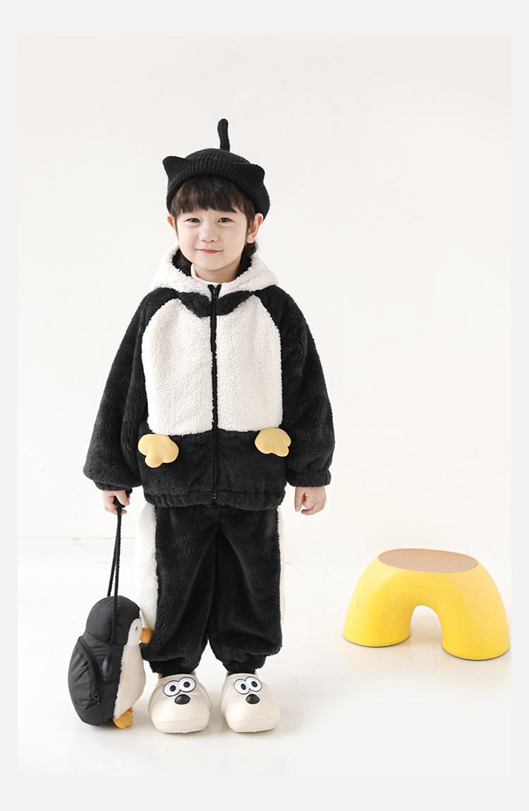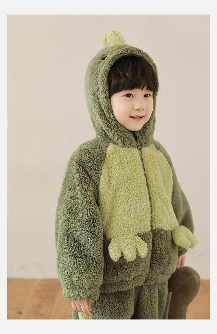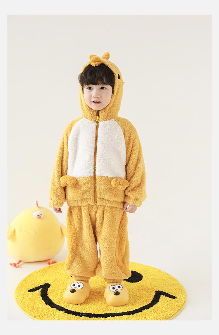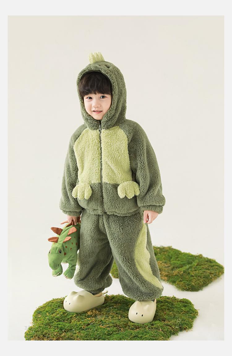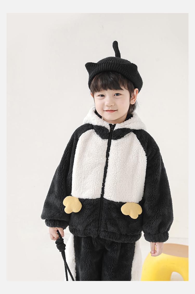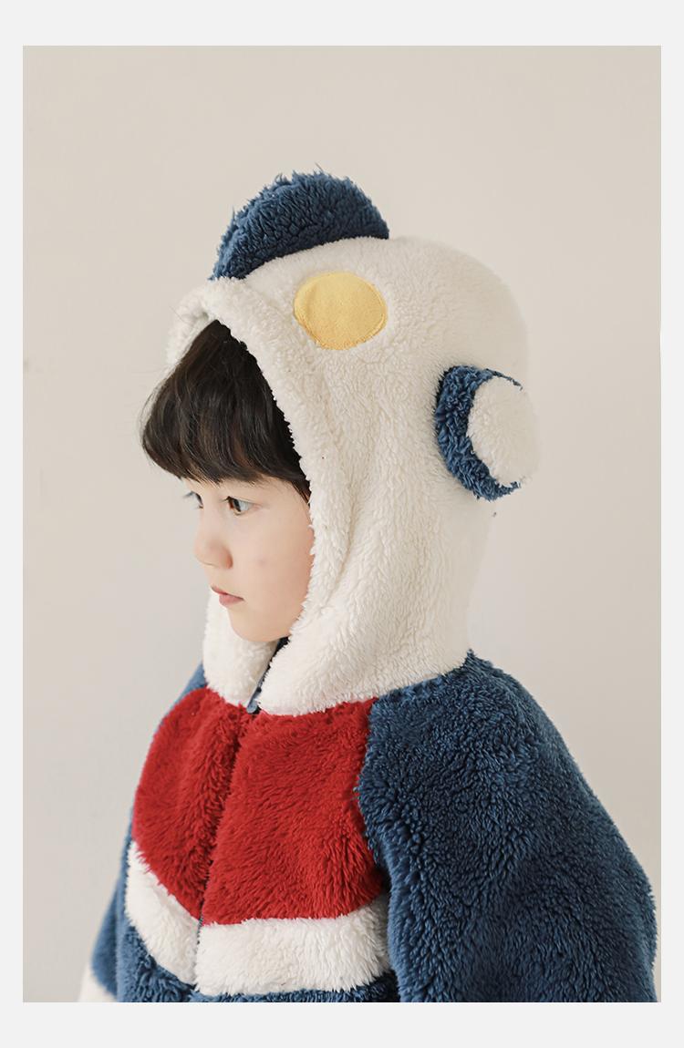Wuri Conjunto de ropa para el hogar de forro polar de doble cara para niños con capucha de dibujos animados Invierno Nuevo Cálido Pijama de dos piezas a la moda