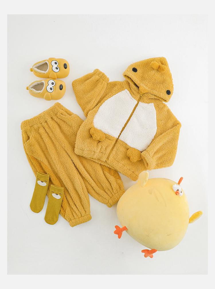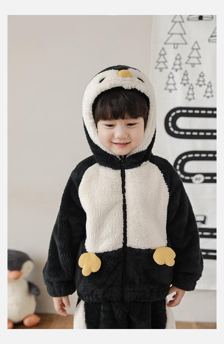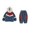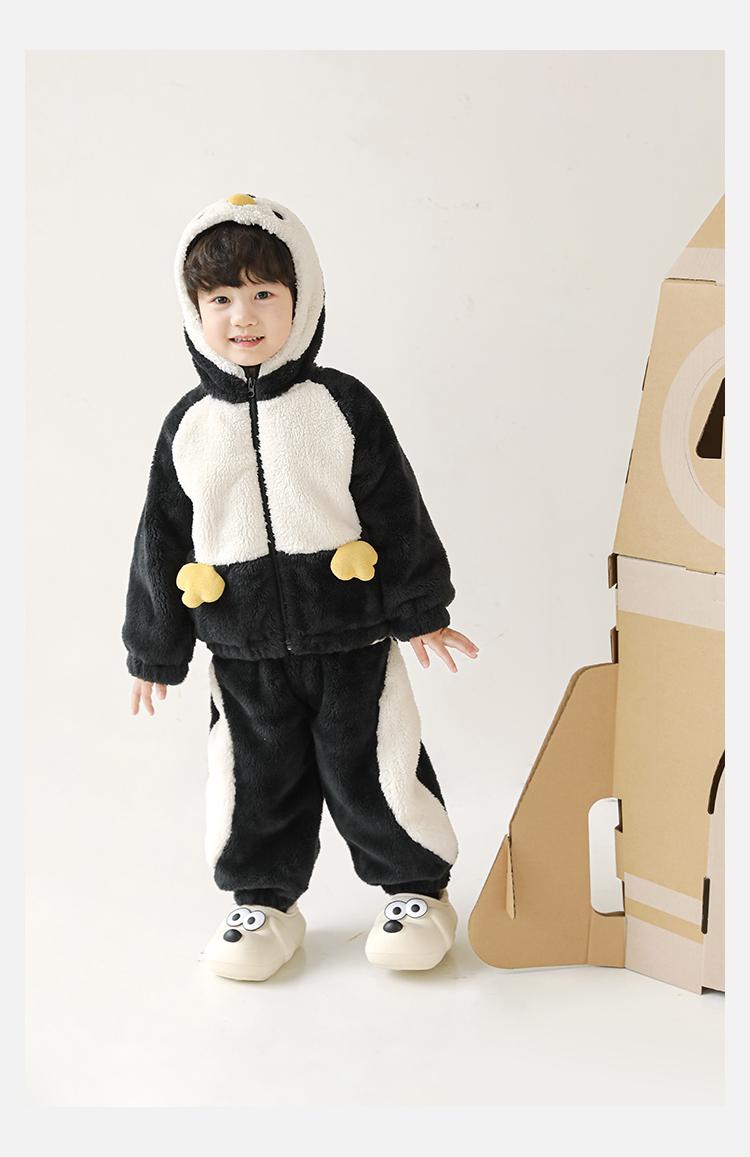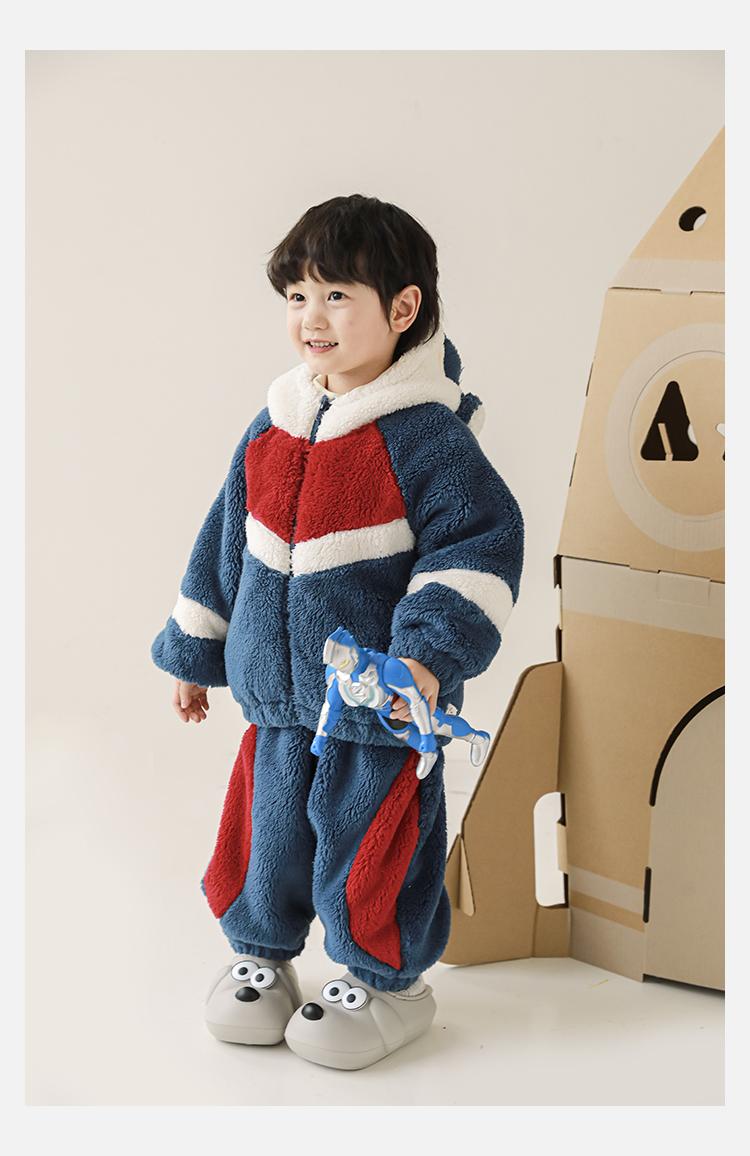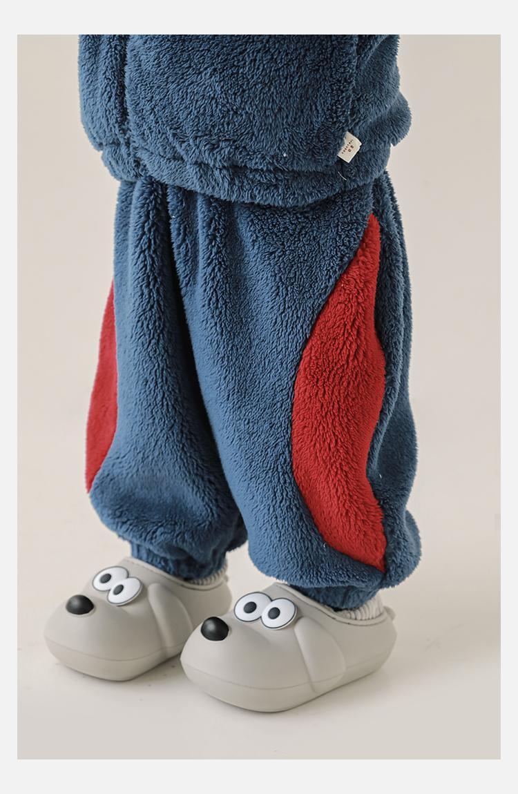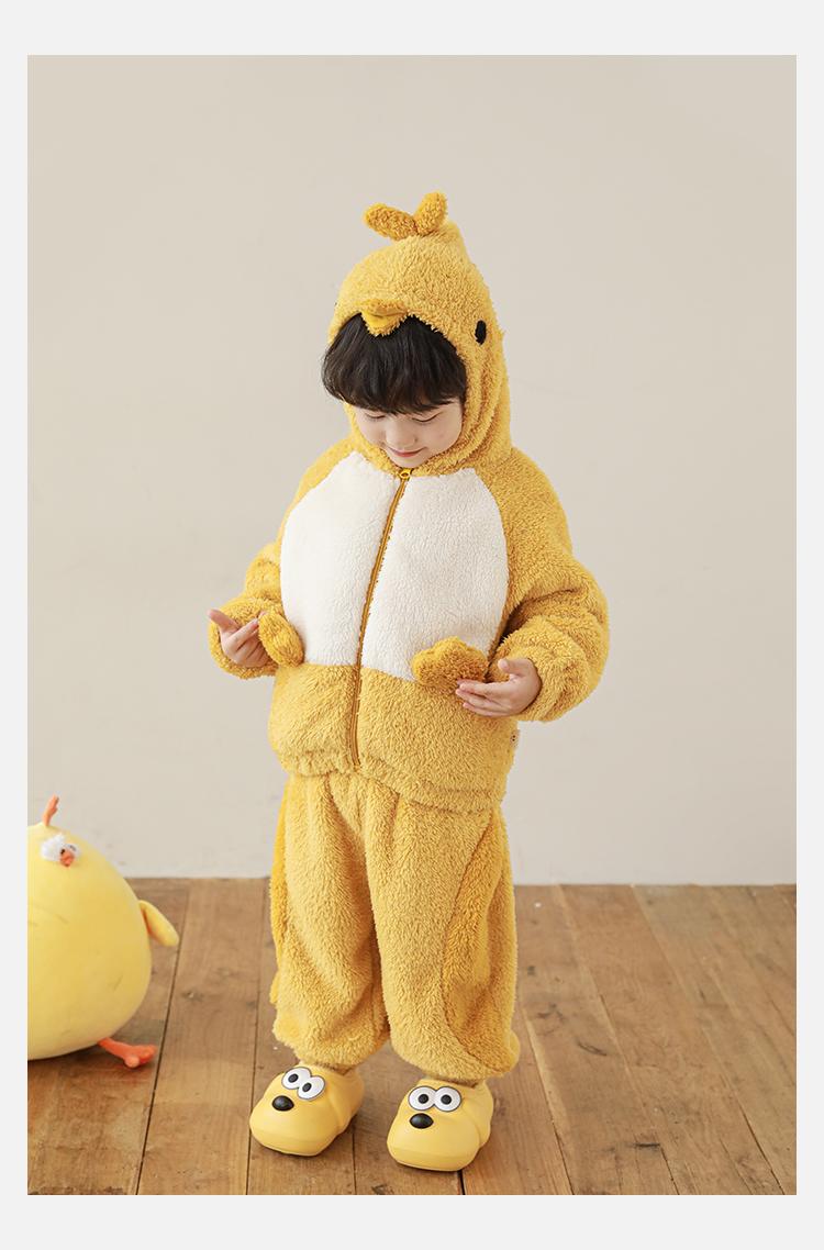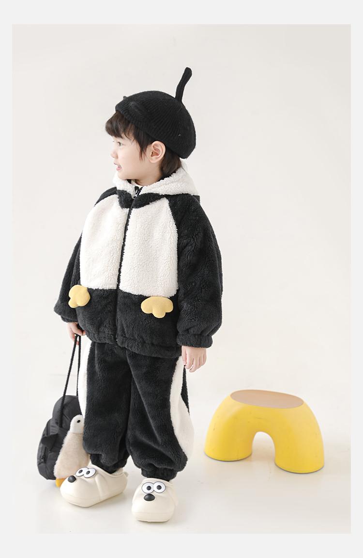 Wuri Conjunto de ropa para el hogar de forro polar de doble cara para niños con capucha de dibujos animados Invierno Nuevo Cálido Pijama de dos piezas a la moda