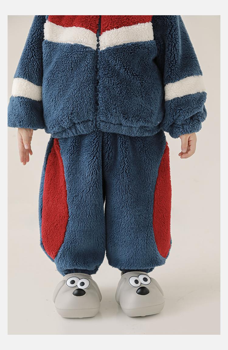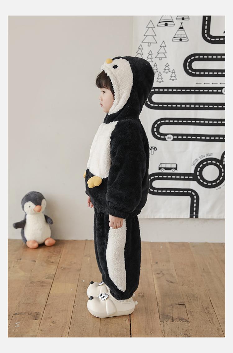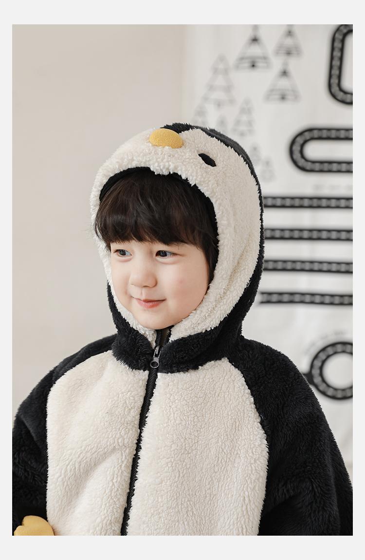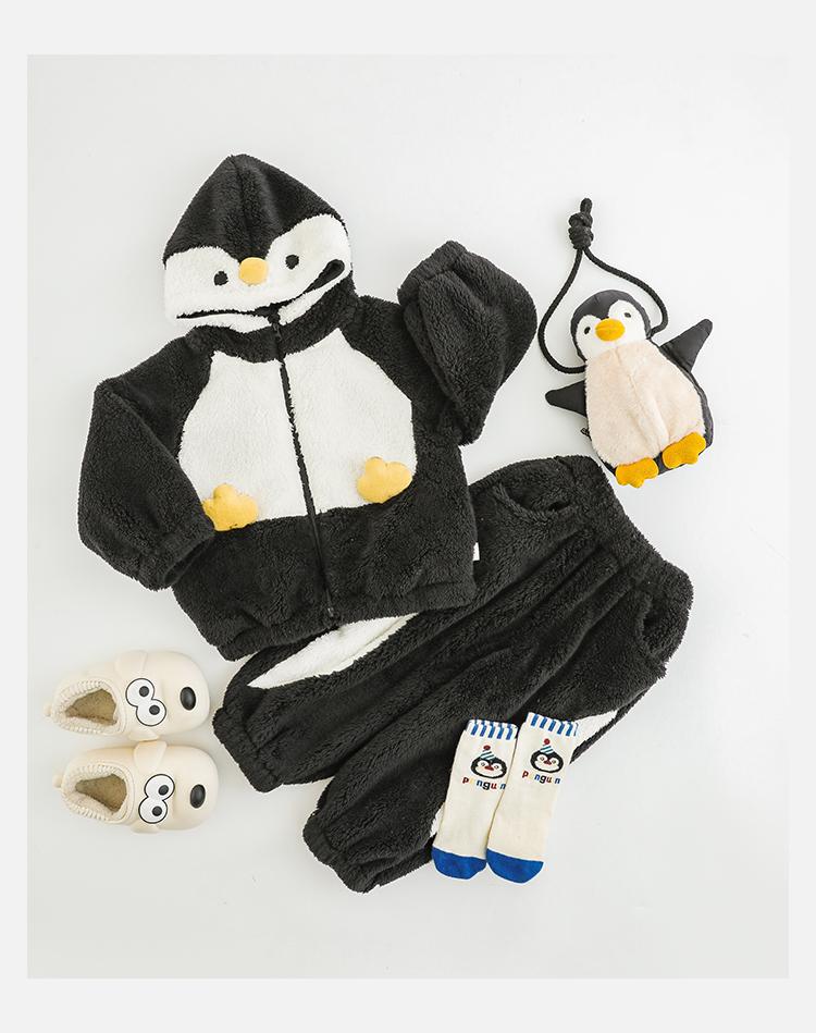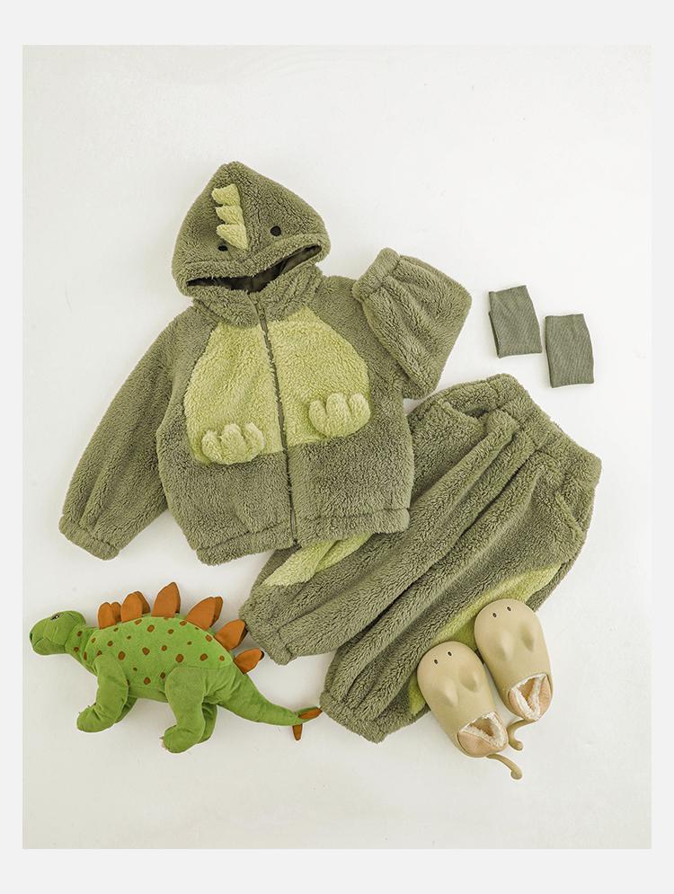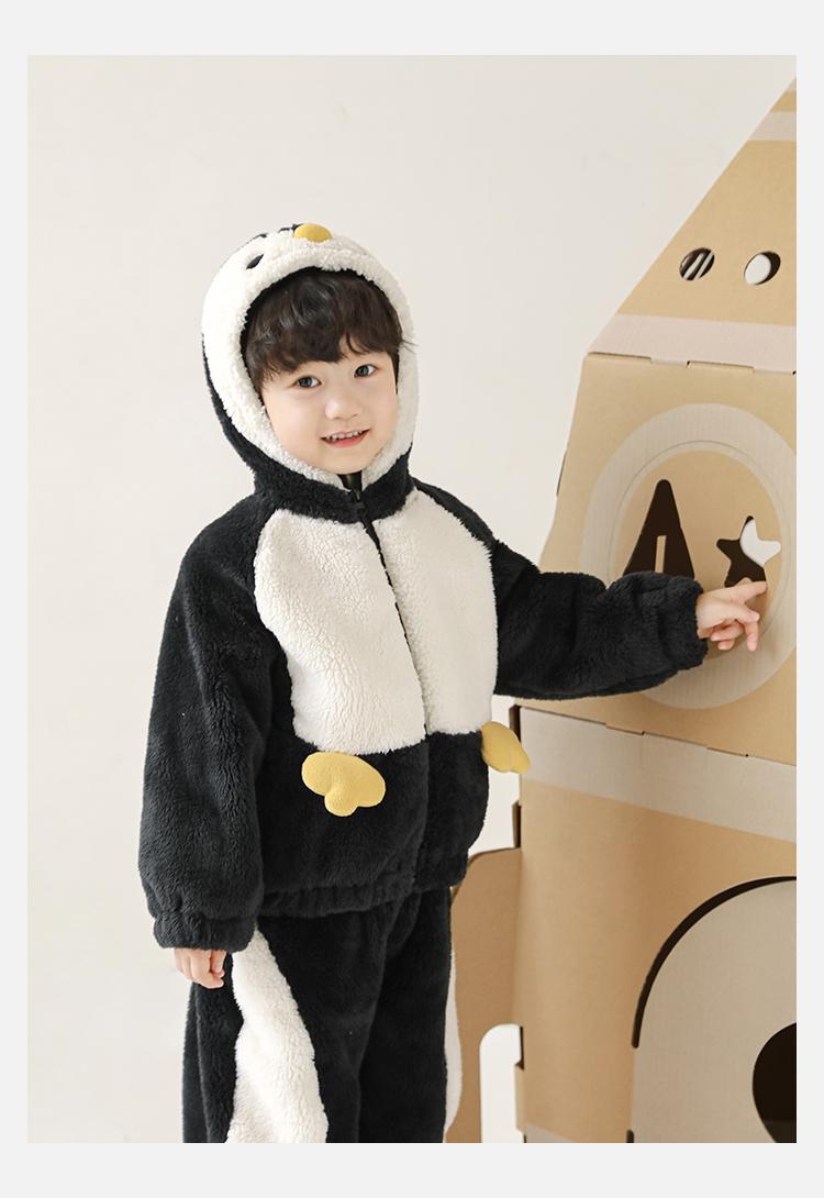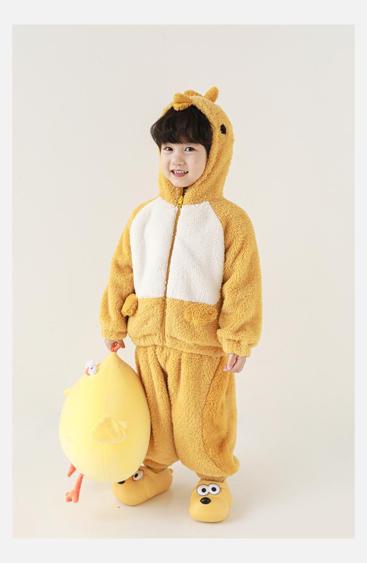 Wuri Conjunto de ropa para el hogar de forro polar de doble cara para niños con capucha de dibujos animados Invierno Nuevo Cálido Pijama de dos piezas a la moda