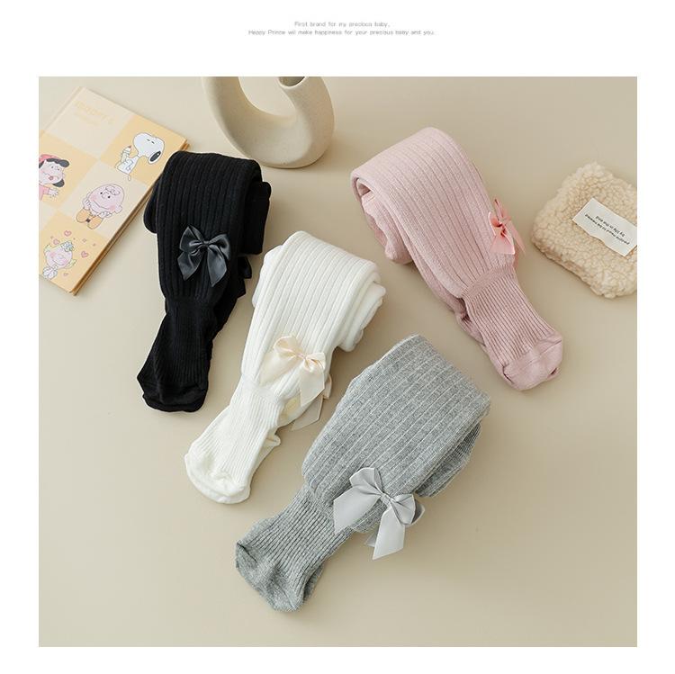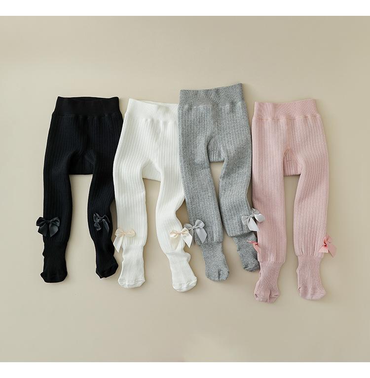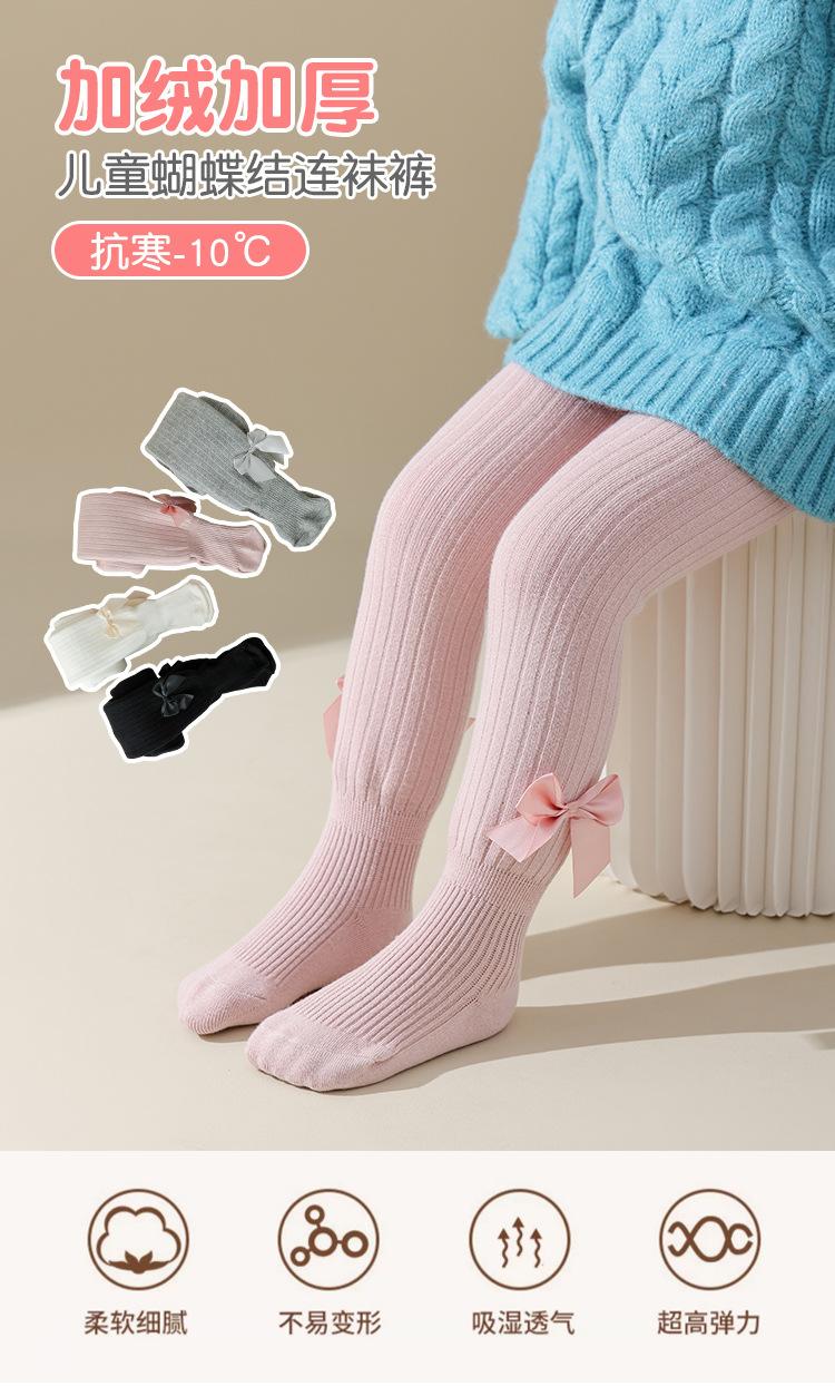Nuevas mallas para niños, forradas de vellón de invierno, gruesas, para otoño e invierno, para bebés de mediana edad, con lazo, pantimedias abiertas para bebés.