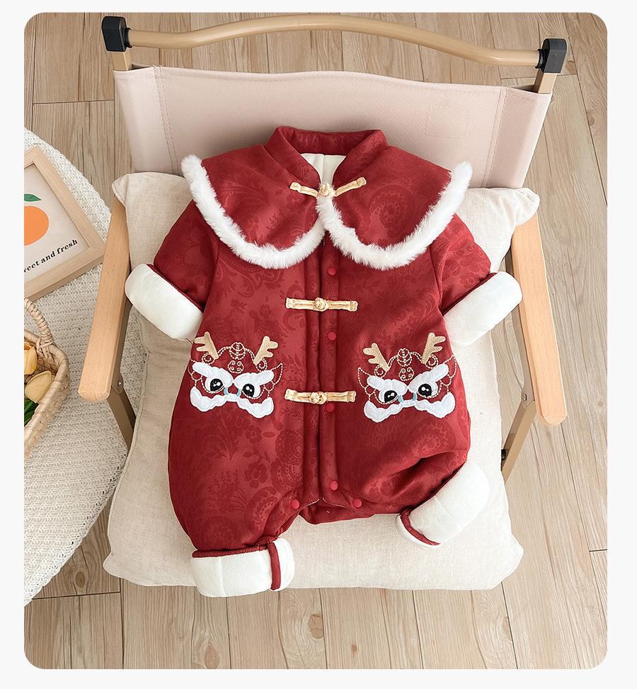 Ropa de bebé para Año Nuevo, ropa de invierno para niños y niñas, mono de estilo chino para bebé, mono de invierno grueso de luna llena de 100 días, ropa Harbin, traje de escalada