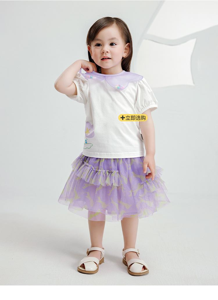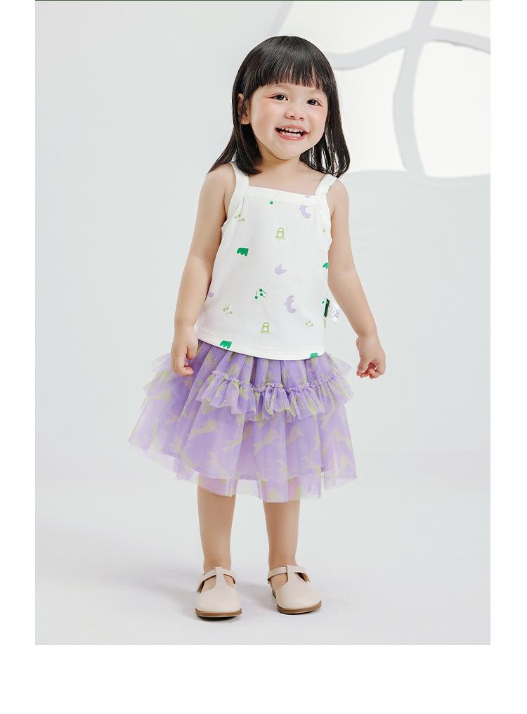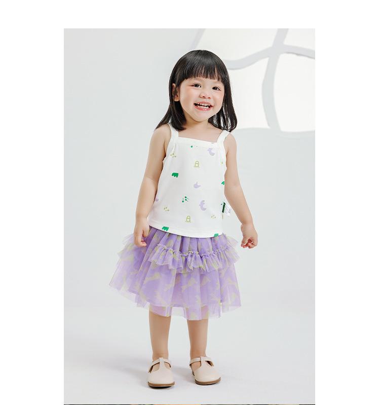 Falda de tul de media longitud con estampado completo de color puro para niñas y bebés, nueva falda de verano 2024