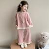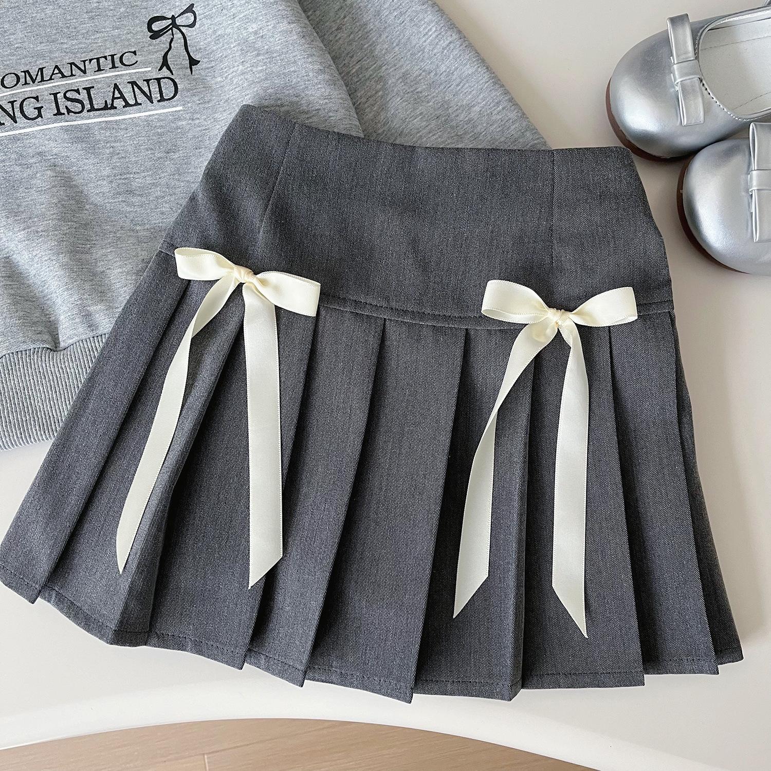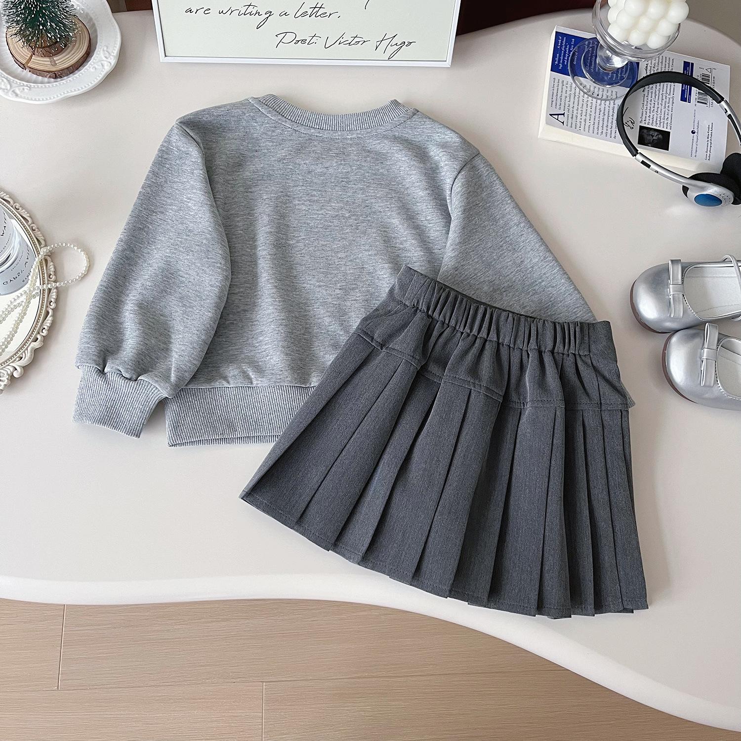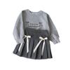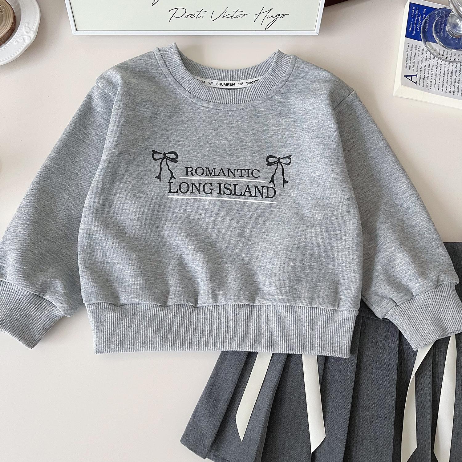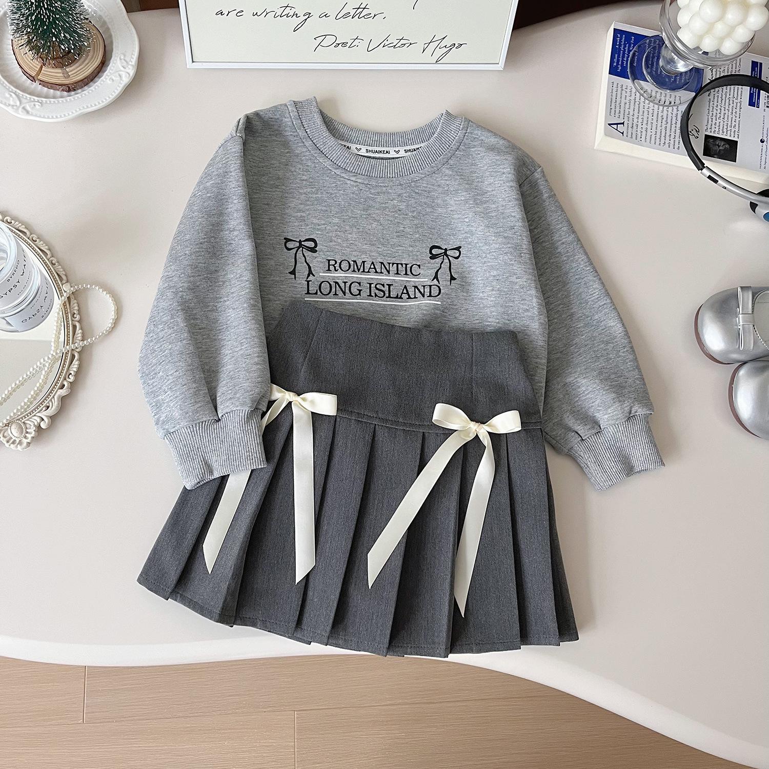 Traje de Sudadera para Niñas Estilo Coreano Otoño Ropa para Niños Lazo Casual Moda Lindo Traje de Falda para Bebé al por Mayor