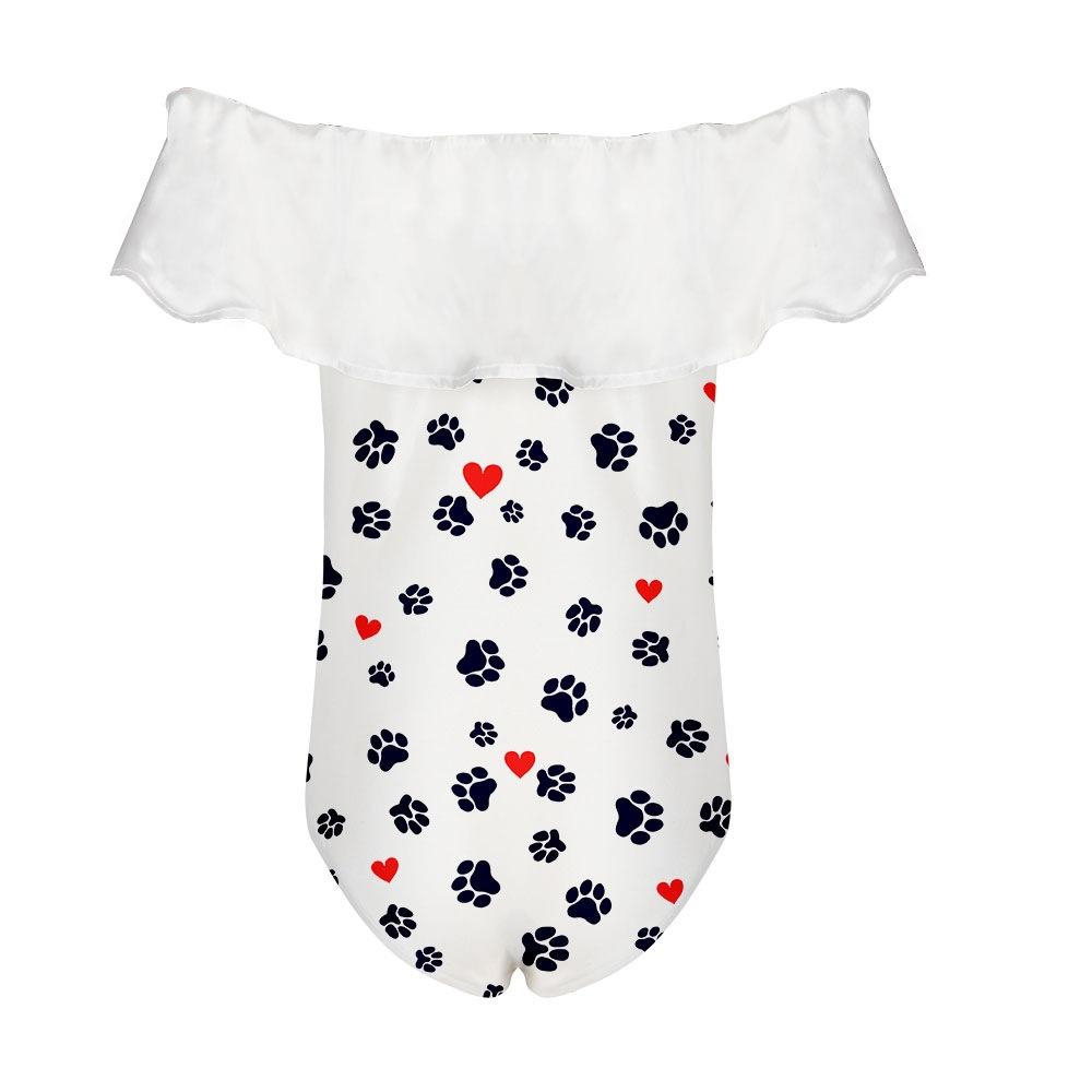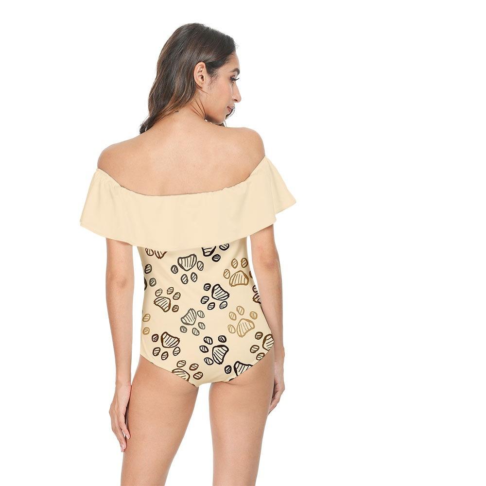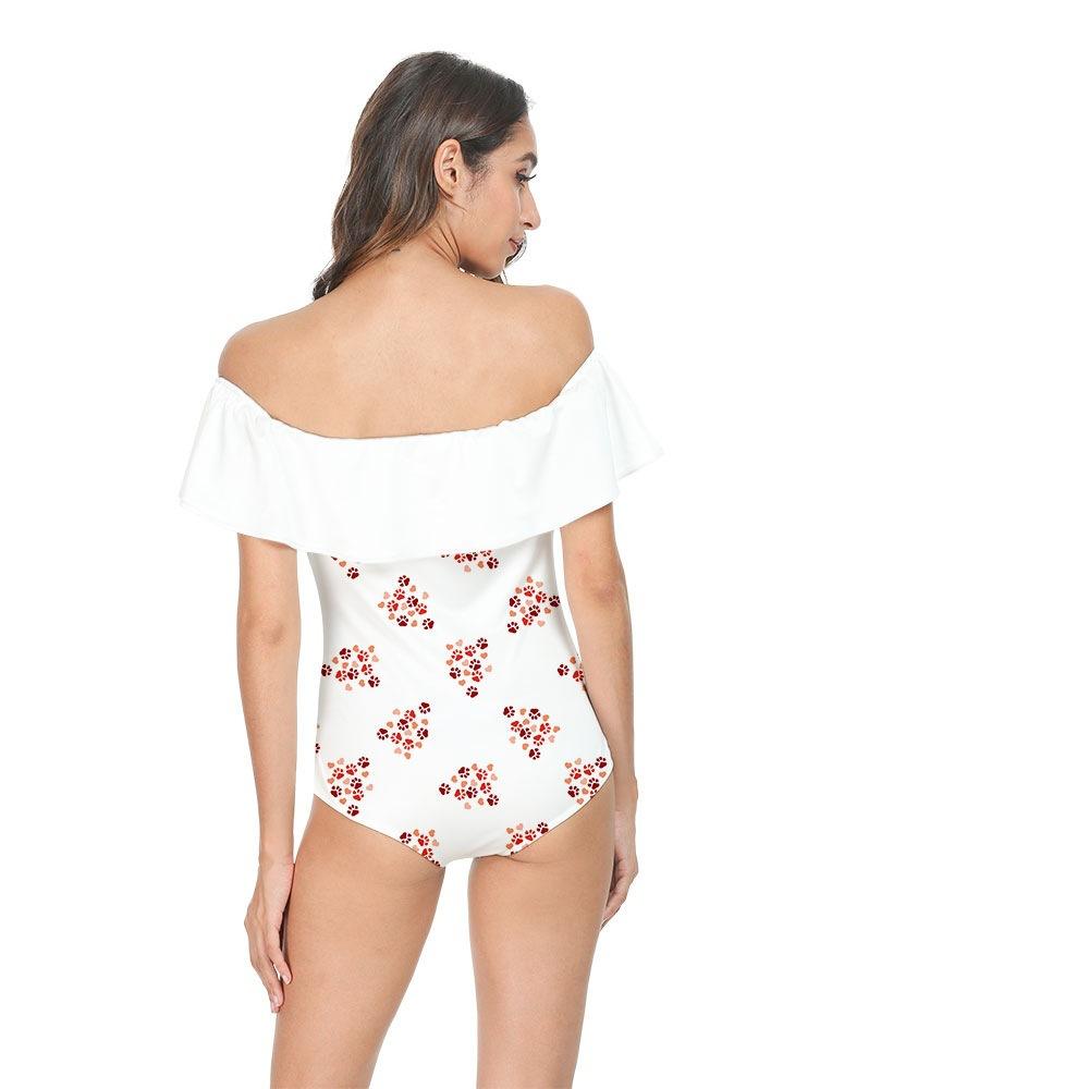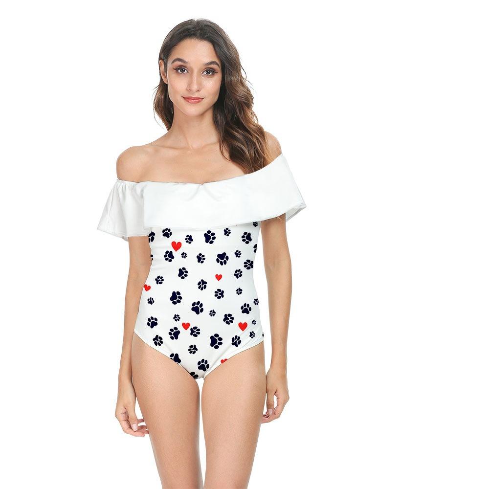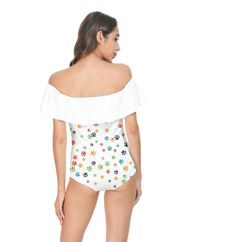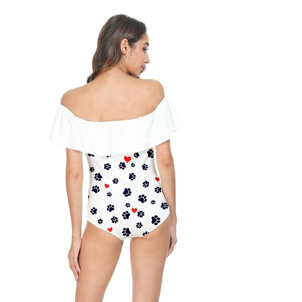 Traje de baño de una pieza sexy sin espalda con estampado de huellas de patas europeas y americanas, bikini con hombros descubiertos, transfronterizo de Amazon