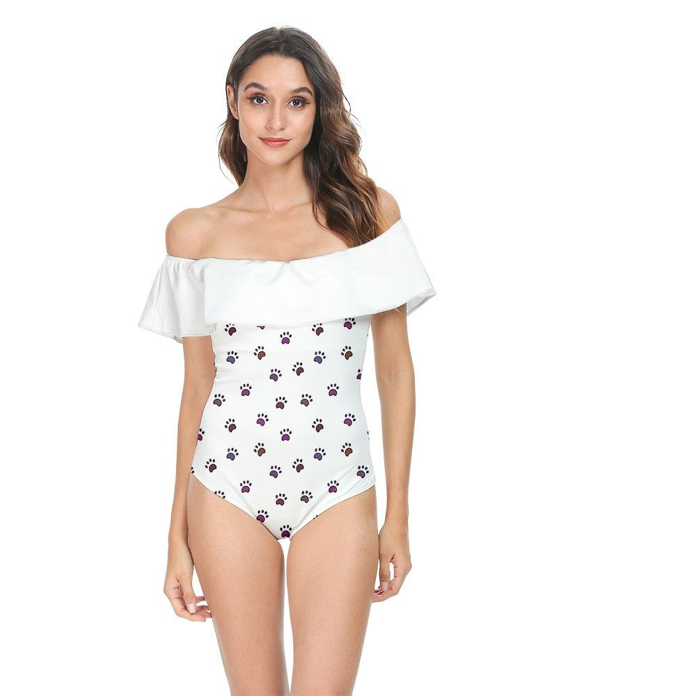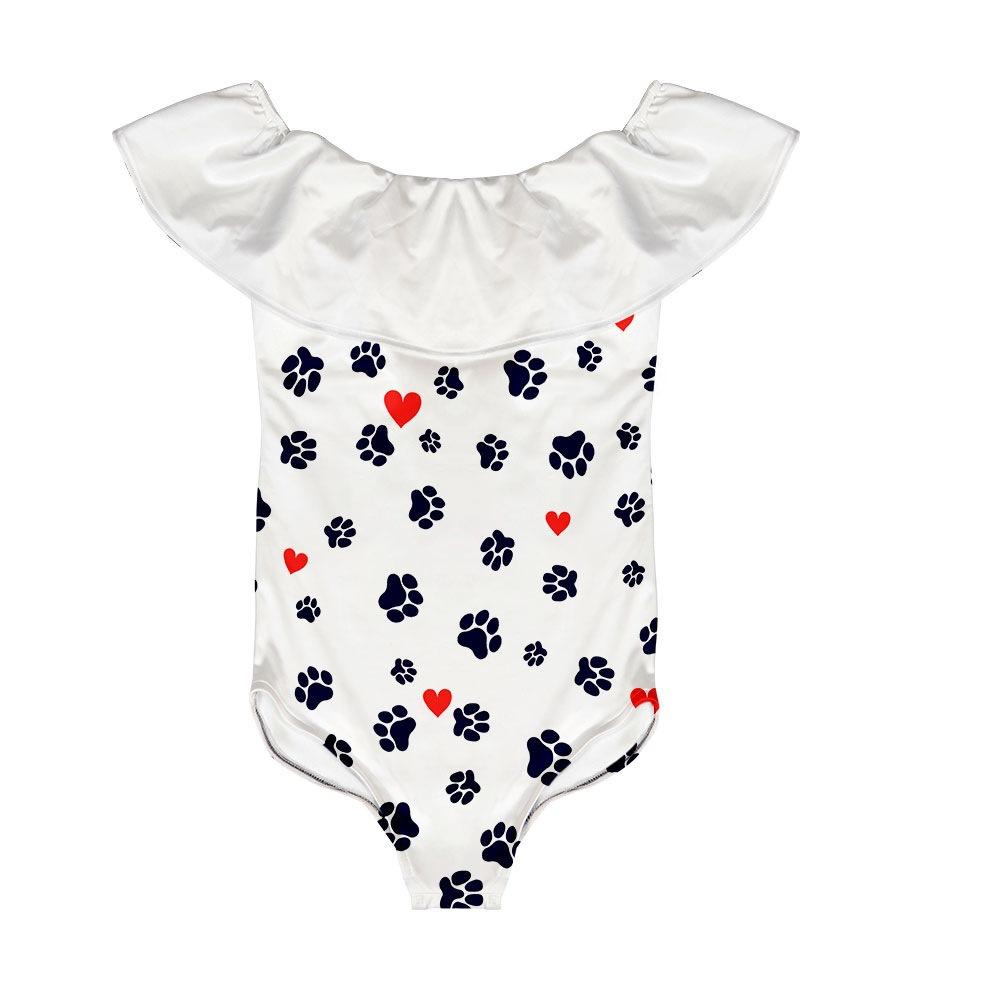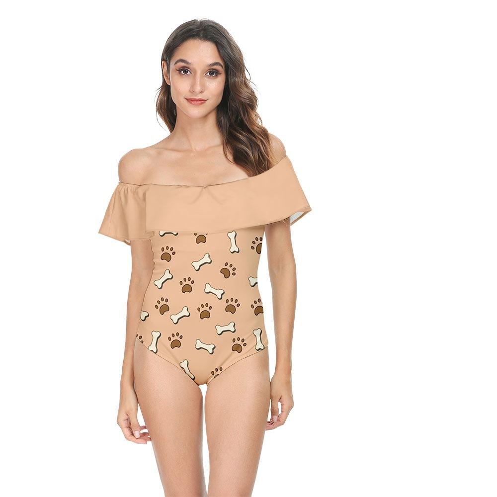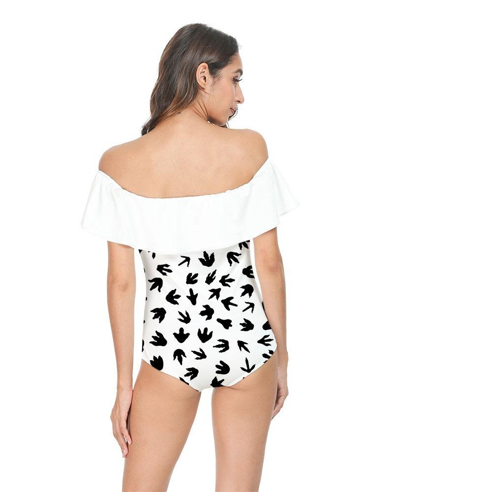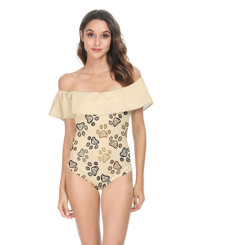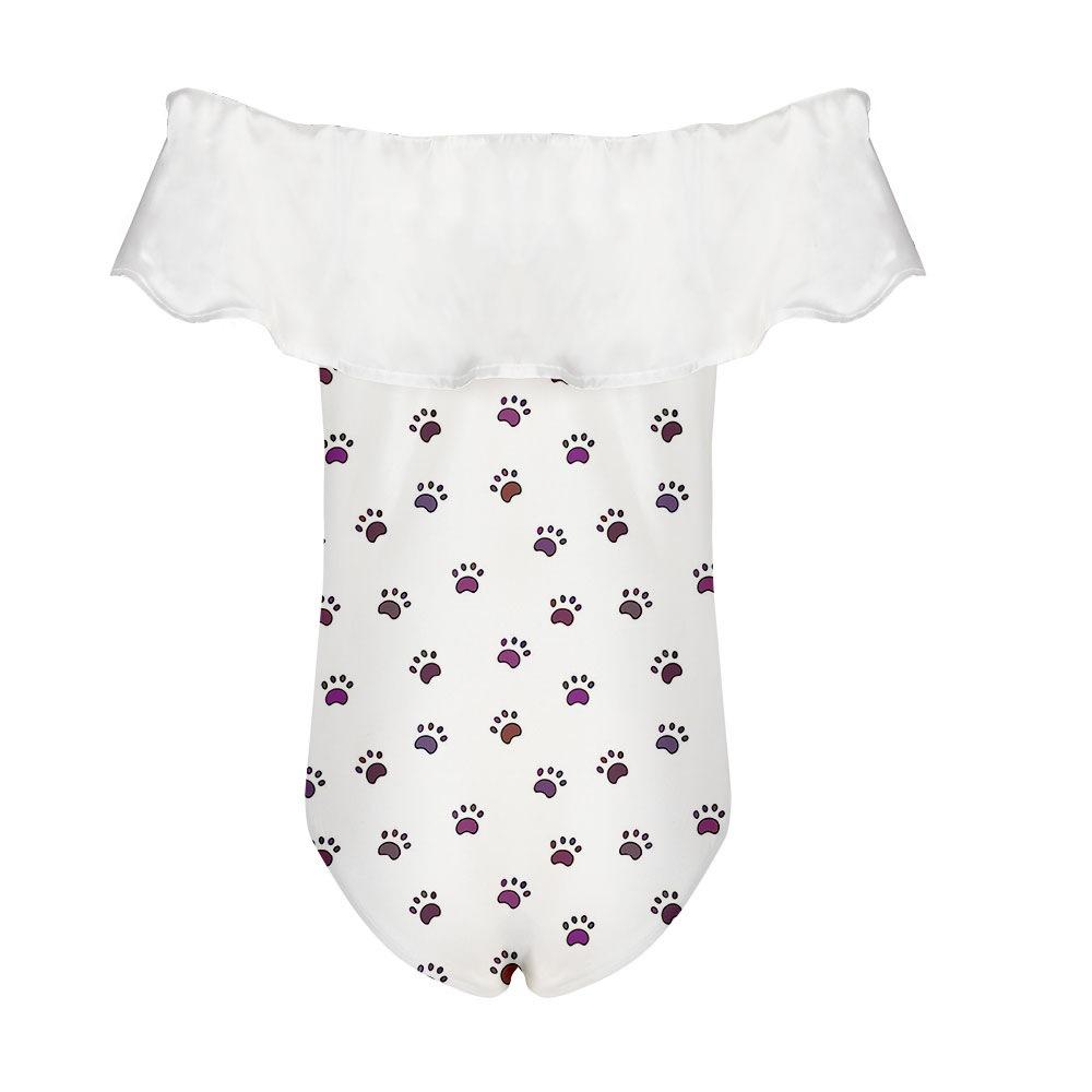 Traje de baño de una pieza sexy sin espalda con estampado de huellas de patas europeas y americanas, bikini con hombros descubiertos, transfronterizo de Amazon