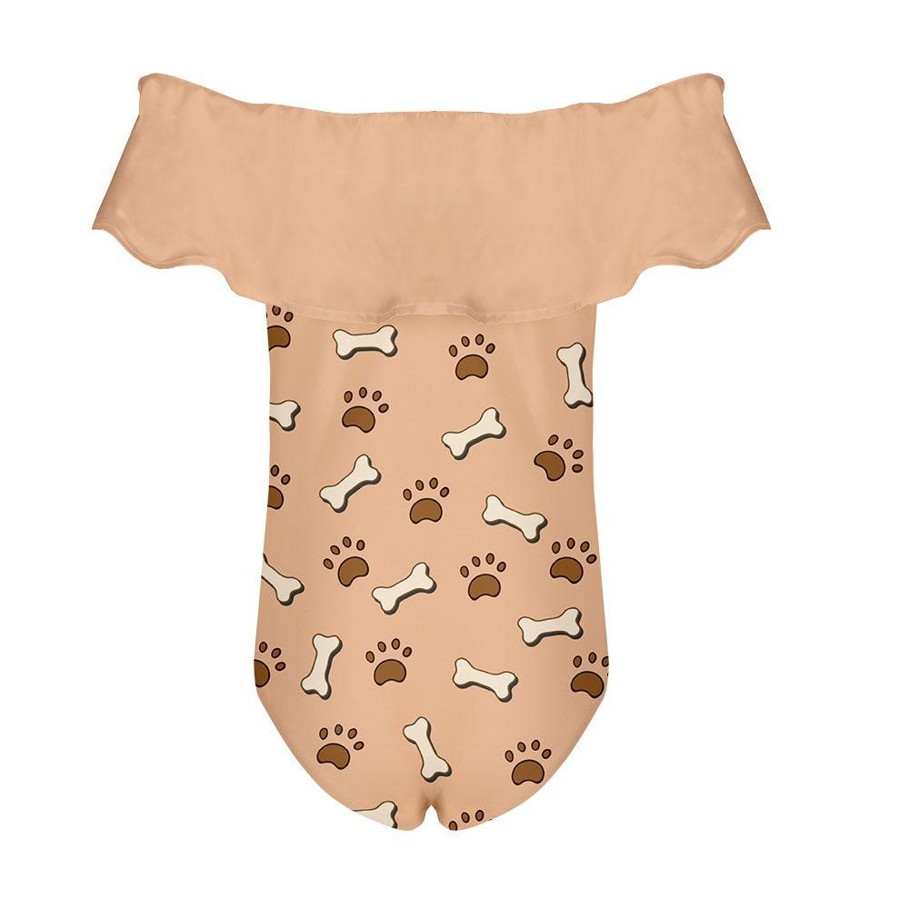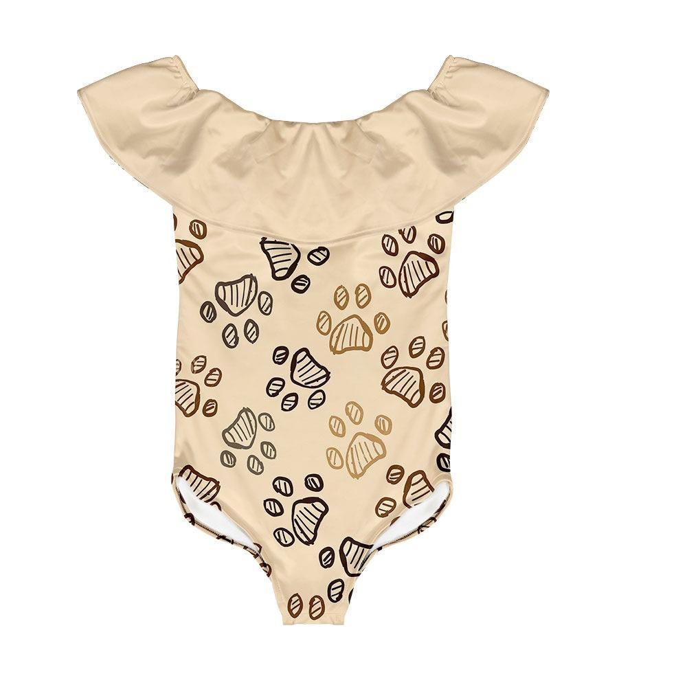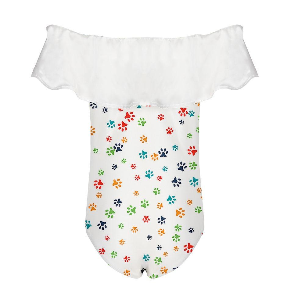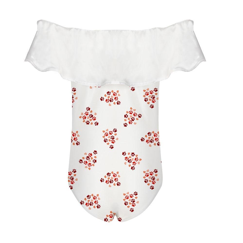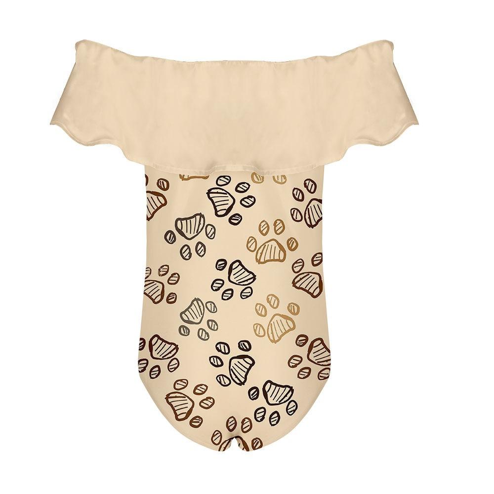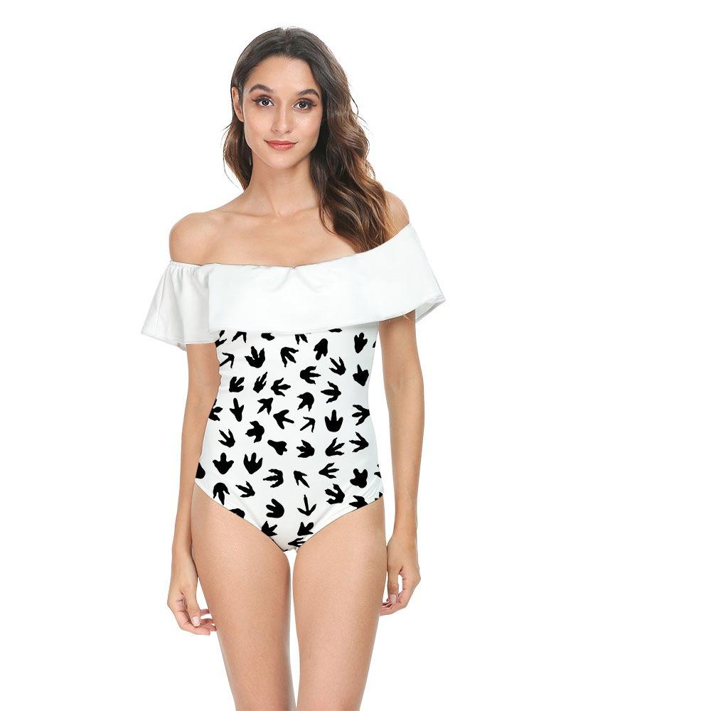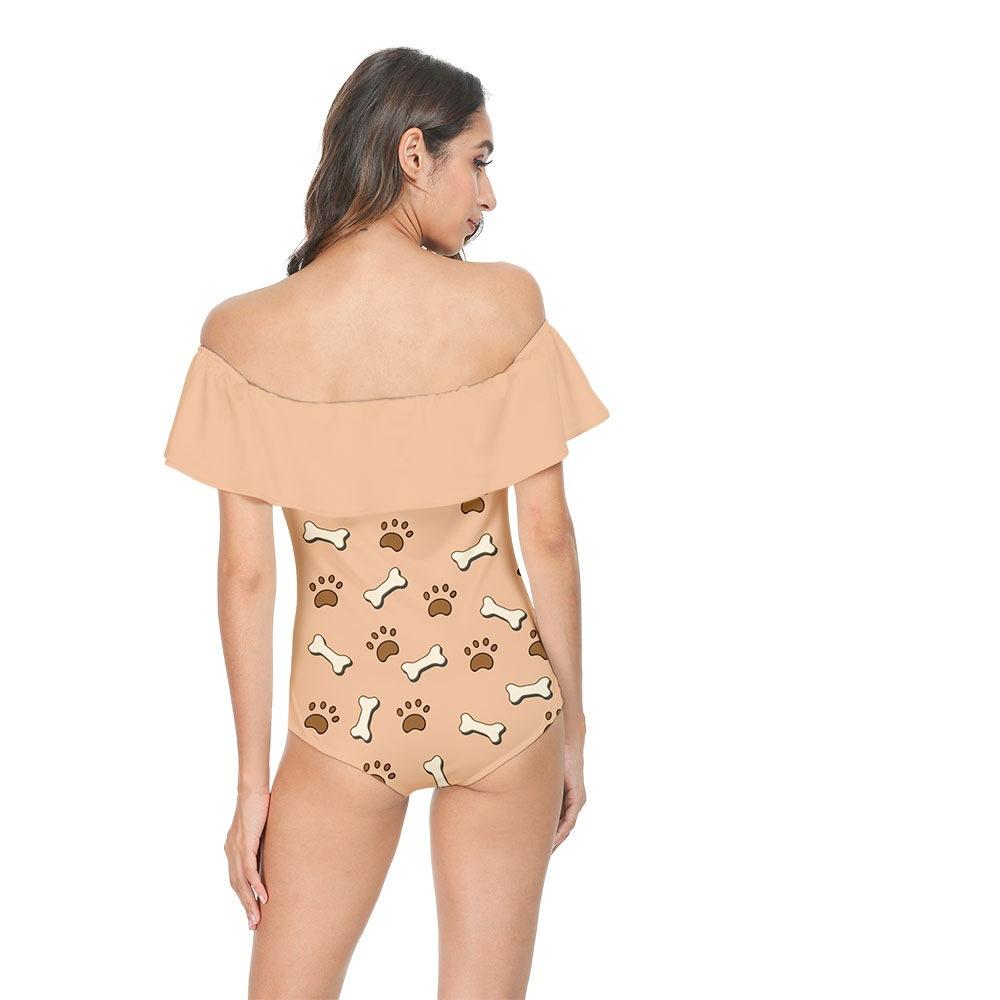 Traje de baño de una pieza sexy sin espalda con estampado de huellas de patas europeas y americanas, bikini con hombros descubiertos, transfronterizo de Amazon