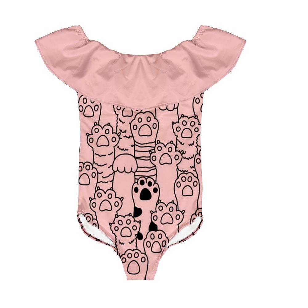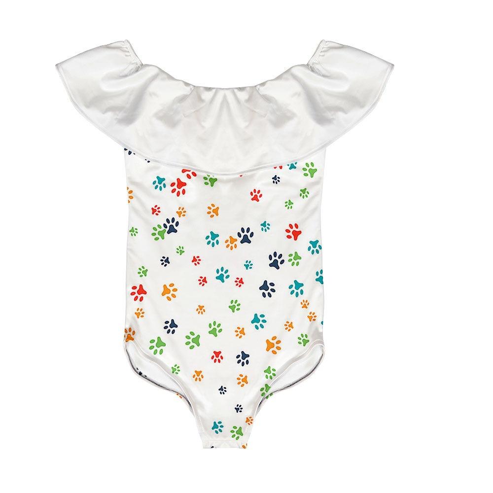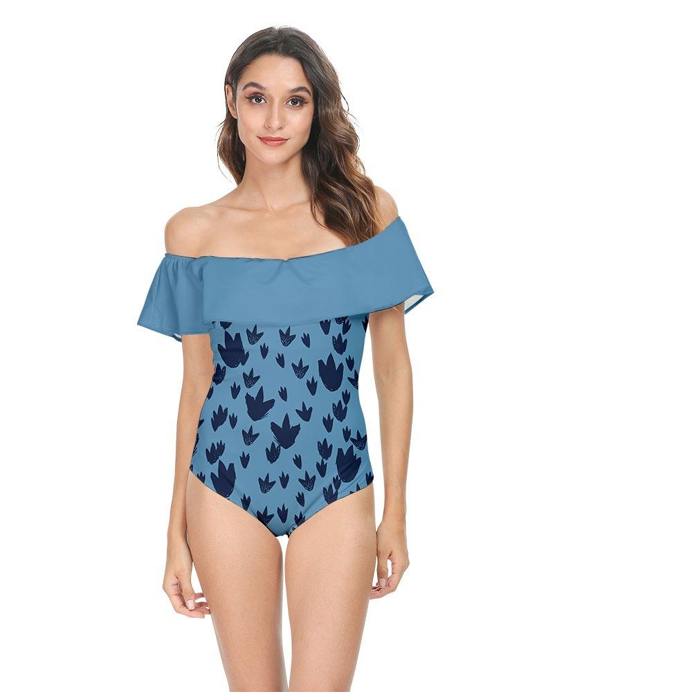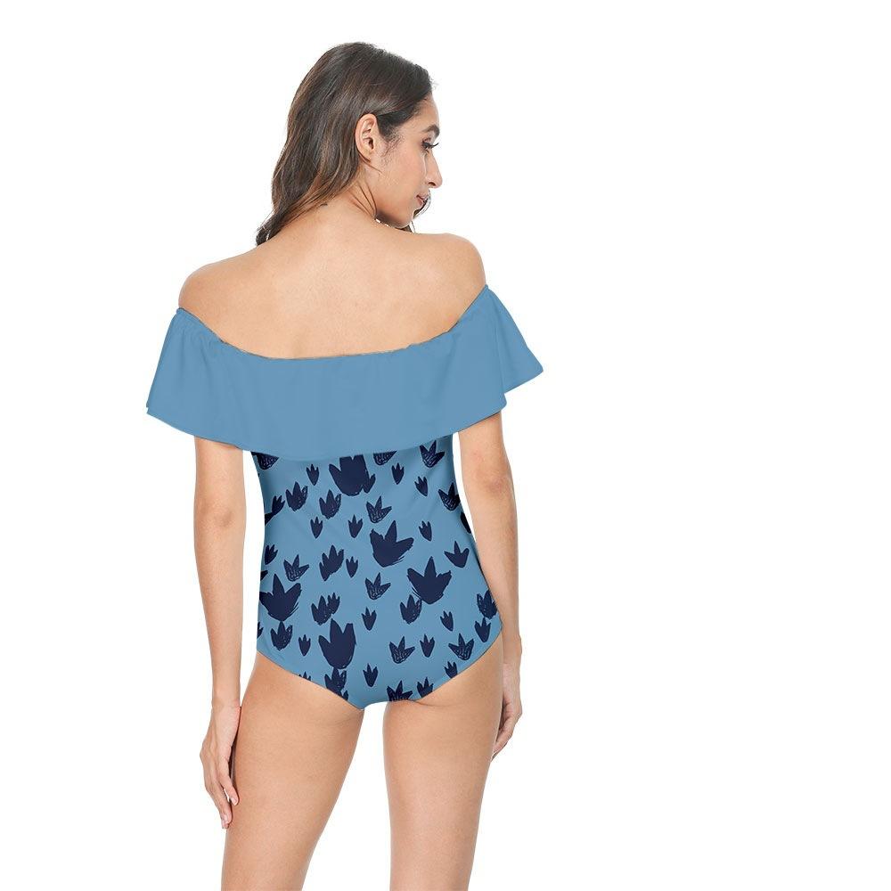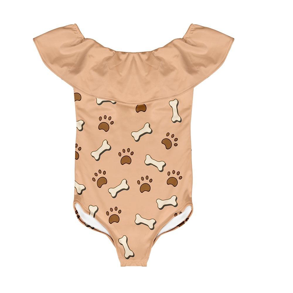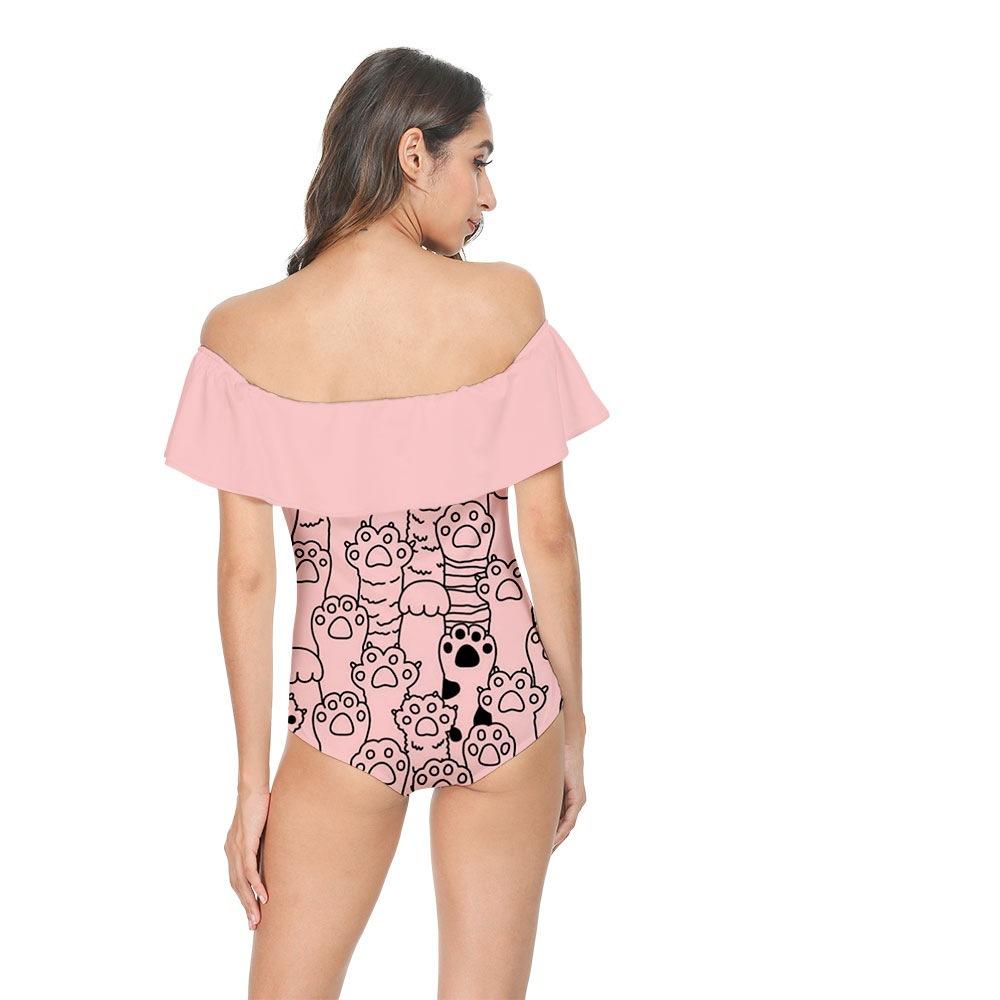Traje de baño de una pieza sexy sin espalda con estampado de huellas de patas europeas y americanas, bikini con hombros descubiertos, transfronterizo de Amazon