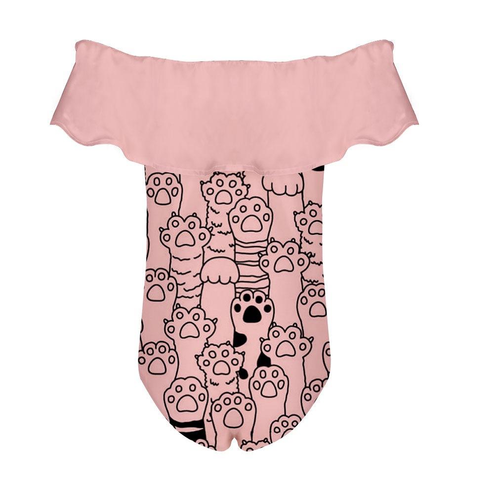 Compra Traje de baño de una pieza sexy sin espalda con estampado de huellas de patas europeas y americanas, bikini con hombros descubiertos, transfronterizo de Amazon al por mayor en Joom.pro