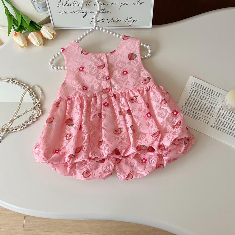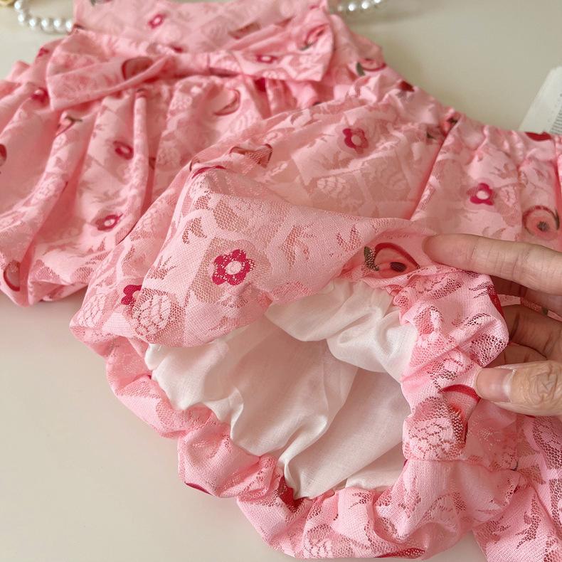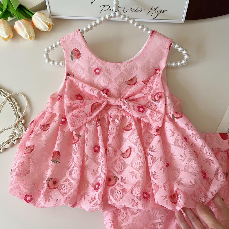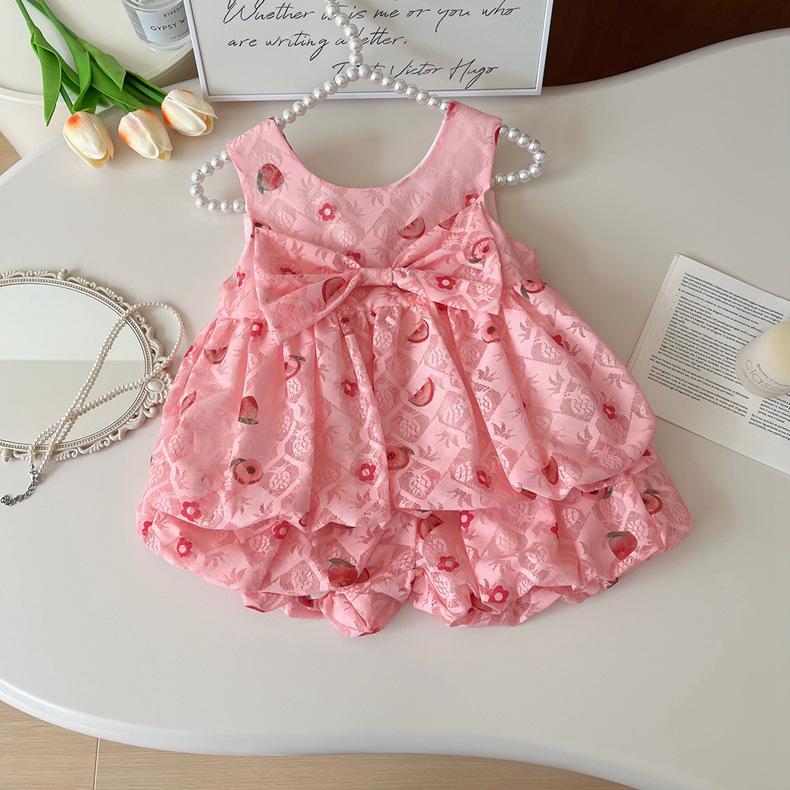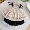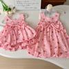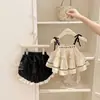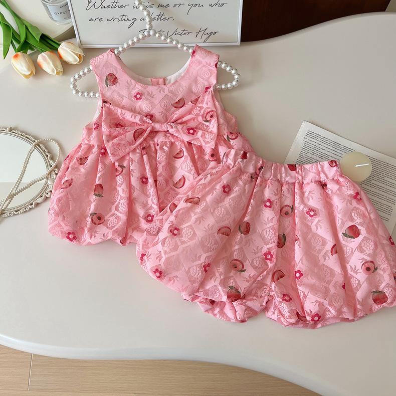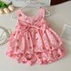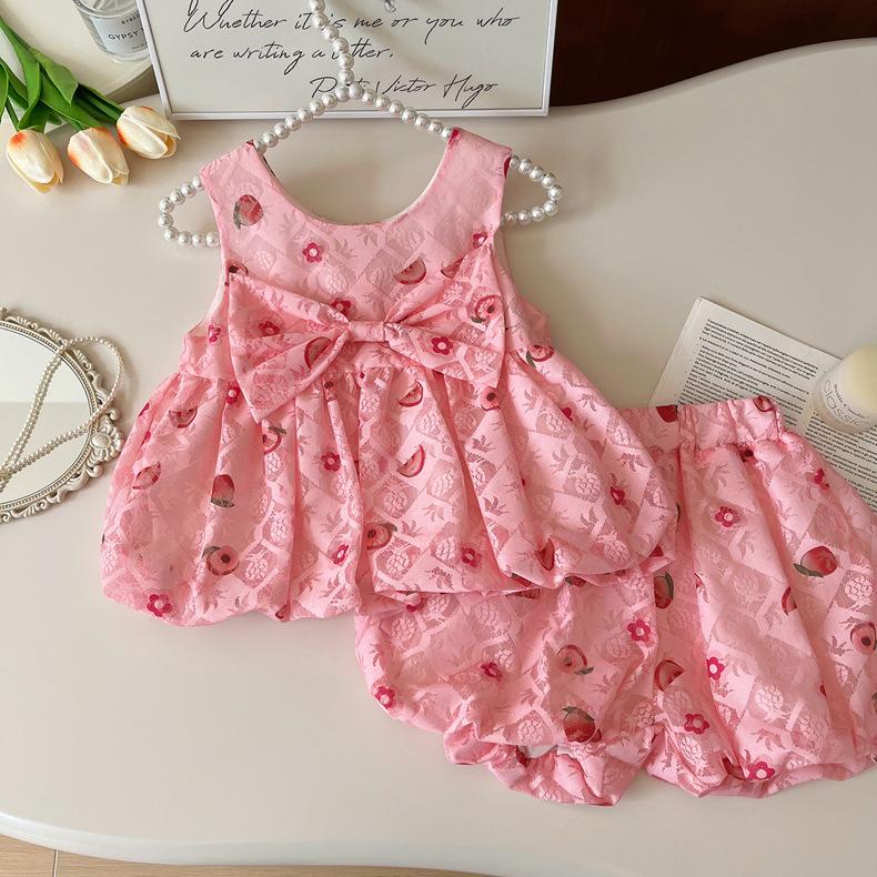 Traje sin mangas para bebé niña 2025 Verano Niña Estilo coreano Lindo Peto Lazo Estilo occidental Pantalones capullo de flor Conjunto de dos piezas