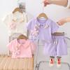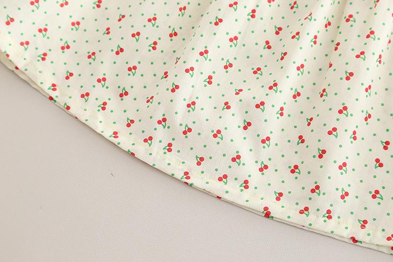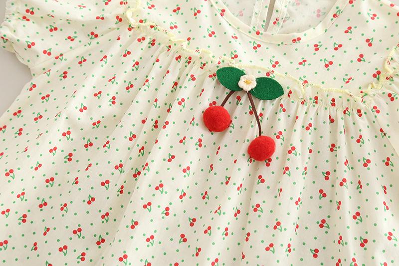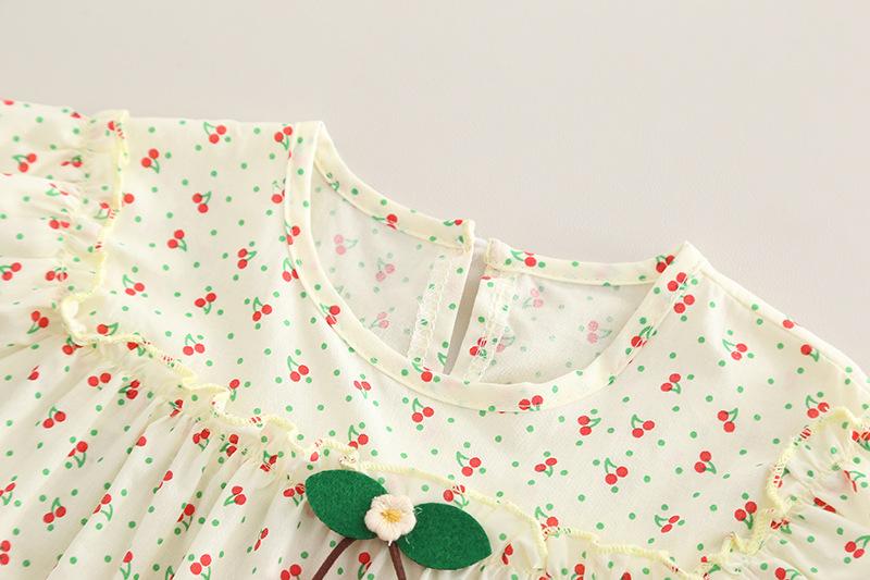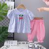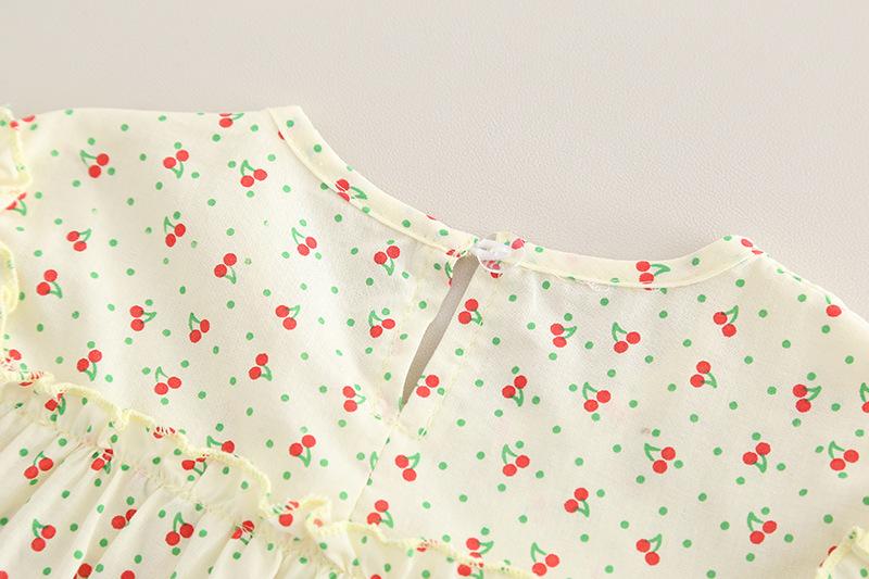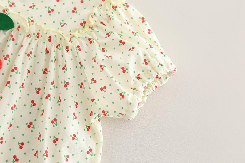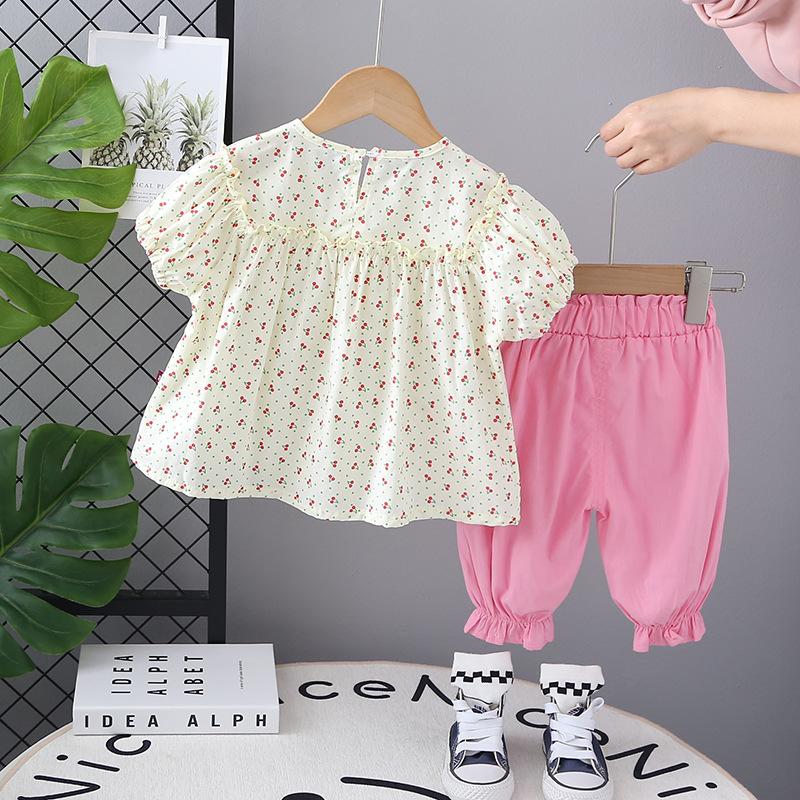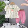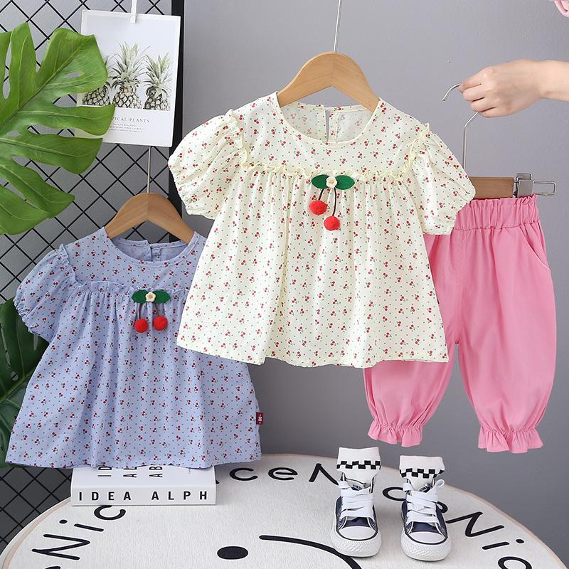 Traje de verano para niñas, ropa informal de dos piezas de manga corta con estampado de cerezas para niños, ropa de verano para bebés de una generación.