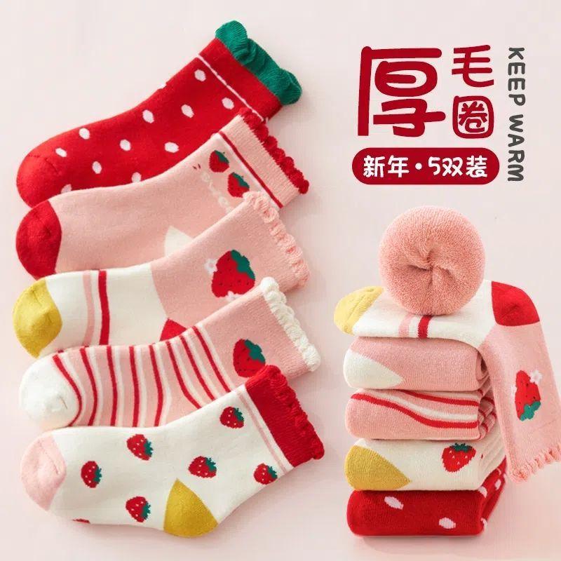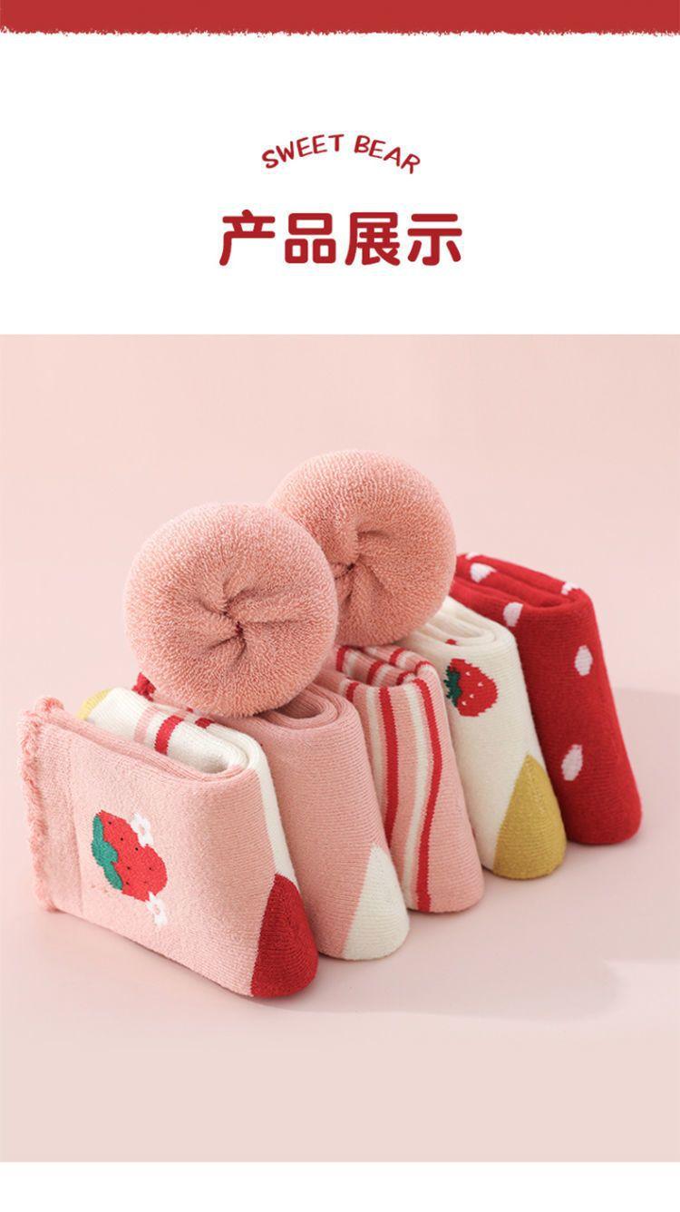 Calcetines de niña otoño e invierno calcetines de algodón calcetines para bebés y niños calcetines de niña gruesos con forro polar de rizo dulces de encaje calcetines de tubo medio