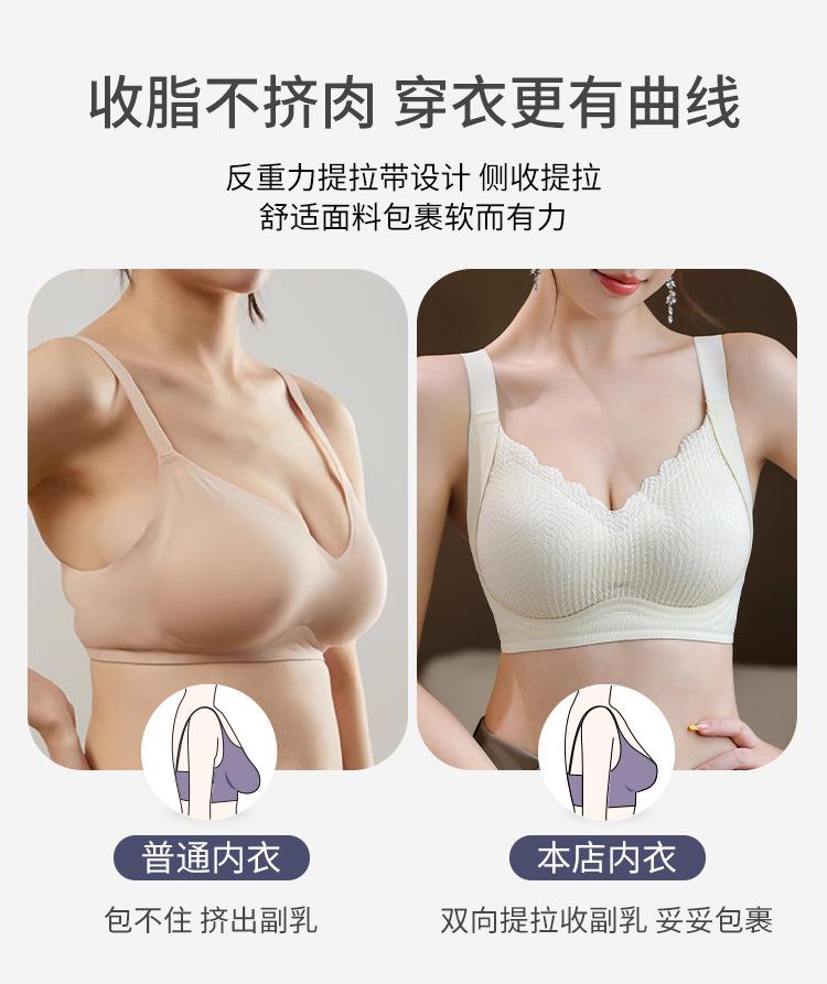 Ropa interior sin costuras para mujer, copa pequeña con realce, auxiliar para el busto, anti-flacidez, copa grande con expansión externa pequeña, brasier ajustable de laca
