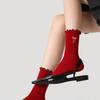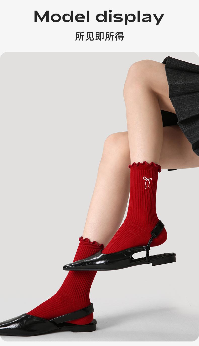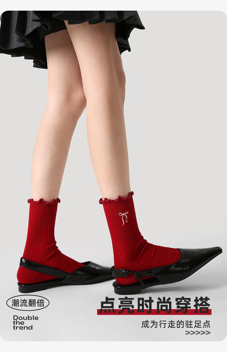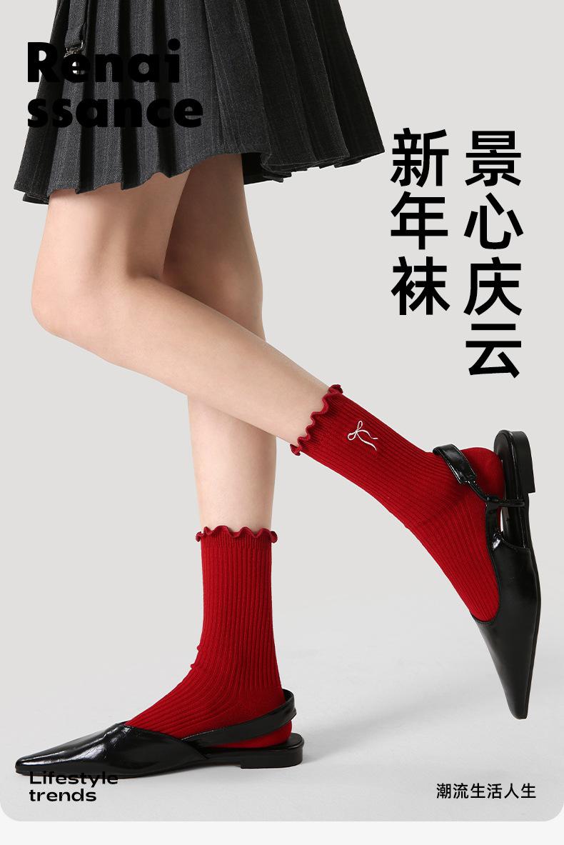 Calcetines de Lazo de Encaje Renacentista Calcetines de Media Caña para Mujer Primavera y Otoño Medias Bordadas Calcetines de Felpa de Moda