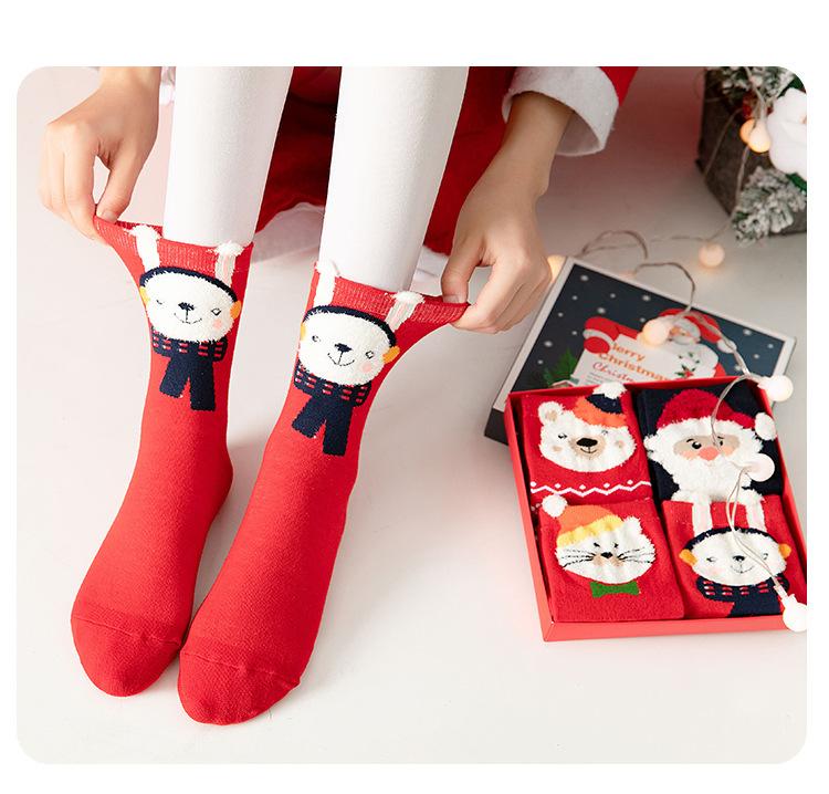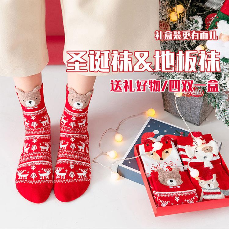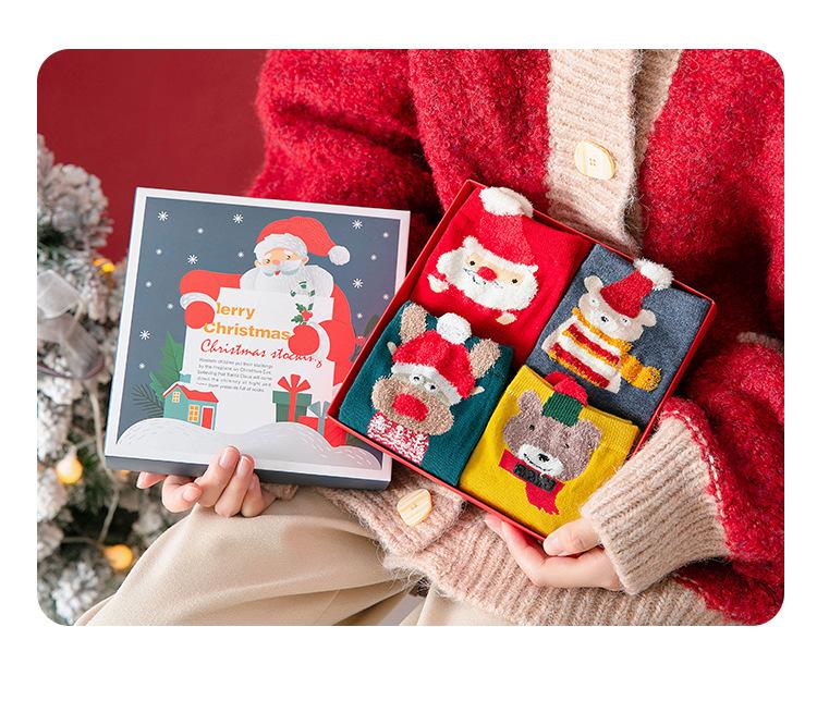 Calcetines Zhuji Calcetines Navideños Calcetines para Hombre y Mujer Calcetín Navideño Lindo de Dibujos Animados Caja de Regalo Caña Media para Pareja Comercio Exterior