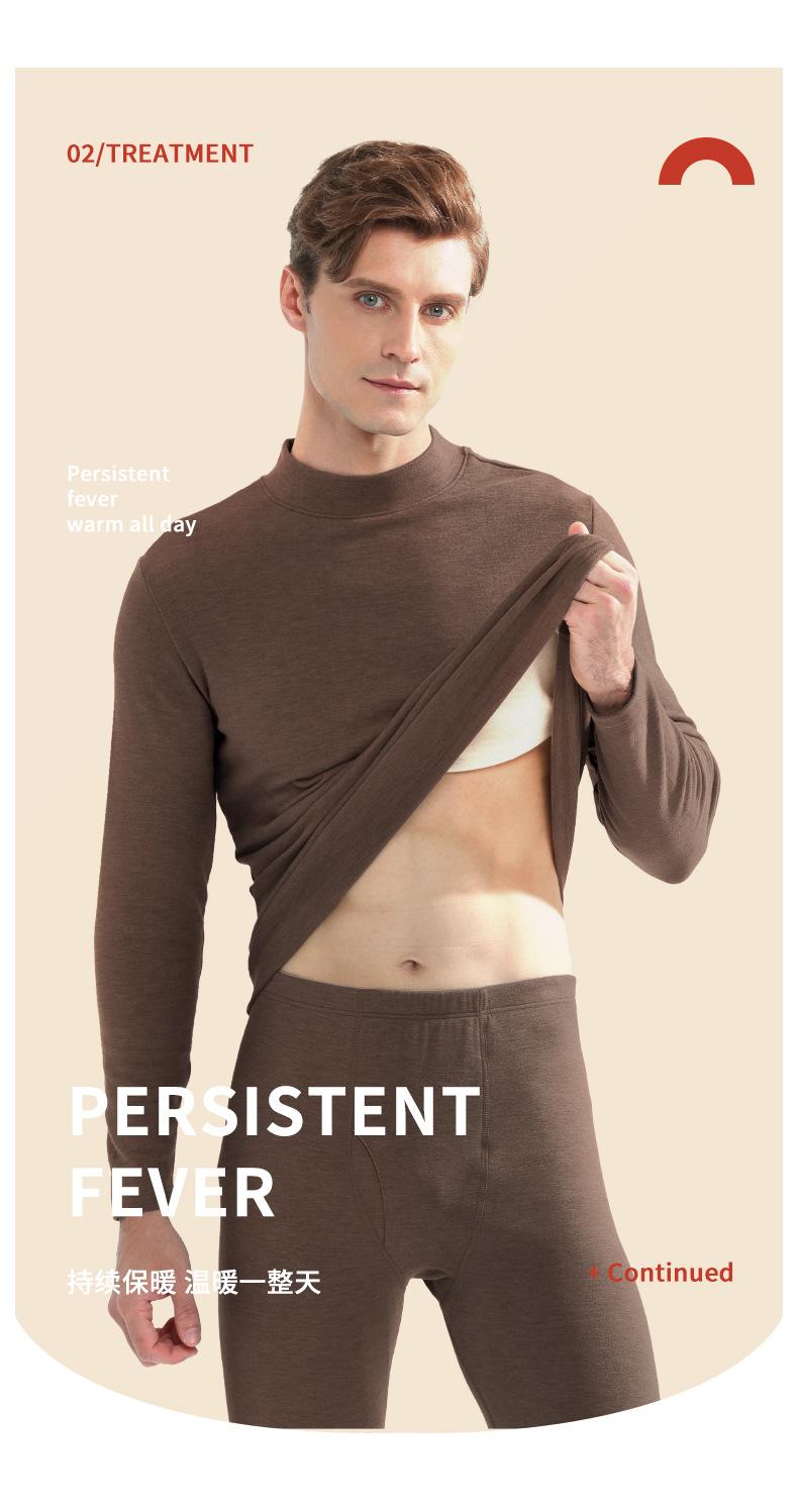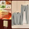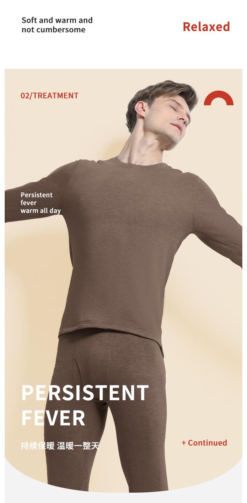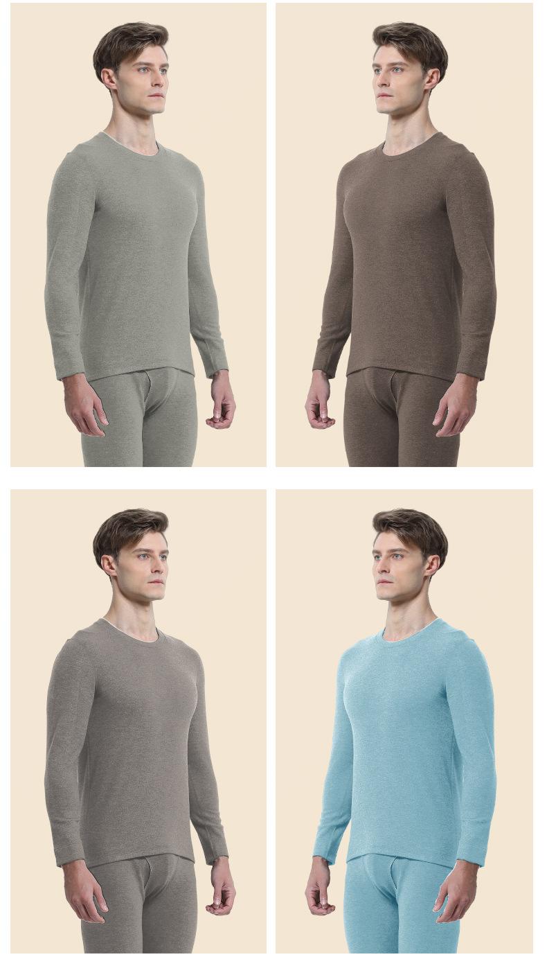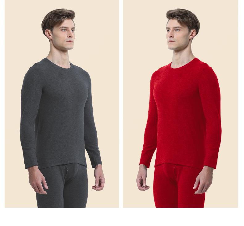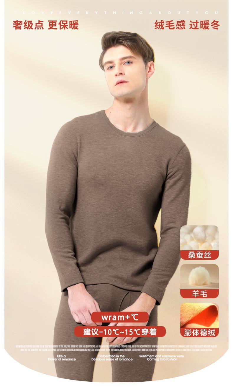 Ropa Interior Térmica Gruesa de Lana de Seda Transfronteriza Nueva para Otoño e Invierno para Hombre con Forro Polar, Capa Base, Conjunto de Top y Bottom de Cuello Redondo