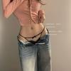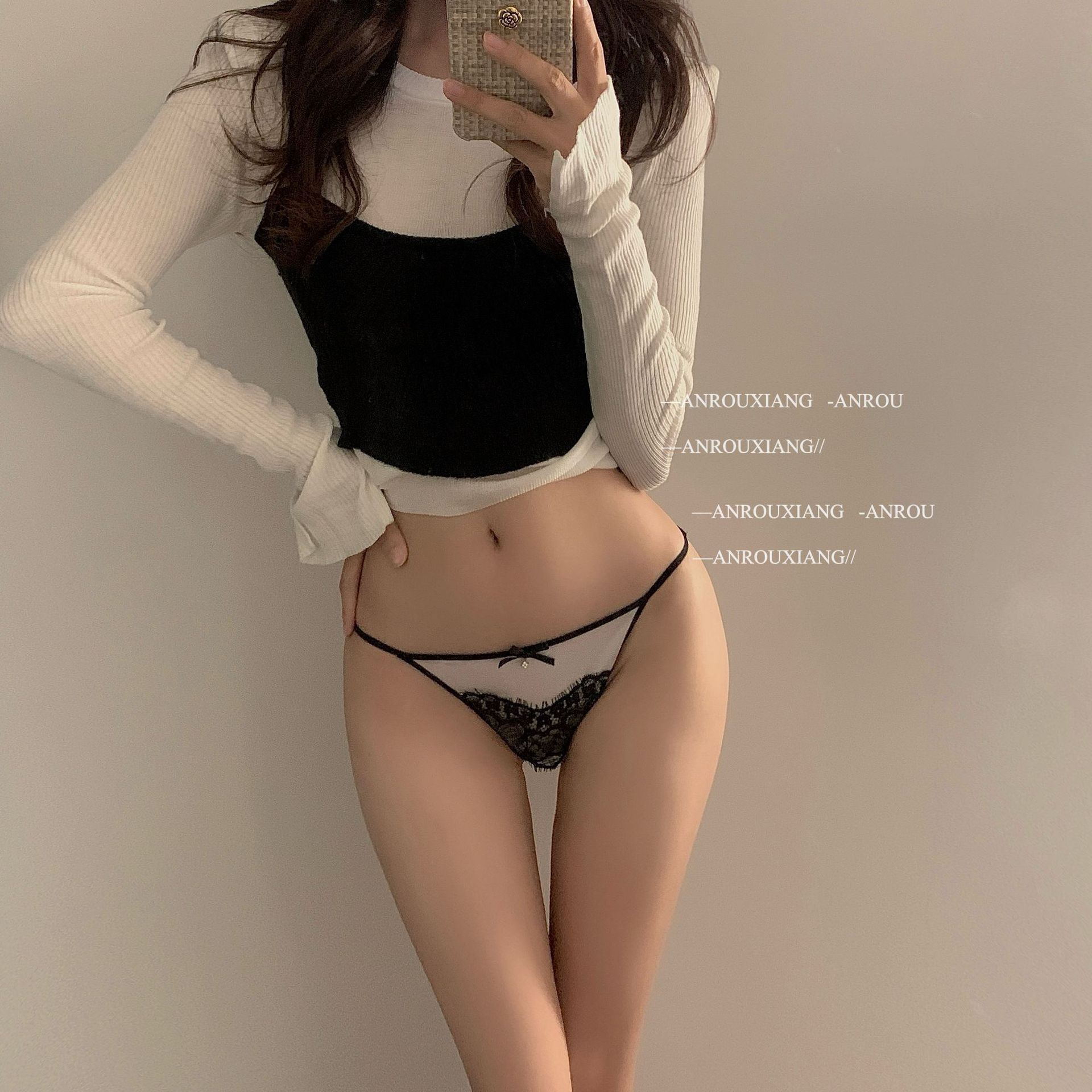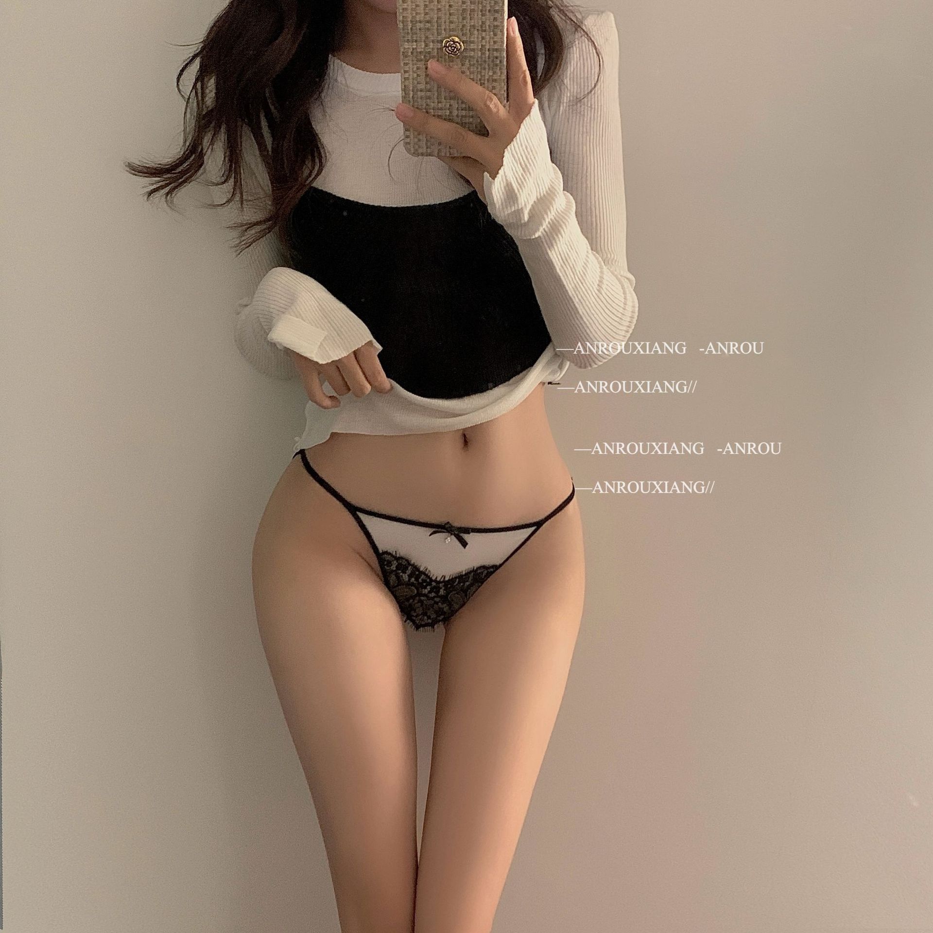 Ropa Interior de Encaje Puro para Mujer Verano Delgada Lazo de Amor Abertura Alta Transparente Sexy Cintura Baja Calzones de Niña