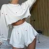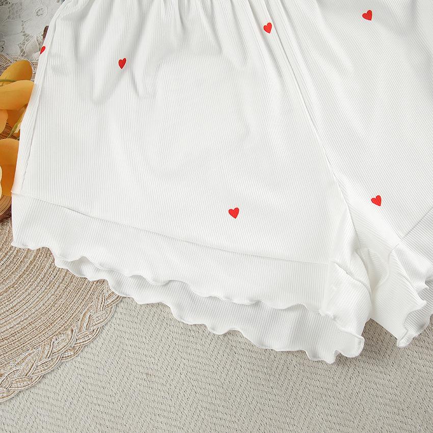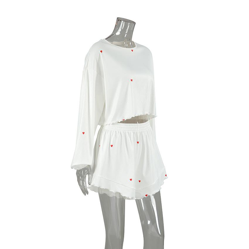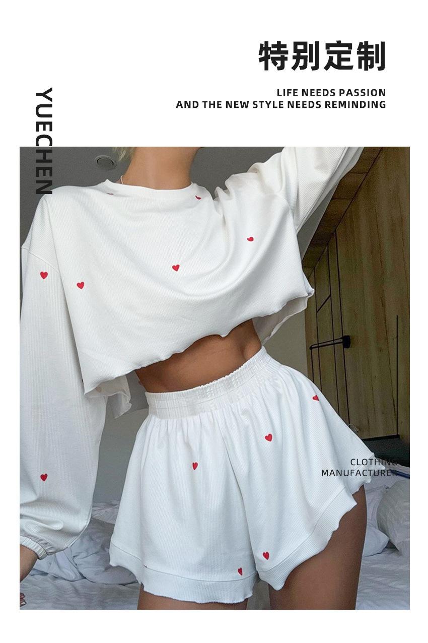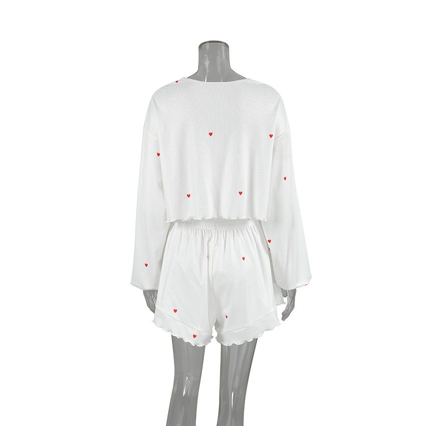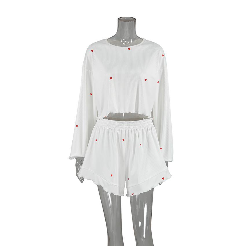 Europa y Estados Unidos invierno holgado cómodo amor hoyo estampado manga larga shorts pijama dos piezas transfronterizo ropa para el hogar al por mayor