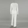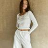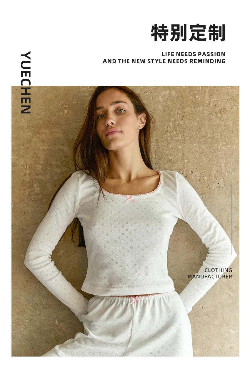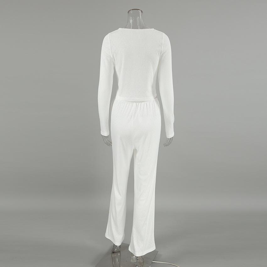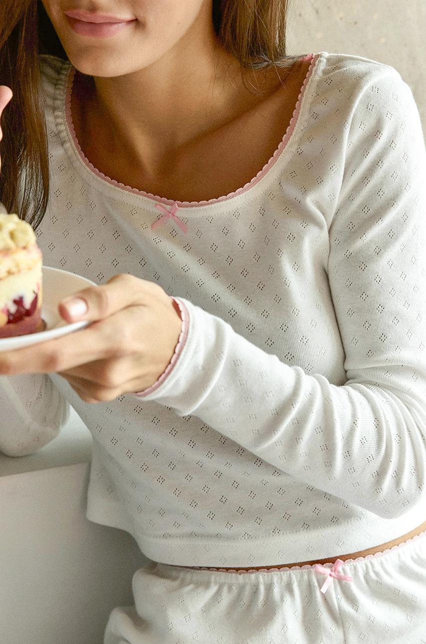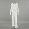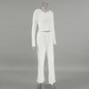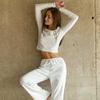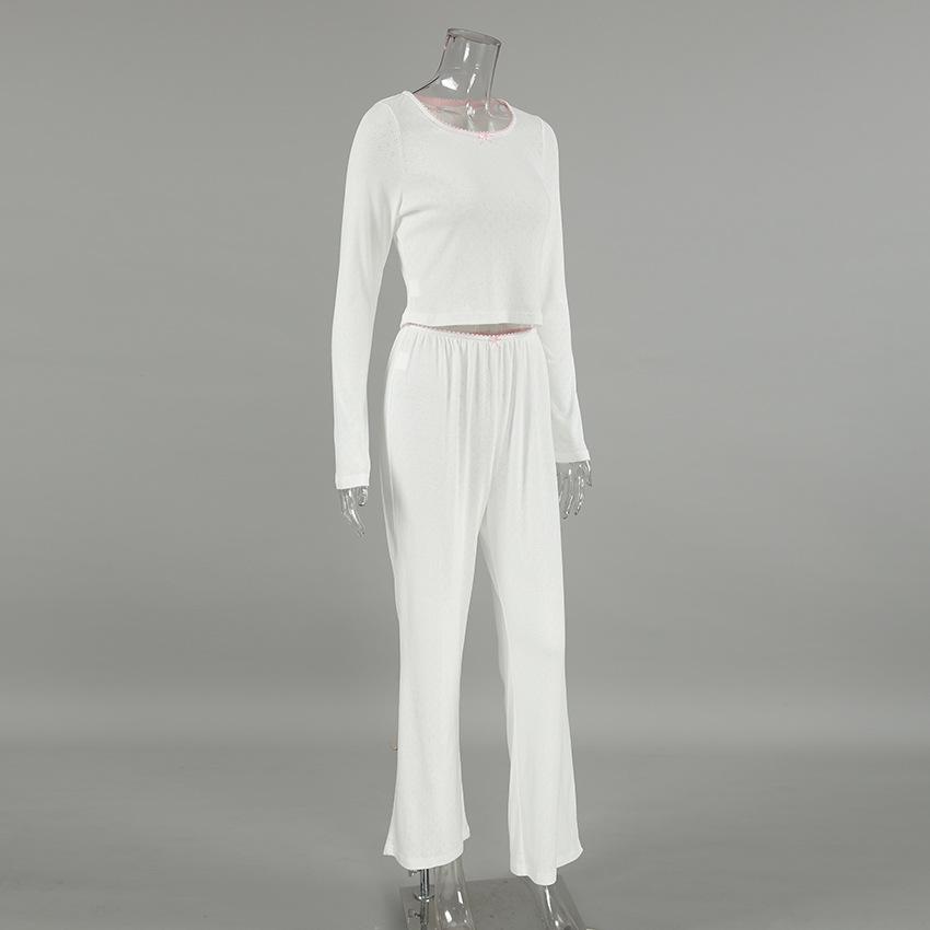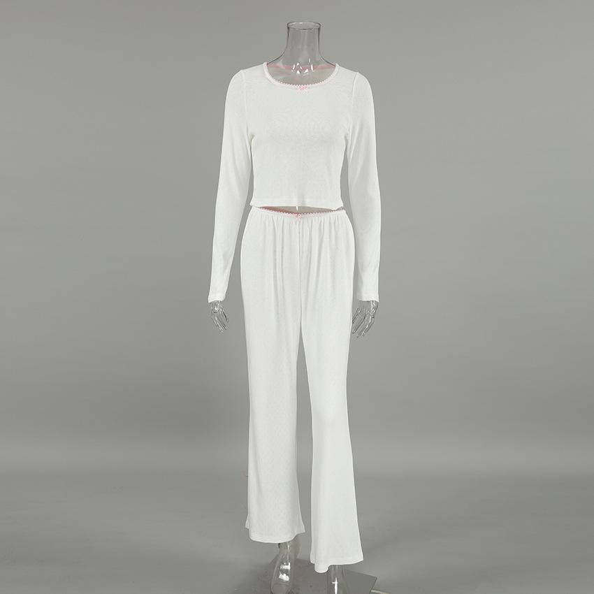 Pijama de dos piezas de cuello redondo de punto jacquard blanco de invierno europeo y americano 2024, pantalones transpirables de manga larga, ropa de hogar para mujer