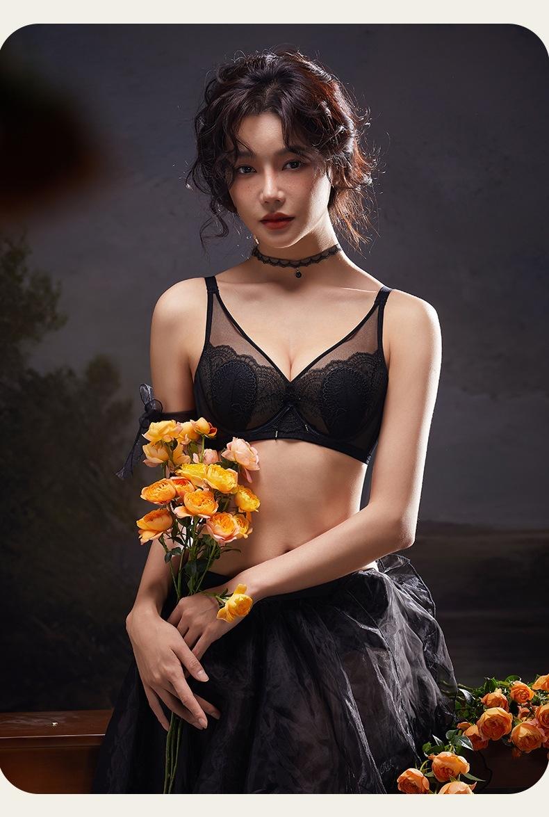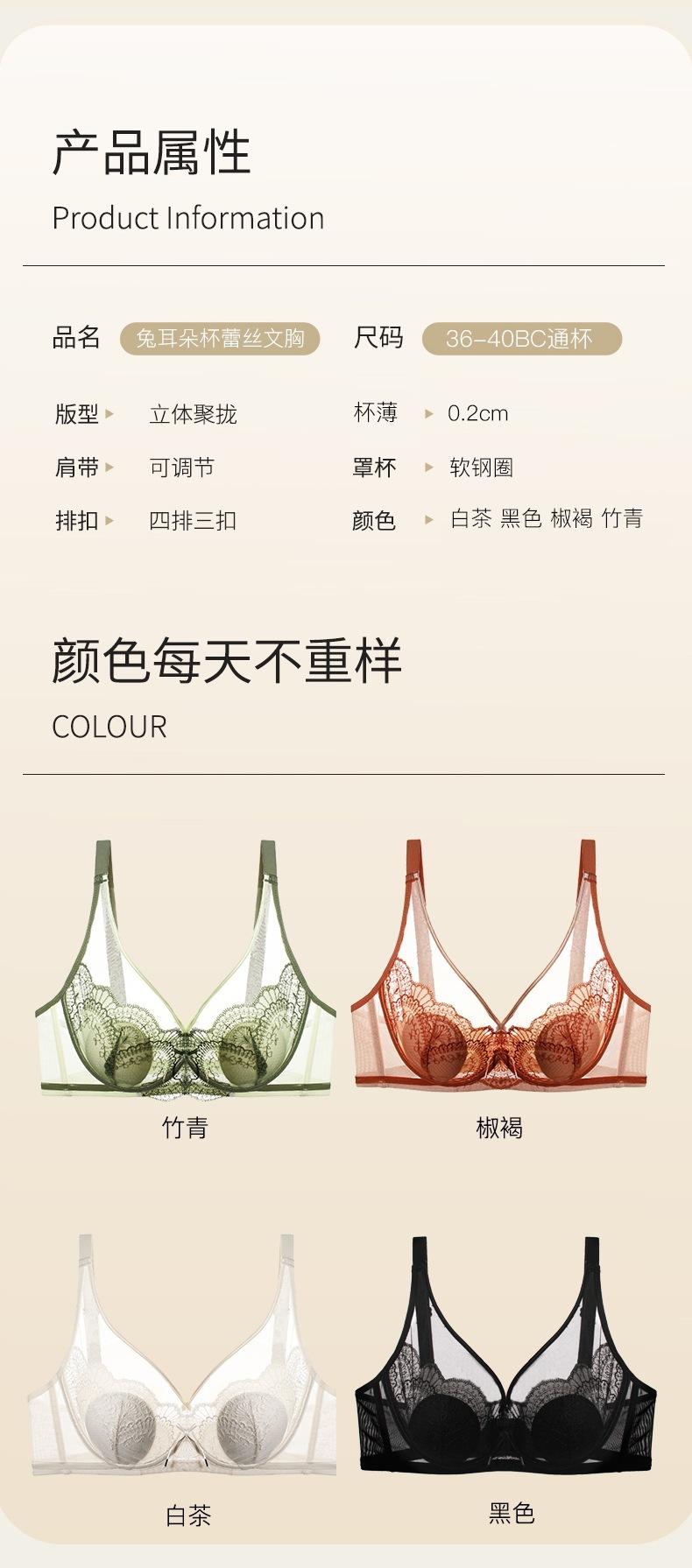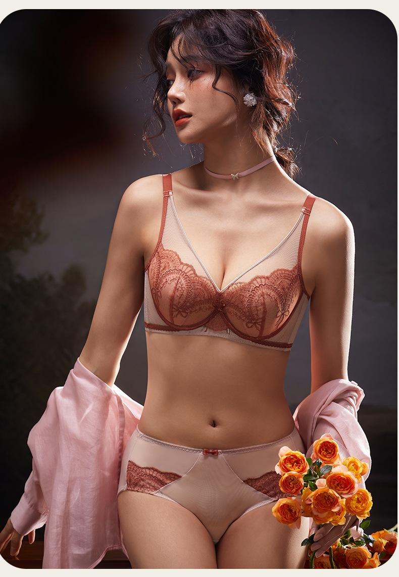 Ropa interior sexy de encaje puro para mujer, sujetador ajustable, push-up, fino, de pecho grande y pequeño, talla 8793