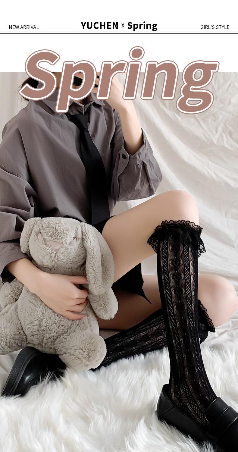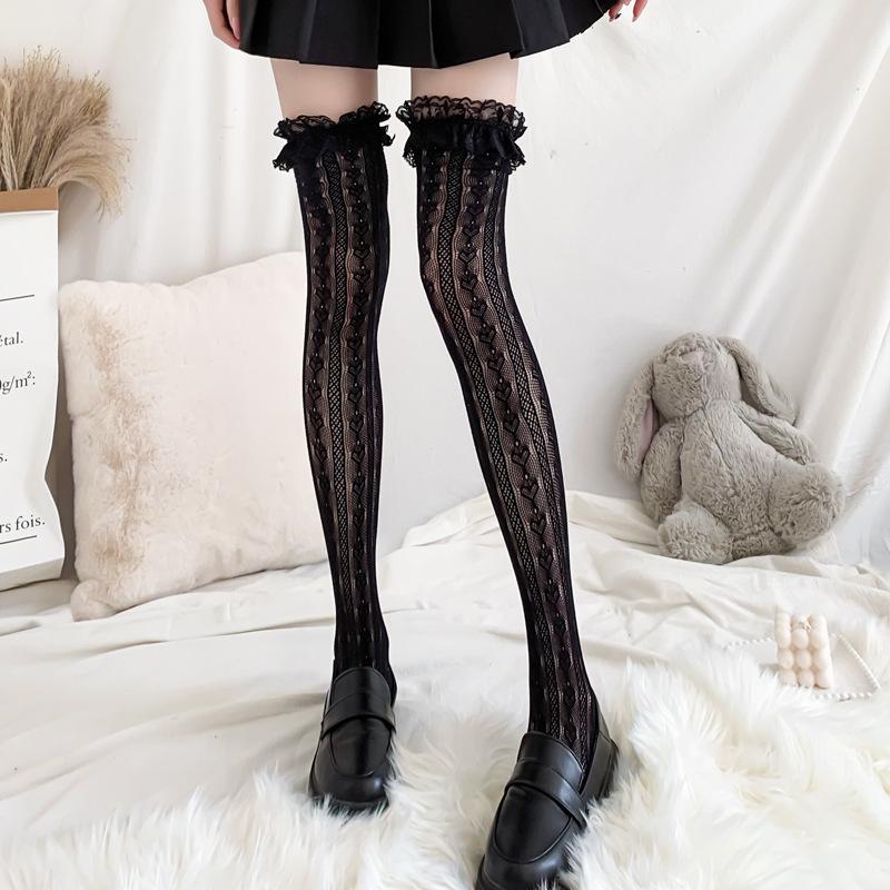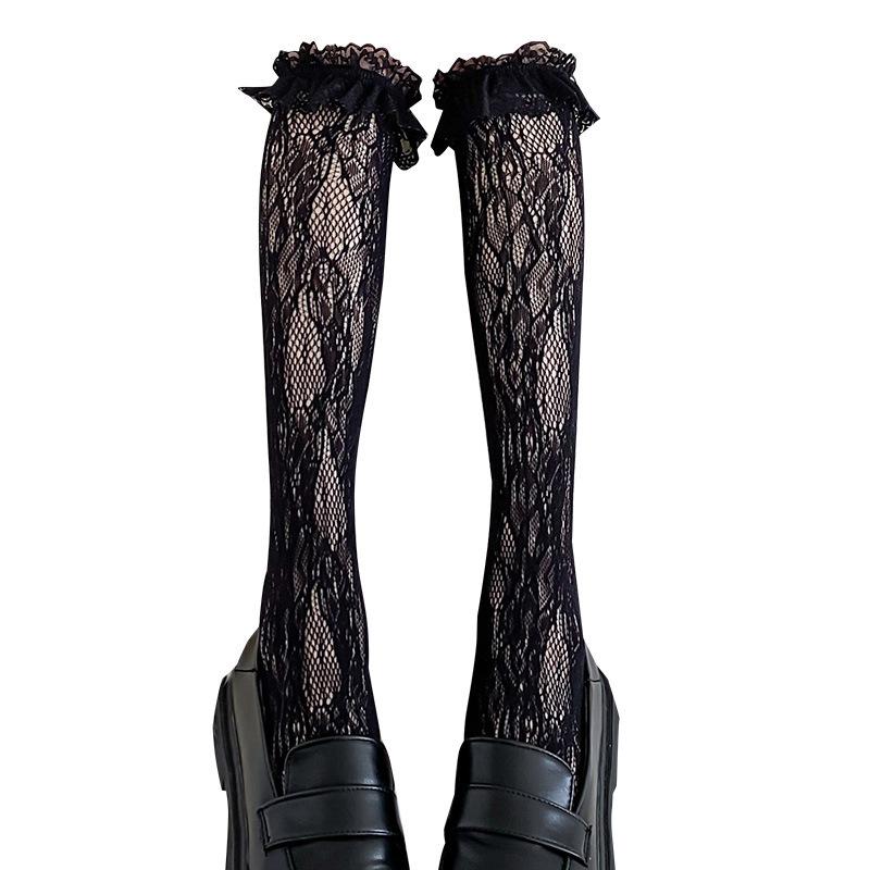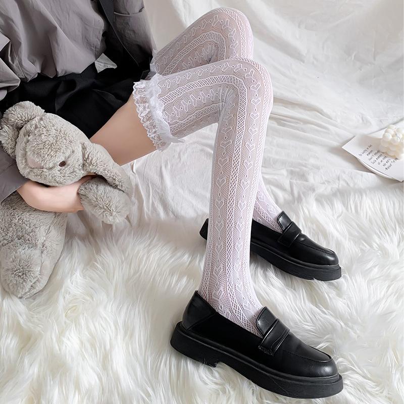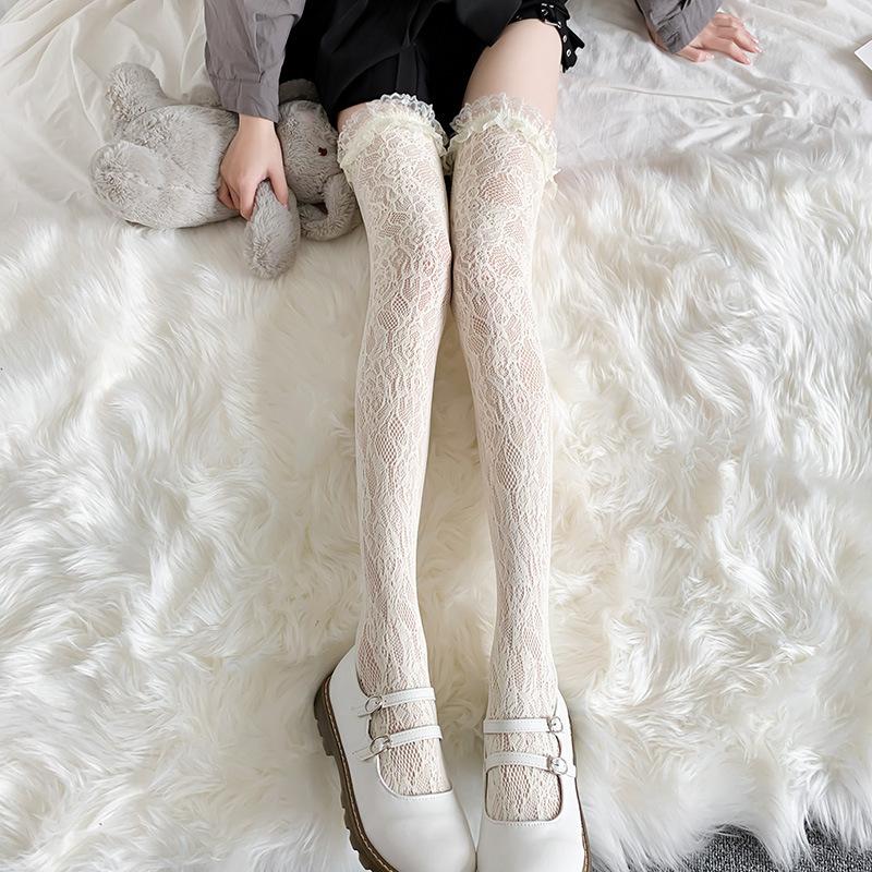 Medias JK Lolita Encaje Encaje Calcetines Cubanos Verano Lindas Favorecedoras de la Figura Largas Hasta la Rodilla Sobre la Rodilla