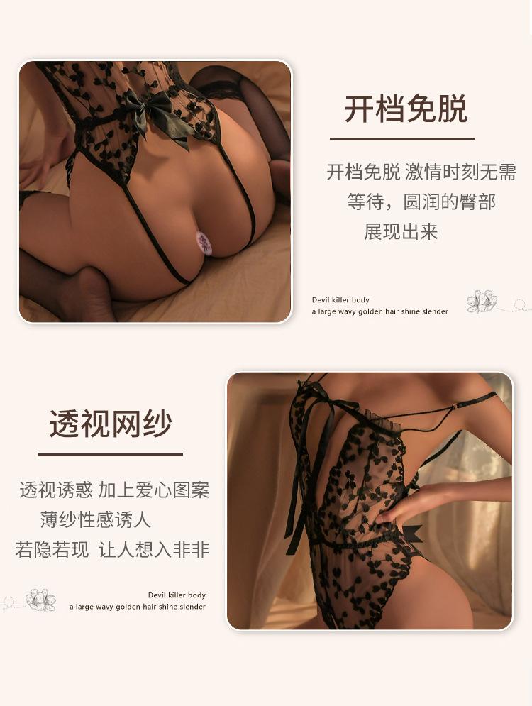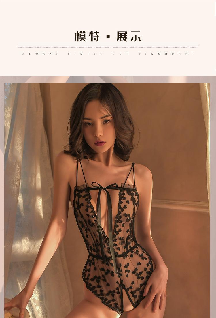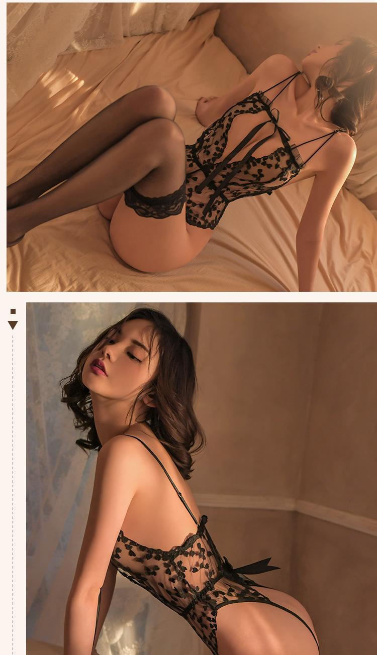 Lencería sexy seductora y nueva, uniforme tentador, pijama de una pieza de encaje transparente, 1071