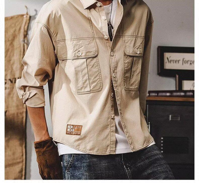Camisa de manga larga para hombre, informal, holgada, de invierno, otoño e invierno 2023, de marca de moda, de algodón puro, sin planchado.