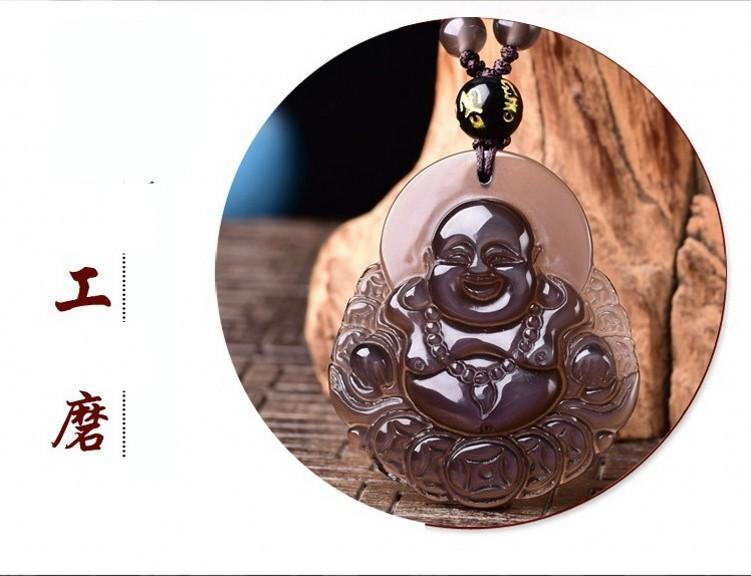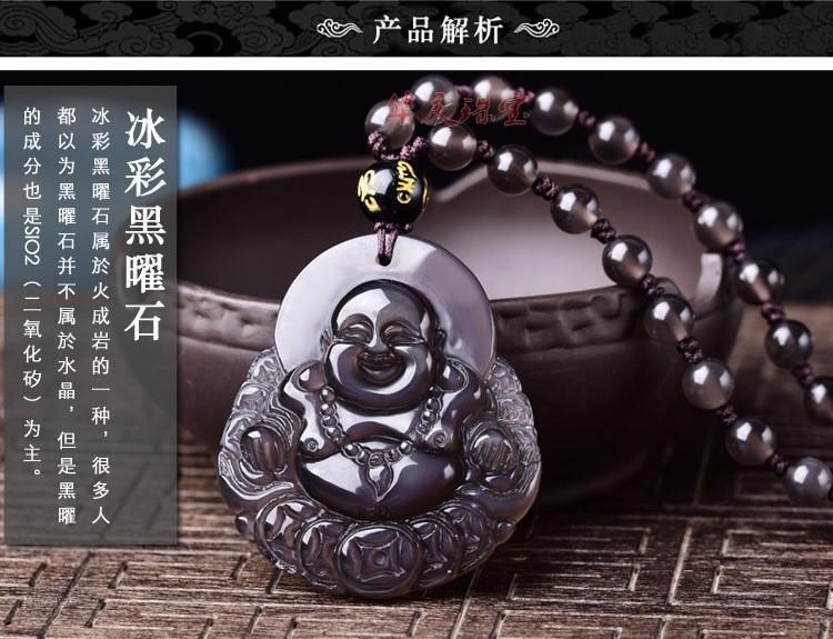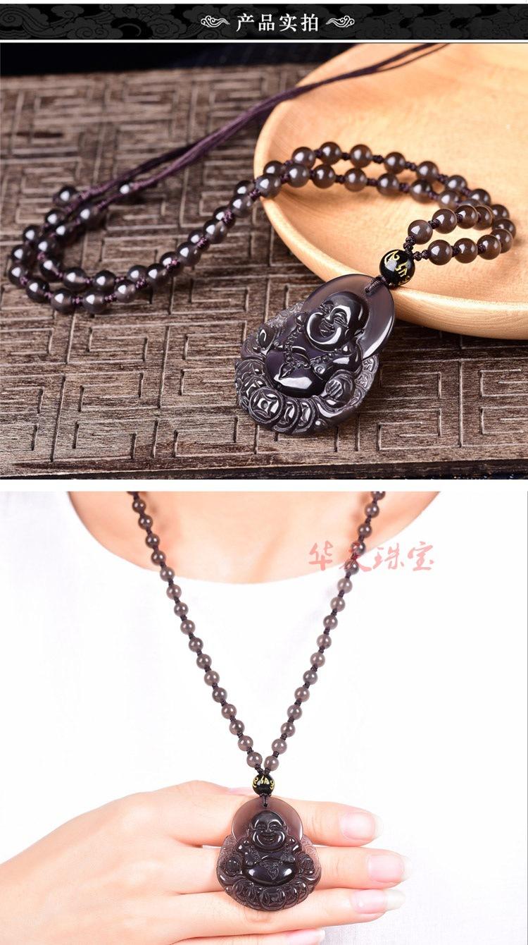 Colgante de obsidiana al por mayor para hombres y mujeres, collar Maitreya de obsidiana color hielo, joyería de cadena para suéter de primavera y otoño.