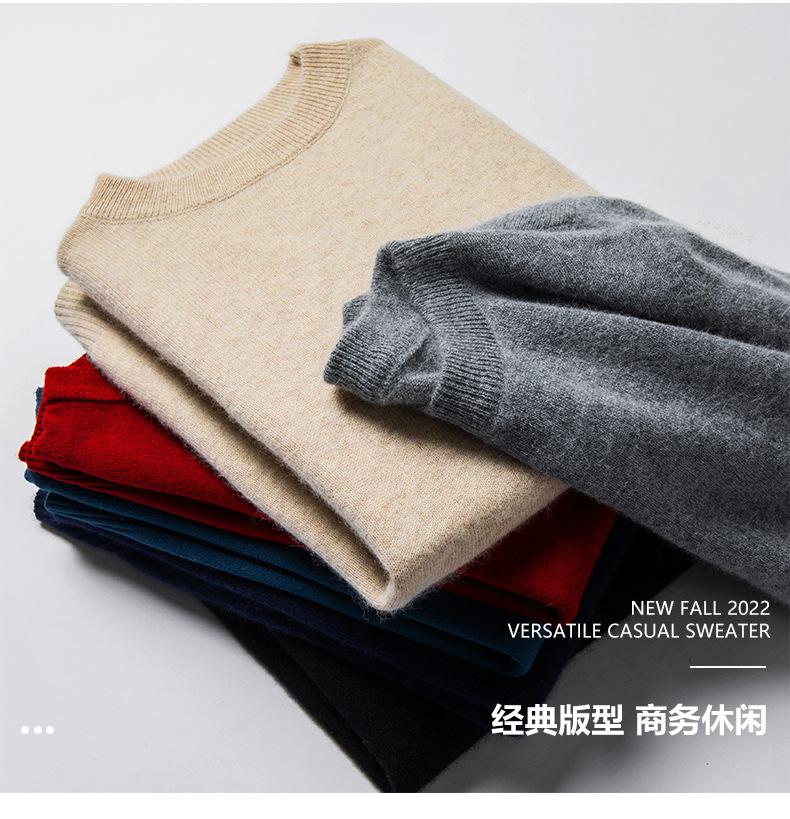 Suéter de cuello redondo para hombre, nuevo suéter informal de color sólido con base cálida interior, ropa para hombre, otoño e invierno