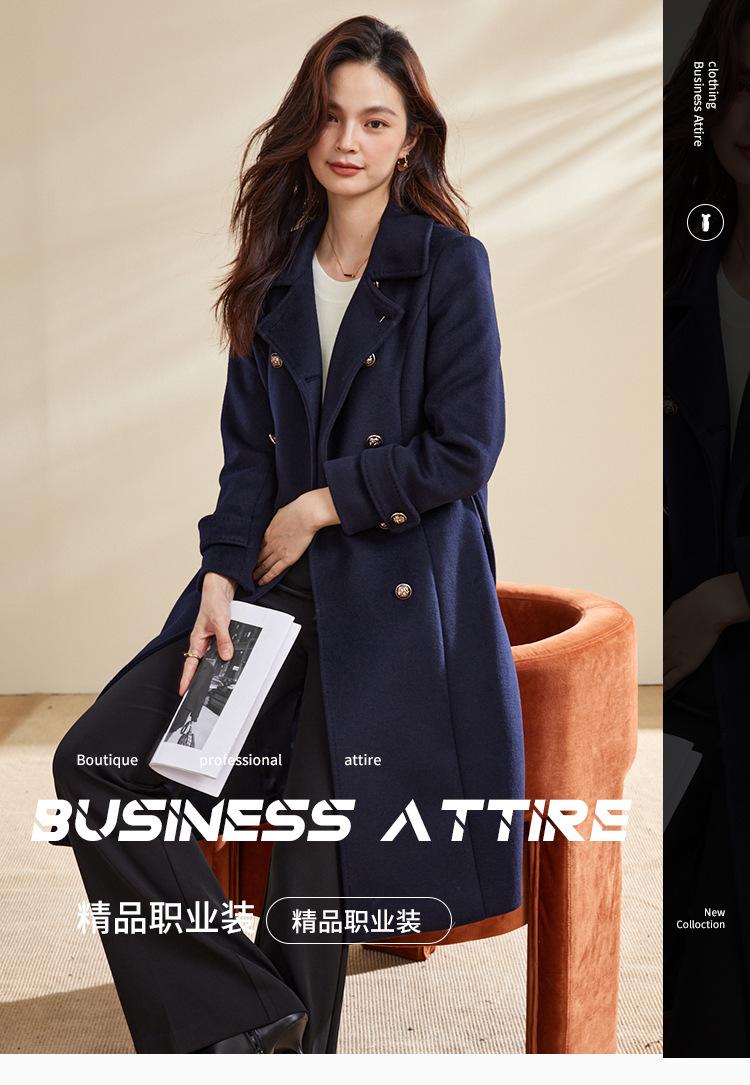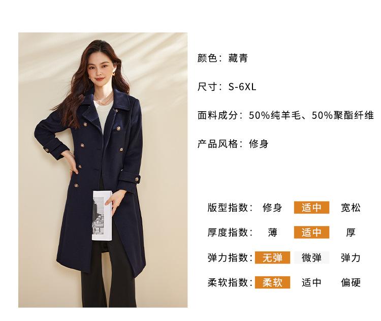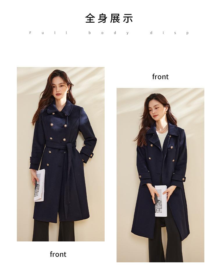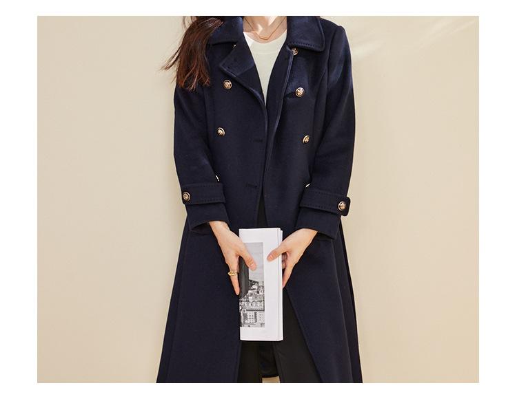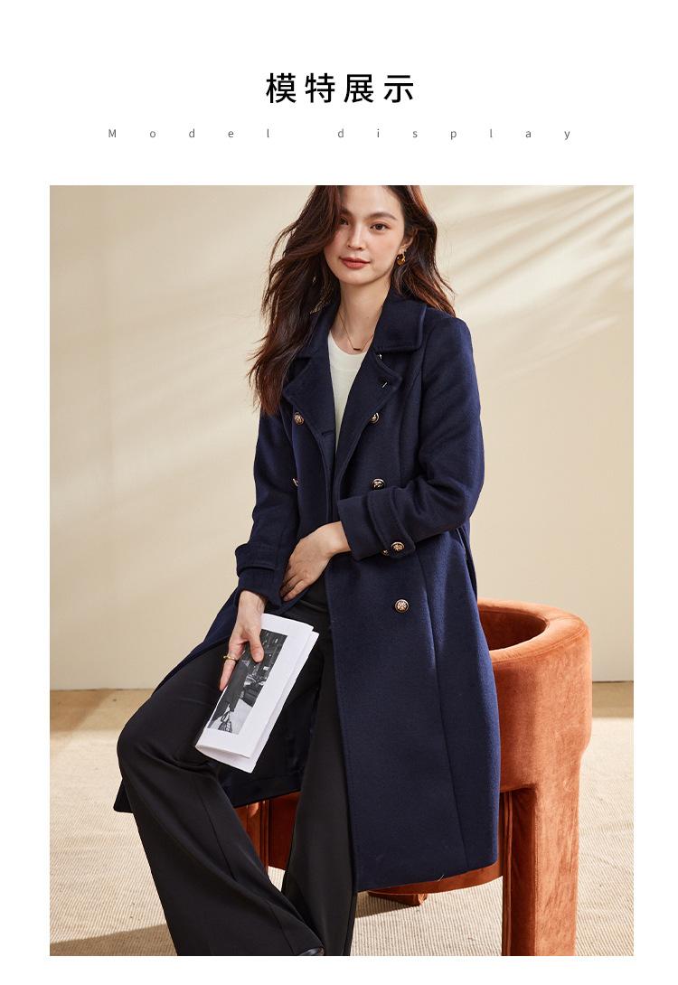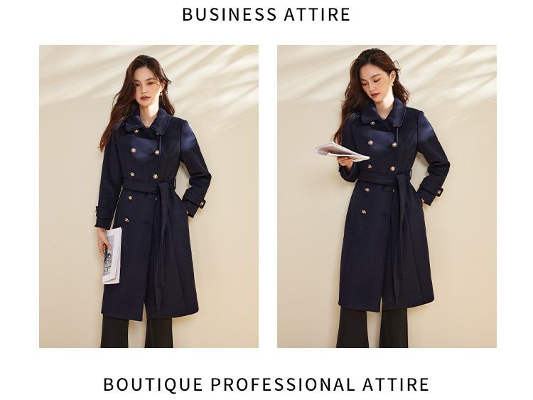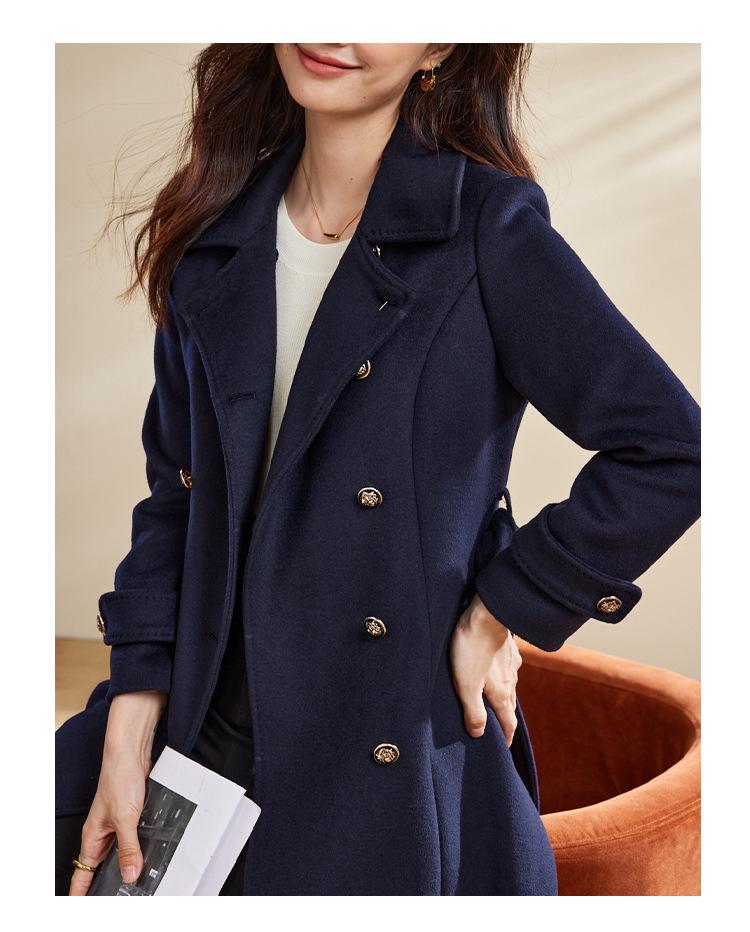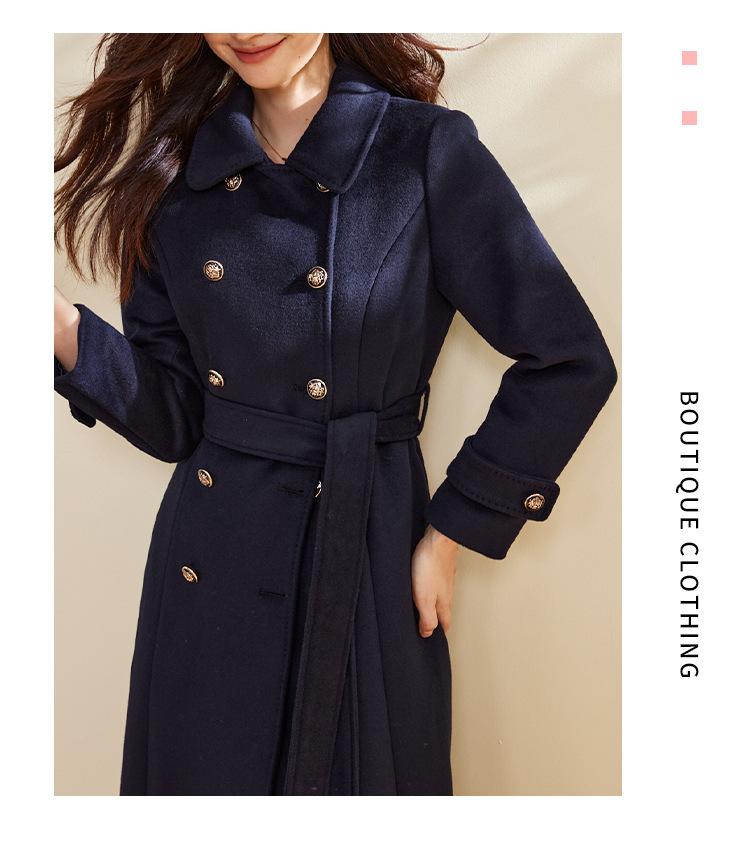Cinturón Otoño e Invierno Moda Nuevo Abrigo Largo de Lana para Viajeros Abrigo de Cachemira para Mujer Grueso de Doble Botonadura