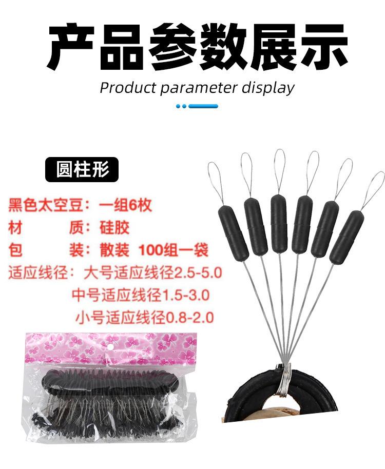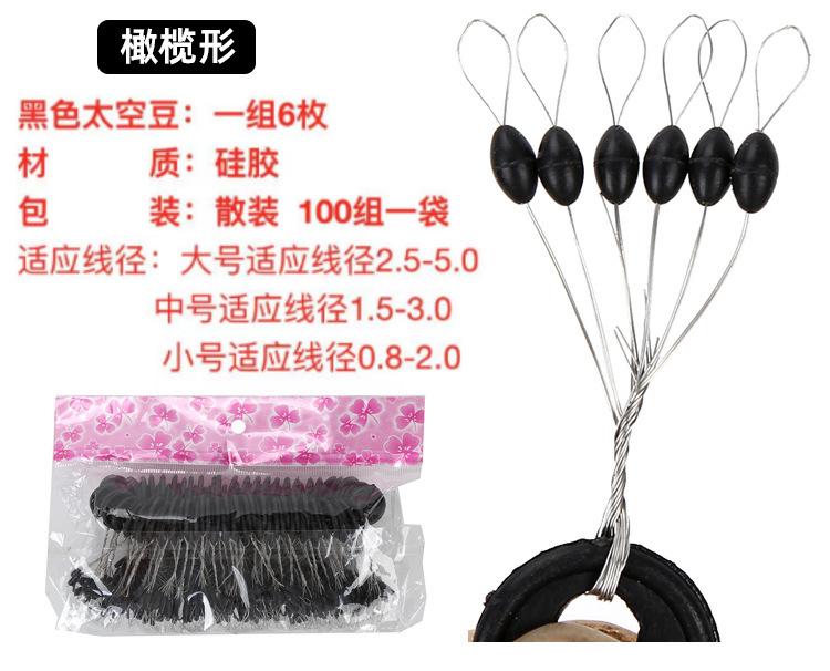 Frijol espacial oliva de goma negra a granel frijol espacial cilíndrico frijol espacial competitivo pesca 100/bolsa