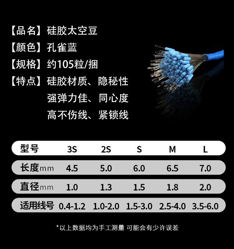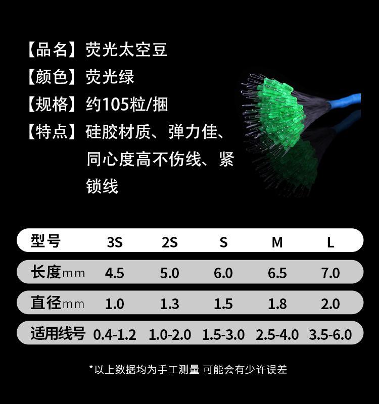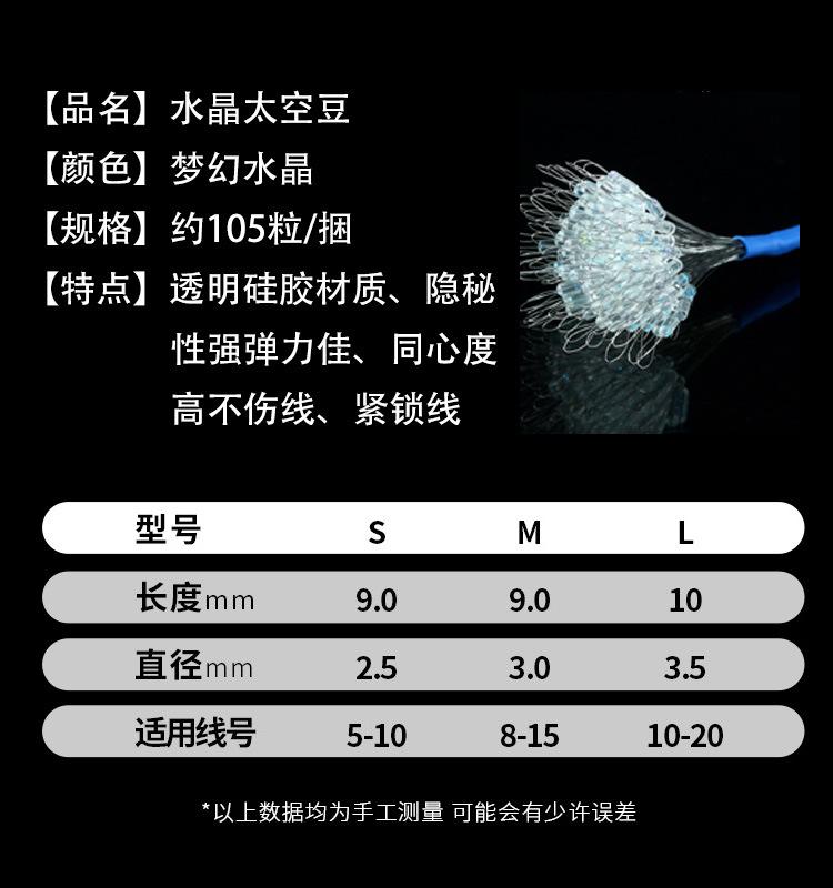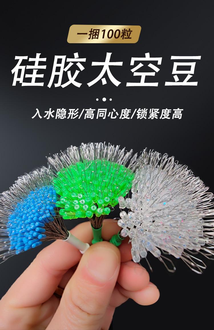 Super Ajustado Competitivo Silicona Alta Calidad Boutique Frijol Espacial 100 Granos a Granel Equipo de Pesca Línea Set Frijol Anti-enredos Pesca Pequeños Accesorios