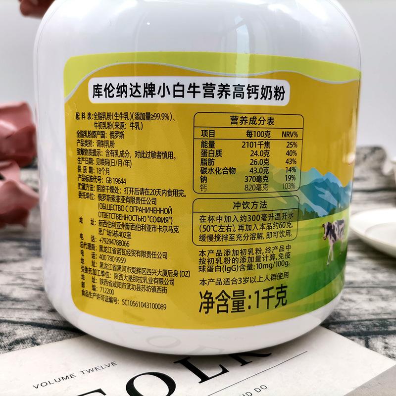 Kulunada xiaobai niu nutritional high calcium milk powder 1kg*1 barrel
