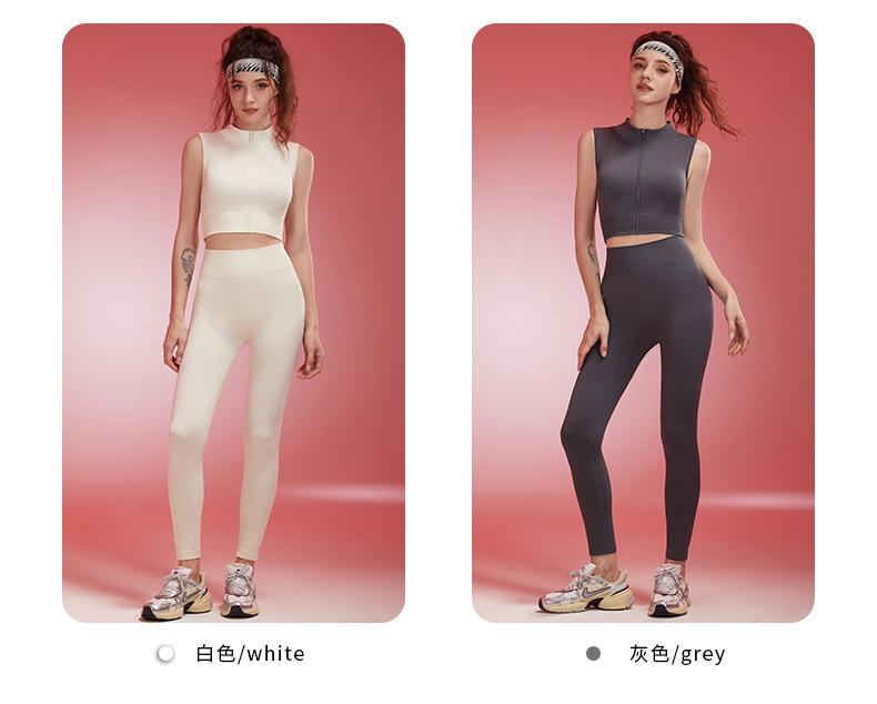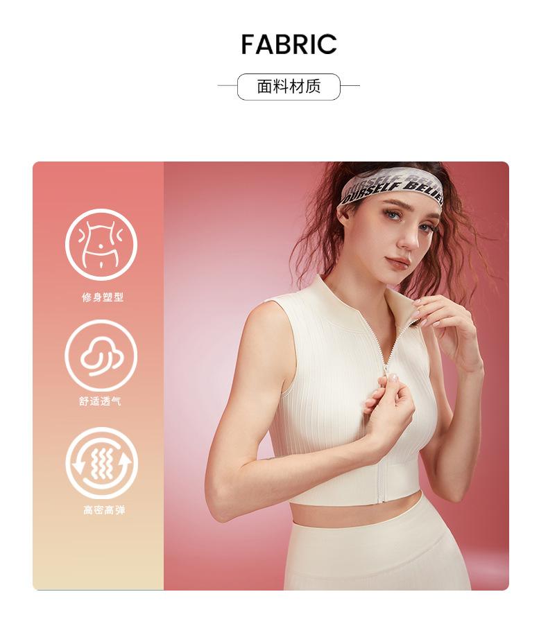 Ropa de yoga sin costuras, transpirable, de secado rápido, estilo europeo y americano, con cremallera, sujetador deportivo de yoga para mujer, corte ajustado y elástico alto