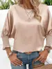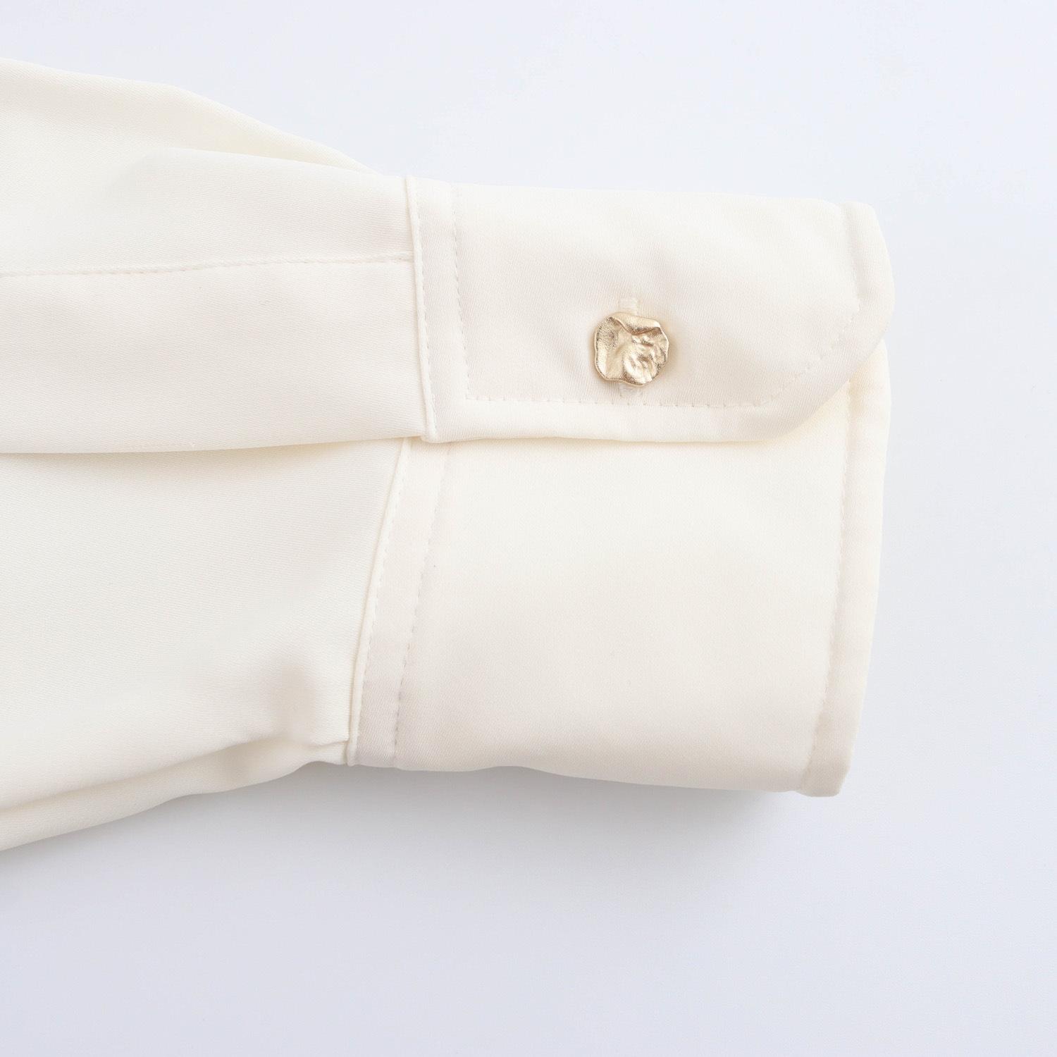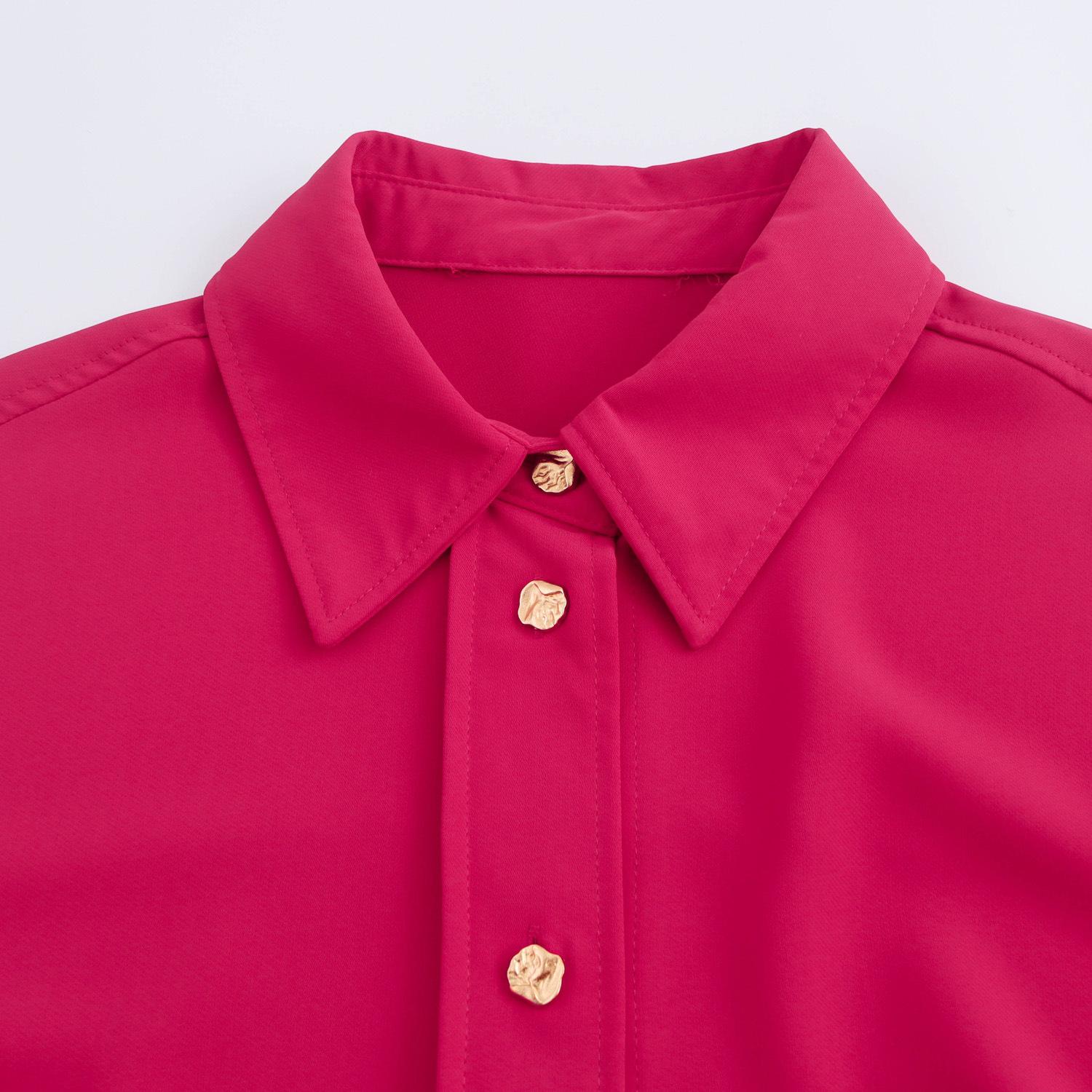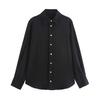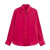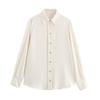 Camisa básica de satén de manga larga para mujer, color liso, estilo europeo y americano, con solapa y botones dorados, estilo informal y sencillo, 2024